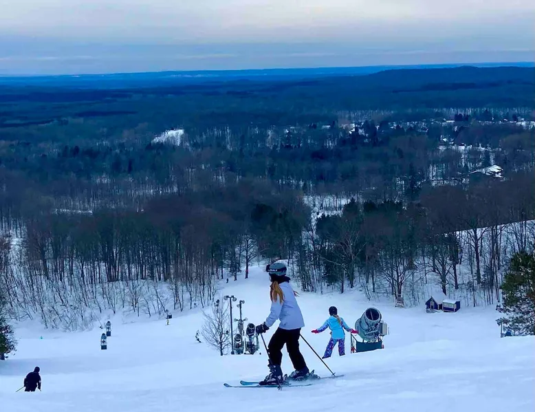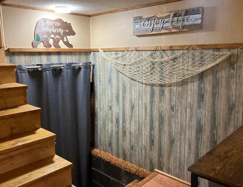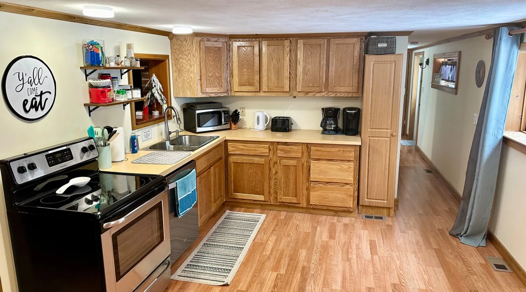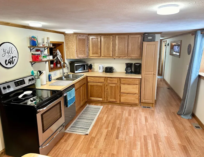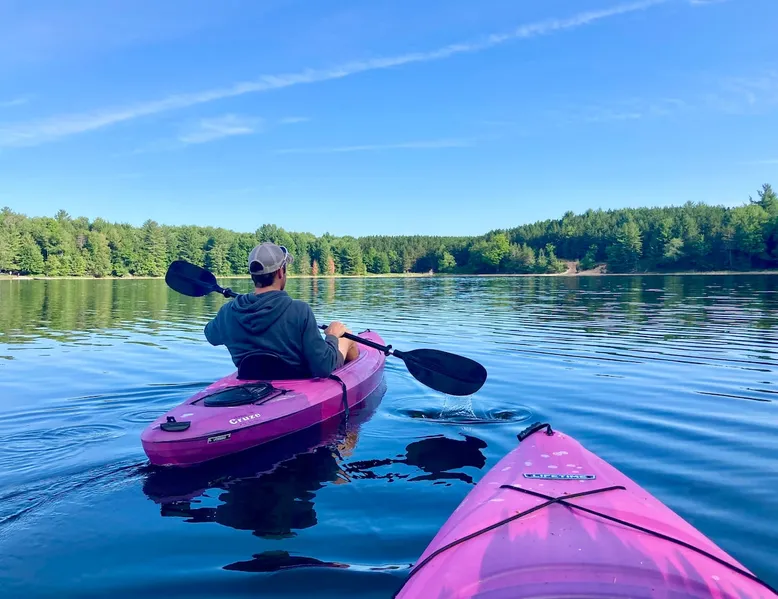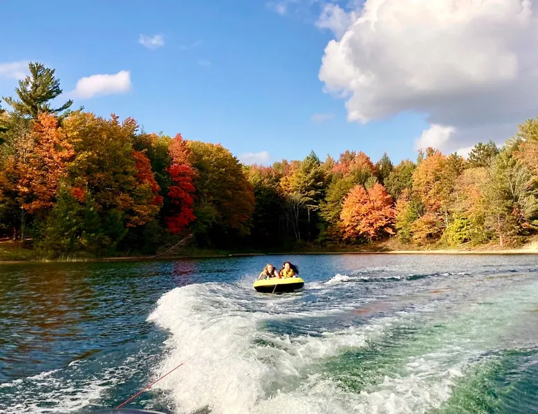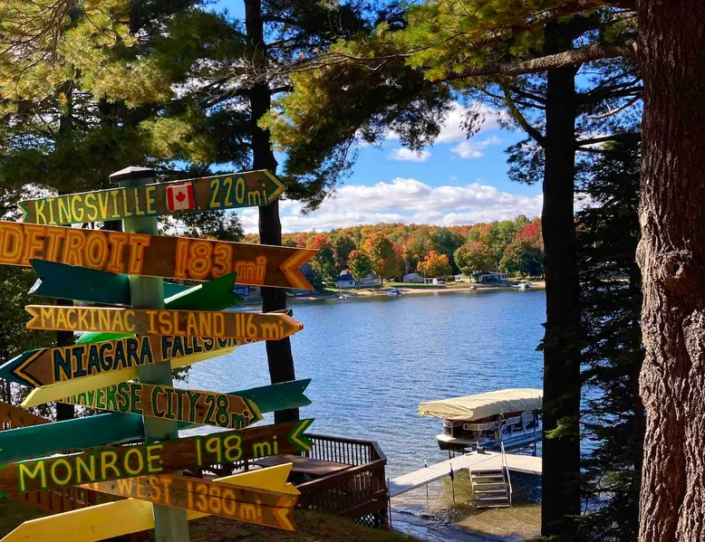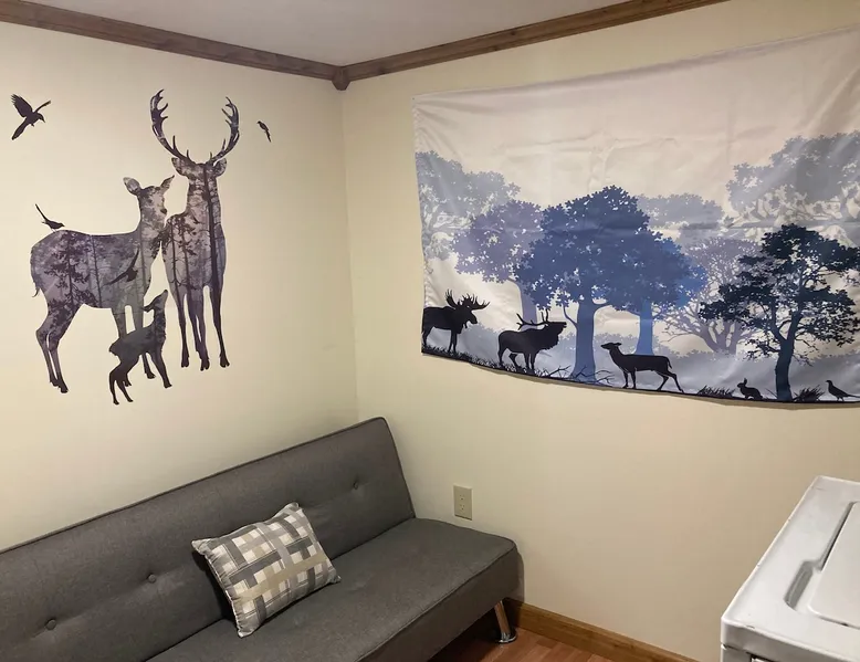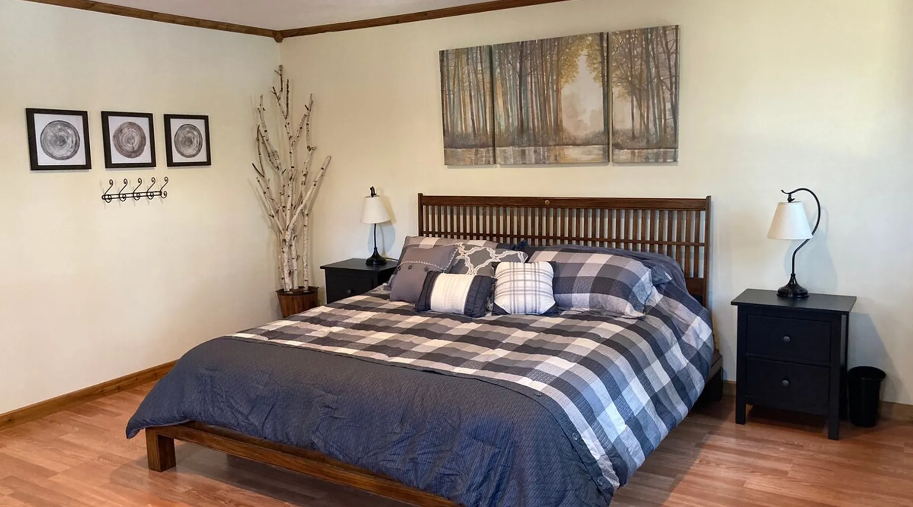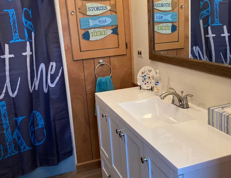 Calling all nature lovers! Experience the magic of all 4 seasons at this lakefront cabin situated on crystal clear "all-sports" Lake Meauwataka (10 mi N of Cadillac)! Open & spacious, this family friendly cabin is ideal for a multi-family get away. Unplug & relax amongst the majestic serene White Pines of the Manistee National Forest. An ALL SEASON destination for outdoor enthusiasts. Skiing, snowmobiling, snowshoeing, swimming, fishing, hunting, boating, scavenger hunts & more await! The space *25 Years old PREFERRED to book* *NOT A PARTY HOUSE* *NO PETS or PET REQUESTS* This countryside escape has a secluded and serene "Up North" feel, yet only a 10-15 min drive to shopping & restaurants in the City of Cadillac and only 1.5 miles away from the General Store which has almost everything you could need including delicious pizza, ice cream, alcohol & daily meal deals. Please Note: Our Cabin is located off a dirt road so if this doesn’t bother you keep reading….The property is surrounded by White Pines and perched upon 65 feet of lakefront sandy bottom access. Across the lake sits a township park, complete with a campground, hiking trails and sand dunes. There is also a 9-hole "volunteer-created" disc golf course. Location is well suited as a launch to many popular Michigan tourist destinations including Traverse City/Interlochen, Frankfort, Sleeping Bear Dunes National Lakeshore, Big Manistee River & the Ski/ Golf Resorts of Caberfae Peaks and Crystal Mountain. Hunters may inquire about local opportunities. This is a "Family-Friendly" Cabin. It is not high-end; however, it is lovingly cared for by the owners who use it often and take great pride in making it a fun and cozy place to make memories. It is 2000 square feet and features 2 FULL bathrooms. Sleeping: Sleeping Quarters include a Master Bedroom with gorgeous lakefront views (King & Single Bed Loft). The second bedroom (Queen) is tucked away and allows privacy and a bathroom nearby. The third bedroom (Bunkhouse) is the perfect spot to send the kids. Located on the lower level with it's own living area, this sleeping area features two sets of bunk beds (Full/Full & Twin/Twin). There are also sleeper sofas (great room/ lower living) twin futon in the laundry room, foldaway twin cot and pack & play. The open floor plan on the main level allows for lakefront views and interaction amongst guests in the kitchen, dining and great room areas. The great room features a wood burning stove, a large LED wall mounted Fire Feature & Smart TV. Wifi/TV: High speed internet for remote work. Smart TV with streaming options however you will need to use your own subscriptions for certain applications enabled through guest mode on the Roku TV. The TV also gets approximately 16 channels via antenna and there is a DVD player with many movie options to choose from. Many board games & crafty accessories are provided. Workspace: Desk with lake views in Master Bedroom. Kitchen: Our kitchen is fully equipped with all the appliances and tableware for your stay. There is a common pantry and spice basket. You are welcome to use any staples in the cabinets or condiments in the refrigerator if they are available, but we can't guarantee anything will be there for certain. It all depends on what people use and what people leave. Laundry Room: Washer/Dryer. Linens/Towels provided. Garage/Basement: Owner's private storage areas and not included in the rental. Shed: Open & available to use. Here you will find outdoor games, disc golf sets, campfire sticks, fishing poles etc.. Optional: Kids Clubhouse located above the garage. Inquire for Details. Heating/Cooling: The house has A/C in the master bedroom and Queen Bedroom. Tree cover, lake breezes and fans keep the rest of the house cool in the summer. The house has two furnaces, a wood burning stove and a propane stove. Backyard Amenities: Firepit, Dining Area, Pedal Boat, Kayak's (x3 Adult, x3 Youth), SUP's (x2), Tetherball, Corn Hole, fishing poles etc.. Seasonal Notes: The dock is removed Nov-April. Please inquire if booking during a transition period. Life Jackets Provided. Snow Removal: Removal service is triggered after an event causing more than 4 " accumulation since last removal. There will be occasions where there may be a few inches of snow on the driveway and walkway. A snow shovel and rock salt is provided. Please Note: There is an additional charge of $10 per night/Guest >6 guests to account for extra cleaning/laundry/septic charges. You will be communicating directly with the Property Owner and not a management company. Other things to note Pets are prohibited. Any evidence of pets will result in extra fees and potential rental termination. One exterior security camera monitors the front door.