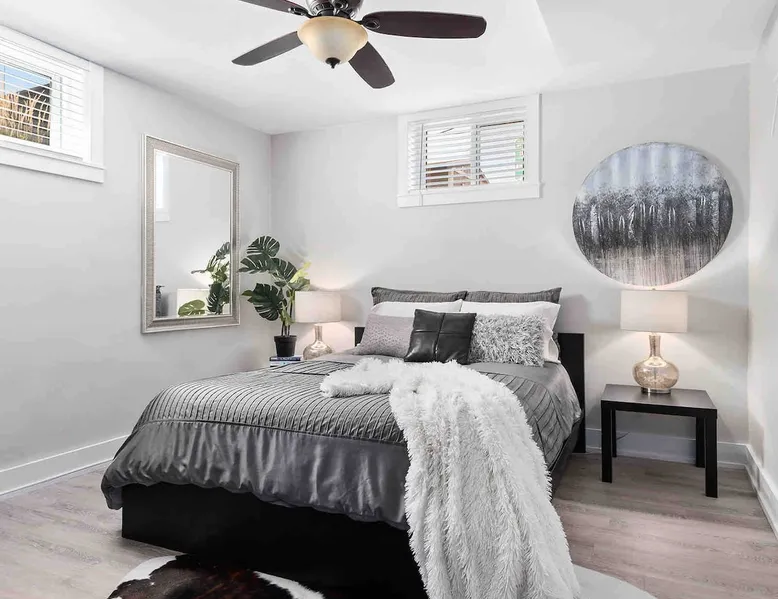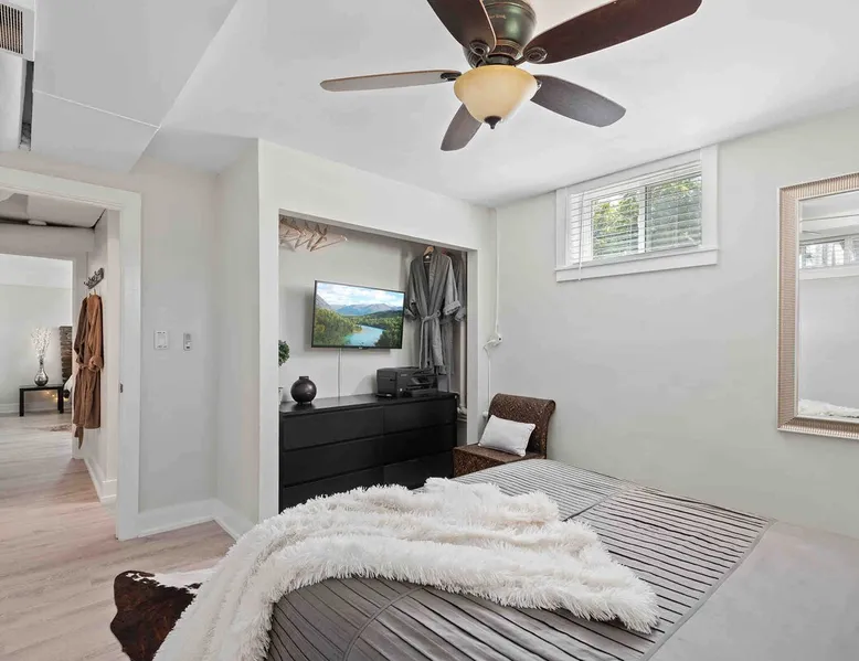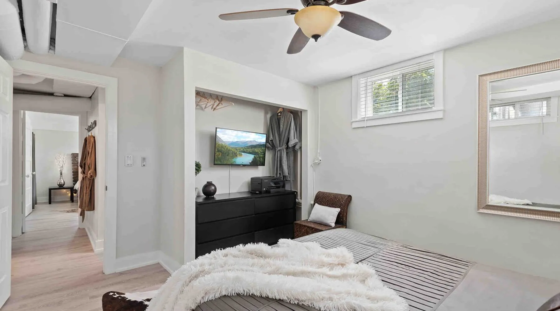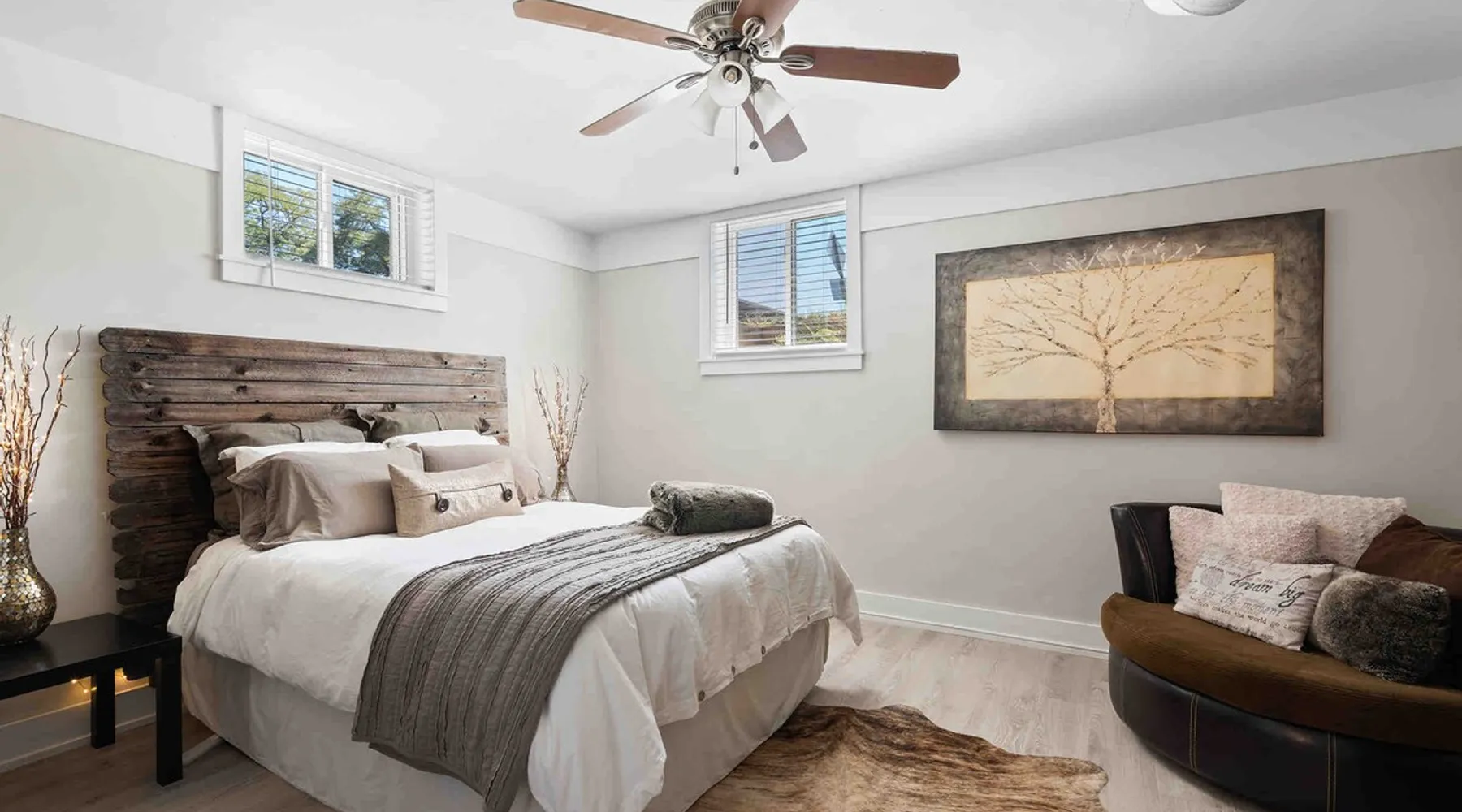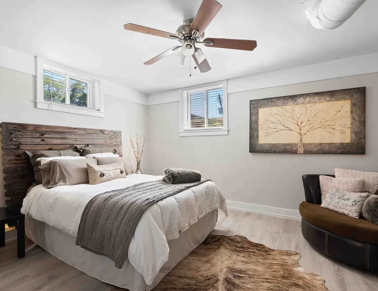 Experience the perfect blend of mountain charm and modern comfort in this beautifully renovated Denver suite. Located in a peaceful yet central neighborhood, it offers exceptional walkability—just steps from local shops, cafes, restaurants, and pubs. With no neighbors on three sides, enjoy rare privacy in the city. Unique design details, spacious indoor-outdoor areas, and a vibrant, walkable setting make this a true urban retreat. The space This cozy two-bedroom, one-bathroom abode comfortably accommodates six guests, making it a perfect retreat for couples, small families, or a group of friends to explore Downtown Denver and beyond. Whether you’re in town for a concert or event, visiting loved ones, or venturing into the breathtaking surrounding nature, you’ll love returning home to your cozy private residence at the end of each day. Guests enjoy a private, fully dedicated level of the home with their own locked-off space—separate from the host’s living area—to ensure comfort and privacy during your stay. LIVING SPACE Step into the family room and be instantly transported to a refined mountain lodge, where rustic charm meets modern comfort. Thoughtfully curated details—like the reclaimed cedar accent wall and bespoke lighting—create a warm, tranquil ambiance that invites you to unwind. Sink into the oversized sectional, cue up the 60" wall-mounted TV, and enjoy movie nights, game days, or streaming marathons by the glow of the cozy gas fireplace. Don’t forget the popcorn! KITCHEN & DINING The compact, well-equipped kitchenette has everything you need to fuel your Denver adventures. The full-size fridge gives you space to store your goodies, and cooking appliances ensure you’re able to prepare all your favorite meals. The darling coffee bar will put a bounce in your step each morning, and the unique restored laundry tub sink makes washing dishes feel like much less of a chore. Please note there is no oven. Feel like cooking outside? The Green Mountain Grill functions as a smoker, grill, and oven! You will love the convenient cooking and easy clean up so you can get on with your Colorado adventures. When it’s time to gather for a meal, you’ll find seating for four (with 2 additional chairs) around the stylish high-top table. BED & BATH Two tranquil, large sized bedrooms each have a plush queen-size bed where up to four adults can sleep soundly. Each room also benefits from central heat and A/C, as well as a ceiling fan to keep you comfortable in every season, you control the temperature. Other features include plenty of storage, and windows that let natural light pour in. Dual lamps are ideal for bedtime reading, and the wall-mounted TVs in each bedroom are ready for movie marathons and streaming sessions. Guests have one modern, full bathroom with a bathtub and shower. The bathroom is fully equipped with shampoo, soap, and towels, plus a couple of cozy robes to help you feel right at home. An additional queen-size air mattress can be set up perfectly within the U shape of the sectional couch to accommodate two more guests, so nobody has to miss out on the fun. The washer and dryer are handy for guests who prefer to pack super light or for cleaning up after a day spent out in nature. Laundry detergent and dryer sheets are all provided. OUTDOOR SPACE The large, private fenced-in backyard is ideal for entertaining or simply for enjoying a morning coffee or afternoon beer in peace. You’ll find plenty of yard games to keep kids (and kids at heart) entertained. The covered patio is a snug place to spend evenings with loved ones reflecting on another magical day in Denver, and there’s also a smoker and grill set up and ready for the cooks in your group to create al fresco feasts. Private parking is available for guests on the back driveway and there is also plenty of free street parking for additional vehicles. STR #: 2021-BFN-0005585 Guest access The private entrance is accessed via a secure keyless entry system, so you never have to worry about misplacing your keys. Easy and seamless check-in process! When you are a guest in my home, you park in my driveway, no need to worry about finding street parking or getting parking tickets...you're steps away from your door! Other things to note •For safety and security, the property is equipped with a Blink doorbell, smoke and carbon monoxide detectors, and a fire extinguisher. •Please note this is a lower level guest suite- the host lives on the main floor and is available if there is anything you need during your stay! •There is a staircase down into the apartment so unfortunately, this property is not suitable for wheelchairs. Traffic from I-25 can be heard outside but this brick house inside is very quiet and cozy. •We will send you a link to your electronic guidebook upon booking where you will find all necessary and relevant information relating to your stay. We also include our suggestions for the best things to do in town, our favorite restaurants, activities, hikes, nightlife, and much more. •Please note that smoking of any kind is forbidden inside and will result in a minimum fine of $250 to cover the cost of mitigation. •Reservations may be subject to extra guest fees. •Early check ins may be requested the day of check in through your electronic guidebook. We do our best to accommodate these requests, however it depends on our calendar and the cleaners schedule. If approved, there is a $50 charge for early check in. •We do not allow late checkouts under any circumstances. The cleaners are very busy and plan their days ahead of time, we expect guests to be checked out by the designated time or a $125 charge will be incurred. •To make your stay more comfortable, we provide a complimentary starter supply of essentials, including toilet paper, paper towels, shampoo, conditioner, and body wash. For extended stays, we kindly ask that guests replenish any additional items they may need throughout their
