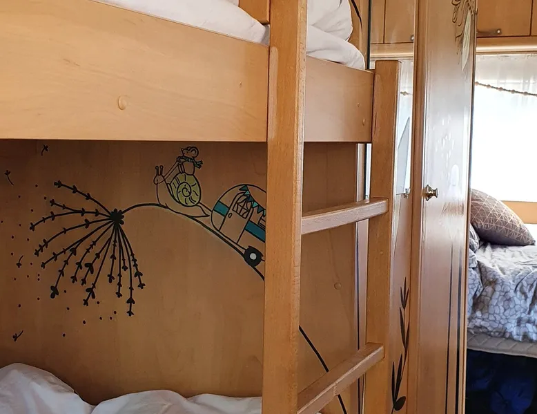 The caravan is located in our garden in the center of the pretty picturesque village of Sart Lez Spa, In the center of Sart, you can enjoy: Brasserie, pizzeria, fries, bakeries, glacier, supermarket, hairdresser, butcher, tourist office, communal playground and of course many walks in the middle of nature. Sart Lez Spa is 5 km from Spa, 10 km from Francorchamps circuit, 3 km from spa thermal baths The space The caravan has a double bed and a bunk bed for two children. The caravan is equipped with a toilet, a fridge, a dolce gusto and a microwave. The accommodation does not have a shower, but it is possible to arrange so that you can enjoy the bathroom of the house according to our availability. You can of course enjoy the south-facing garden. Guest access We of course share access to the garden with you. Your children can enjoy the different games (swing, trampoline, sandpit, slide) with us. When we're at home, our bitch, Gina, a lovely, very sweet and sociable Labrador will continue to frequent the garden during your stay. Other things to note The village of Sart-lez-spa is very quiet. We want to ensure that calm is respected. We do not allow noisy parties, music, or guests. Thank you. your children have access to the garden games under your supervision and responsibility.