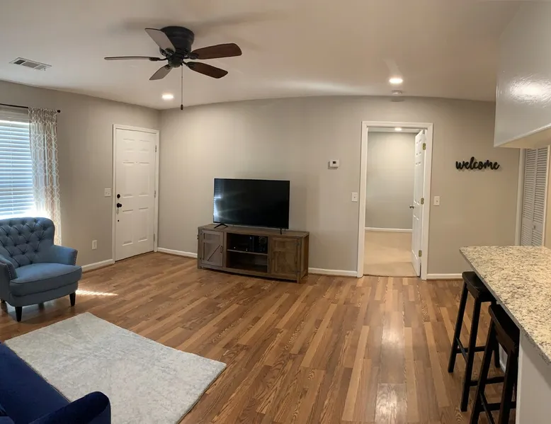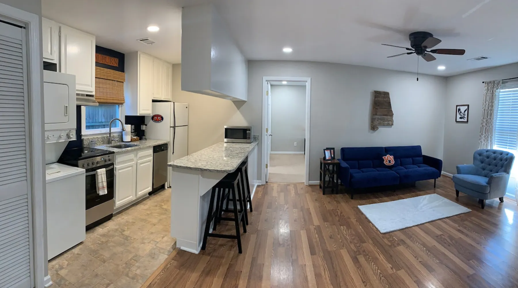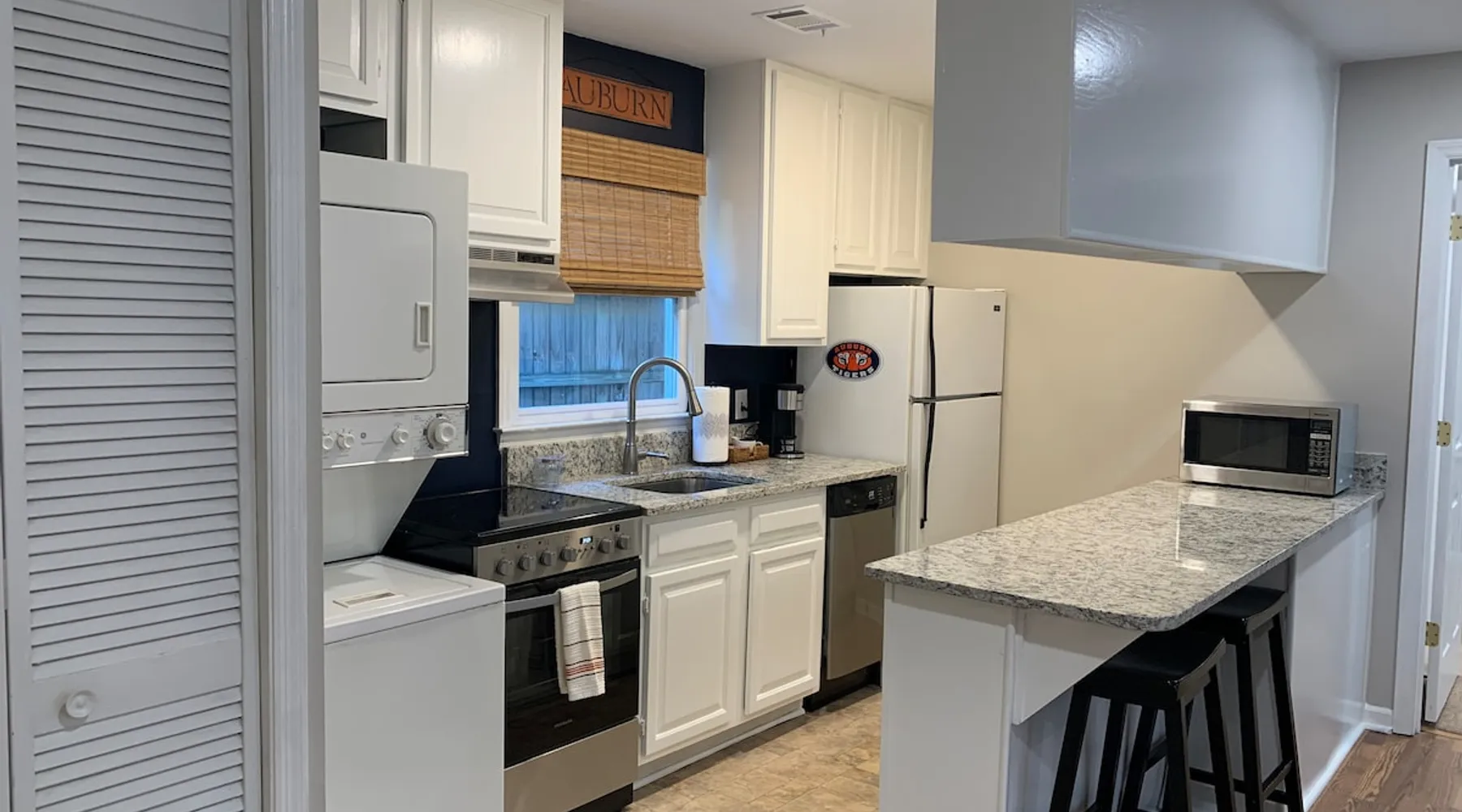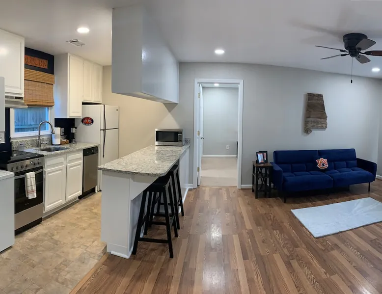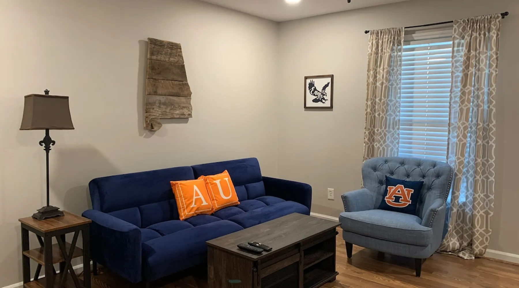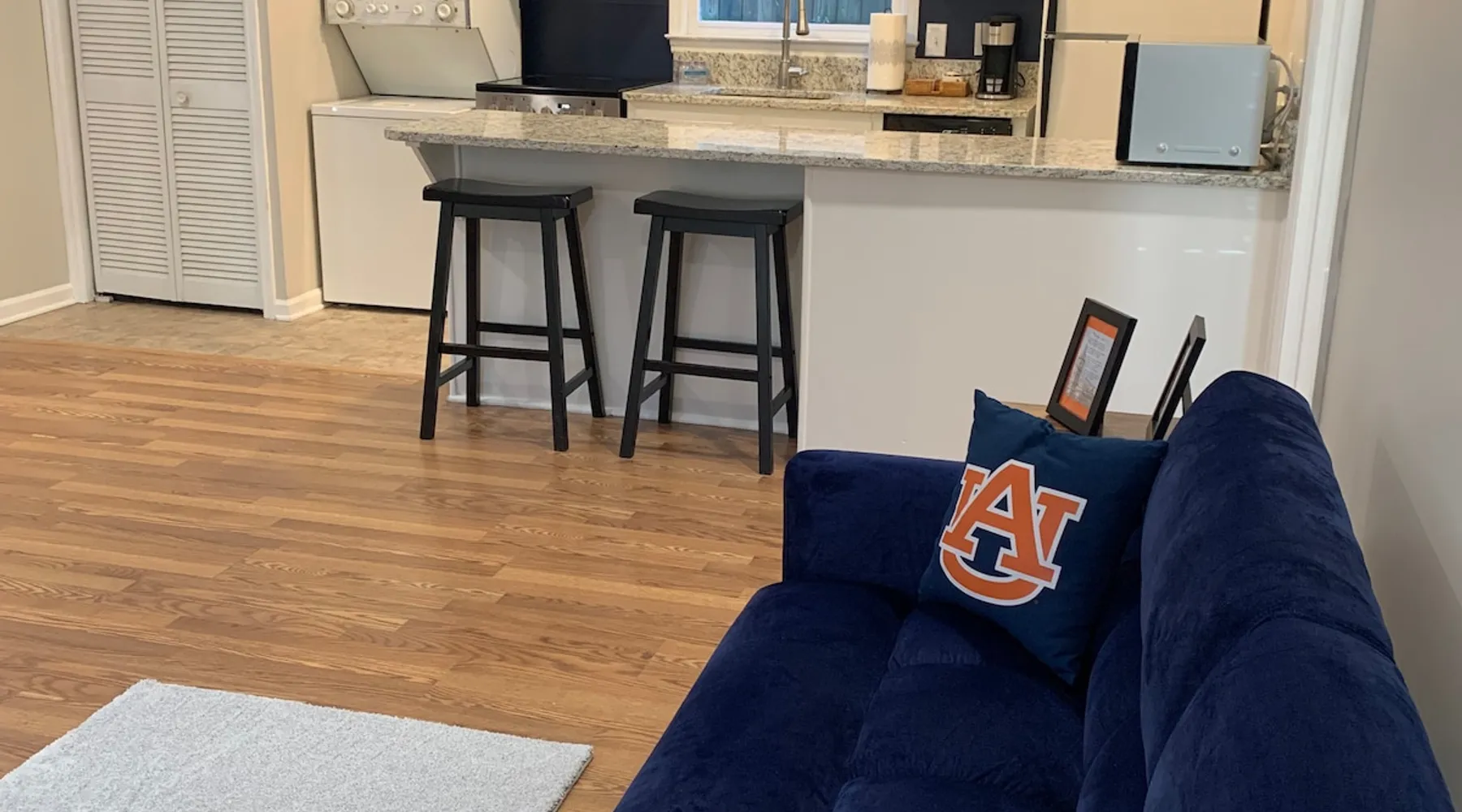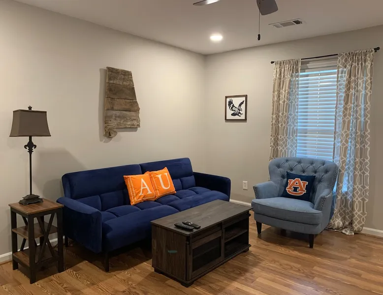 Enjoy your stay in Auburn at our fully updated condo just steps away from Jordan Hare and Neville Arena! Located right across the street from campus, you can’t get any closer! You can see the stadium as you exit the condo and Downtown Auburn, Toomer’s Corner & the entertainment district are only a short walk. Prime location for all sports fans, graduation guests, students, professors or visitors just looking to enjoy Auburn! We hope that you have a wonderful Auburn Experience & War Eagle! The space You will love this 2 BR / 2 BA condo located within walking distance from campus and downtown Auburn. The space can sleep 6 guests-- two in bedroom 1, two in bed 2 and two on the queen-sized pullout sofa bed. Conveniently located on the first floor, the living room opens to the kitchen and allows everyone to hang out while preparing meals. Bedrooms are on opposite sides of the unit divided by private bathrooms. *2 Free Parking Passes* 2 Queen Beds, New Queen Sofa Bed, each bedroom has a private bathroom. New paint, flooring, all new bedding to include mattress covers, towels, bathroom accessories, dishes & television. Full kitchen set up, washer & dryer. Kitchen is fully equipped with all the basic amenities plus a toaster, baking sheet, blender & coffee maker for cozy coffee mornings. Guest access Guests will have exclusive access to the entire condo for the duration of their stay. This means you'll have full privacy and freedom to make yourself at home during your time in Auburn. Enjoy the convenience and comfort of having your own space, complete with all the amenities you need for a memorable stay. Whether you're lounging in the living room, cooking in the kitchen, or relaxing on the balcony, the entire condo is yours to enjoy. We want you to feel right at home from the moment you arrive until the time you depart. If you have any questions or need assistance during your stay, we're just a AIRBNB message away. Your comfort and satisfaction are our top priorities, and we're here to ensure you have an amazing experience in Auburn. Other things to note Please be advised that our condo is situated within a condominium complex where some students also reside. While this adds to the vibrant atmosphere of the community, we kindly ask our guests to be respectful of their neighbors and observe quiet hours and any other community guidelines during their stay. We strive to provide a comfortable and enjoyable experience for all our guests, and we appreciate your cooperation in maintaining a peaceful environment within the condominium. If you have any questions or concerns during your stay, please don't hesitate to reach out to us. We want your time in Auburn to be memorable for all the right reasons, and we're committed to ensuring that your stay in our condo is pleasant and hassle-free. Thank you for your understanding and cooperation.