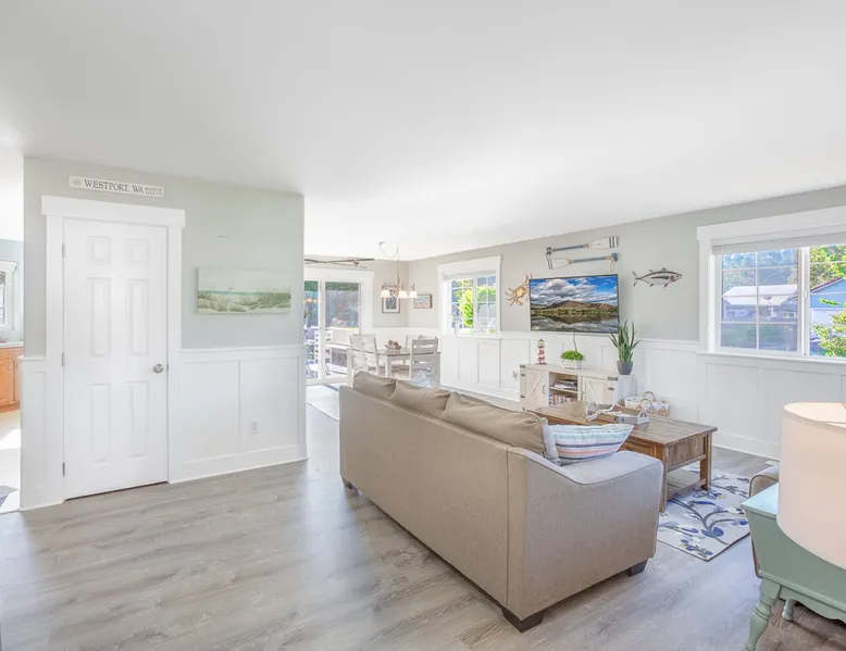 Just south of the Westport Lighthouse and a few minutes drive away from the marina waterfront and downtown Westport, this home is your perfect Washington Coast get-away! ABOUT FISH ON! WESTPORT BEACH HOUSE Comfort is the keyword at this inviting home. It’s just the place to rest after a day of charter fishing, clamming, or beach combing. And it's Grand Central Station for watching beach combers and tourists trekking to the waves. Two bedrooms and two baths make this the perfect single level home for small families or groups of friends visiting the beautiful Pacific Coast of Washington State. Each bedroom features a queen-sized bed and in the living room, a sleeper sofa provides additional sleeping space for two. Two bathrooms ensure your group will never be inconvenienced, and we provide clean towels for your stay The bunkhouse off of the main house is also available for guests' use, and offers two twin beds, as well as a TV, couch, microwave and fridge all its own. Give the kids a taste of independence (or moms and dads a break) while you stay, or bring along a couple extra friends without feeling cramped. Team up with your family on a home cooked meal in the spacious and well appointed kitchen (or get some take out from any of the great restaurants in Westport) and enjoy your evenings on the comfortable couches the house has, or out back around the seasonally available firepit while the dogs enjoy the huge yard. If you're lucky, you may even get to see one of the beautiful sunsets the Washington Coast is famed for. MORE ABOUT FISH ON! WESTPORT BEACH HOUSE Bring your boat, as there's room on the property to park a large boat. For clam diggers and fishing enthusiasts, the owner has provided clam guns, nets and a convenient clam/fish cleaning station for preparing your catch. In good weather, end your day on the home’s rear deck. A great place to swap stories about the one that got away or just catch up with your friends. Even better, the beach is just a short walk away! Beach combing is great year round, but you might want to consider the off season for a chance for some storm watching. FishOn is a dog-friendly property, but they must be leashed when outside as the yard is not fenced. Two dogs are welcome with our standard, per dog, per night fee. ABOUT WESTPORT Staying with us in one of our Westport units? Well, you're in luck because we have the ins and outs of everything adventurous to do here in Westport. Visit some of the state parks or the Grays Harbor Lighthouse, where the tours offer scenic views of the water. Westport is world-famous for fishing. Check with boat captains for unsurpassed seasonal dates. In Westport, the warm weather brings many fishing options such as charters and tours. Go on a boat tour to see the water and beaches surrounding the area. Enjoy surfing or kiting at any of the beaches. Wetsuits and boards can be rented at the Surf Shop. During the colder months, you'll find museums and restaurants that stay open year-round for you to enjoy. Explore the antique shops and boutiques that have trinkets and souvenirs for your keepsakes. THE BEACHY DAY PROMISE Beachy Day is the only full-stack vacation rental management company in the area. We vow to make booking with us simple and exciting. We know that booking a rental property home for your vacation can be unfamiliar territory for some, while others know their way around it. Because we know this, we ensure that each of our properties is up to high-quality standards. We do our absolute best to provide support to our guests when booking. We are available to assist you every day of the year if you have any questions or concerns before, during or after your visit to our home. We have onsite property management available 24/7 for anything concerning that may arise. MANAGED: This well managed property needs good behavior and adherence to instructions, rules, terms, conditions, and requires online registration and electronic signature before final booking, or you may cancel before proceeding at that time. Phones open 7am to 9pm everyday. For security, there may be outwardly facing security cameras, capable of constant recording but may not be activated depending on security company.