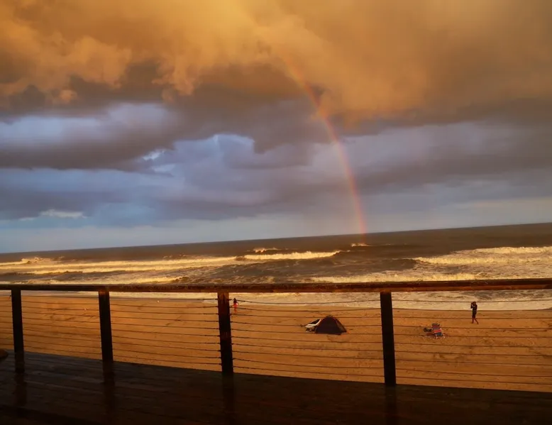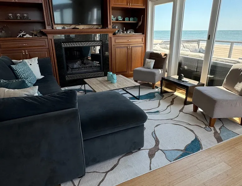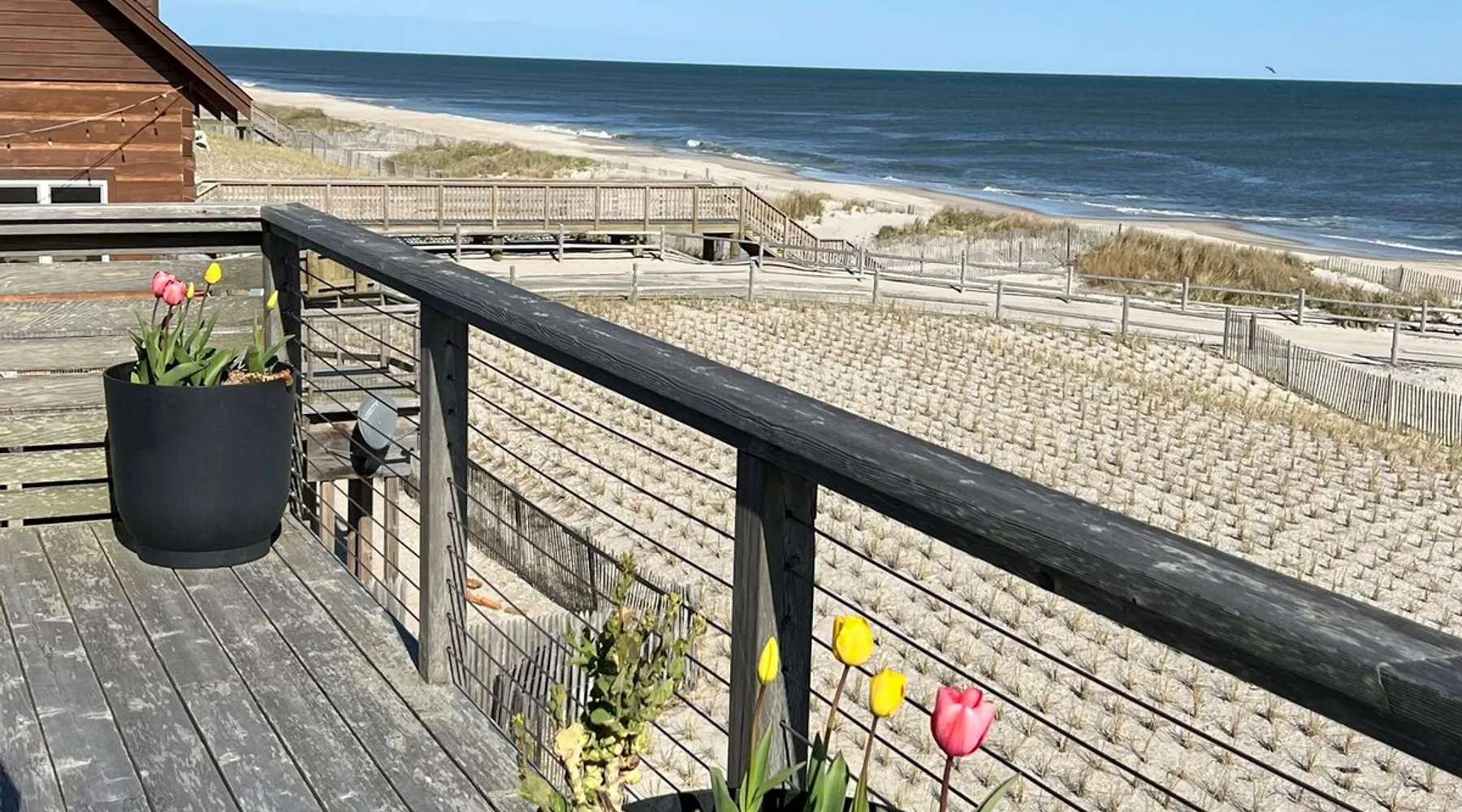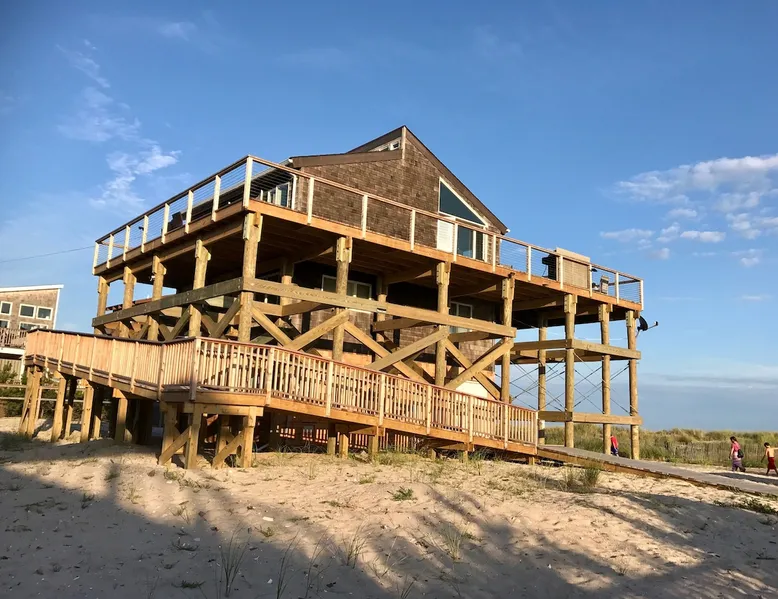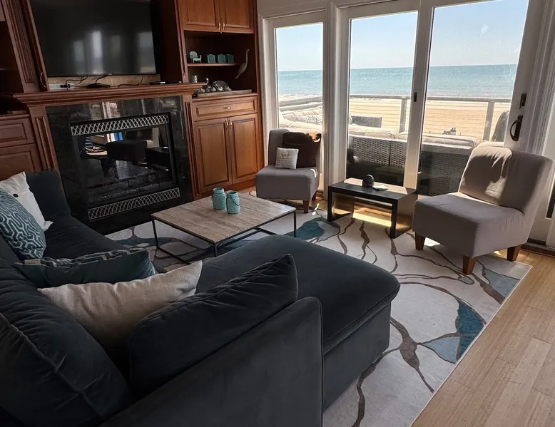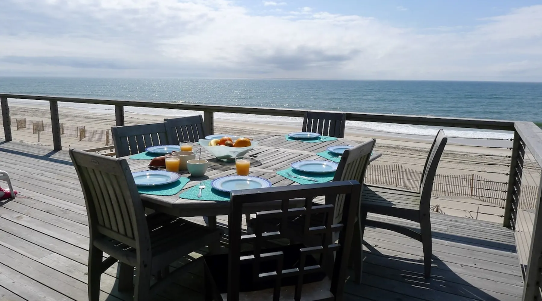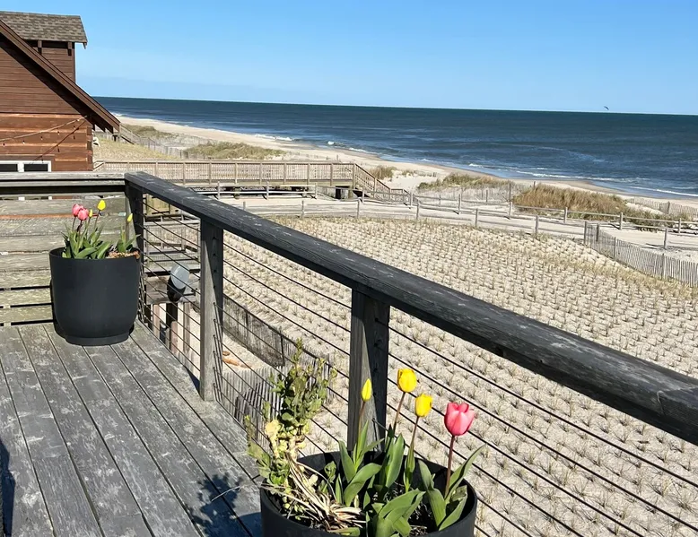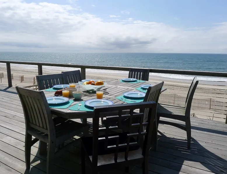 Oceanfront! Enjoy your coffee with the sunrise and your wine with the sunset overlooking the waves from our large wraparound deck. Comfy couches, teak table and chairs and deck umbrella. Clean well maintained home with space for friends and family. You’ll love my place because of the views, outdoor space, light, and the sound of the waves from every room. Great for families, friends, and good times! Memory Foam mattress pads and very comfortable beds! New Dishwasher - quiet! The space Amazing Fire Island Oceanfront Location can be yours! Enjoy frozen margaritas on the large deck of your own private modern retreat watching the waves roll in. View the ocean through walls of glass at this contemporary 5 bedroom 2.5 bath house with central a/c Best deck on the beach in Ocean Bay Park! Listen to the surf from your bed! 2 full modern bathrooms plus outdoor shower! large Smart TV, wireless internet, built in surround sound, built in deck speakers! Open living room/kitchen layout with 2 sets of sliding glass doors to large deck overlooking the ocean. Views views views! Everything you need for a perfect vacation including a BBQ, teak outdoor table, 2 outdoor sofa sets, beach chairs, toys, bikes, wagon, umbrella, kitchenware, linens and towels. House is recently renovated and meticulously maintained, including kitchen with granite countertops, bamboo floors and central air. Clean clean clean! Outdoor shower is a fire island necessity so you can listen to the waves while you shower. Fire Island has no cars in the summer, so the kids can walk and bike safely. You can watch them play on the beach from your cozy couch on the deck! There are plenty of bikes at the house and a wagon is left at the ferry dock for your convenience. Market/liquor store and several restaurants are a five minute walk from the house as well. Steps from the ferry. Nearby tennis, restaurants, shops. We also provide movies and games for your enjoyment! Guest access Entire Home Other things to note 5.5% Hotel Tax added to rent Please note guests will be required to sign a lease once property is booked .