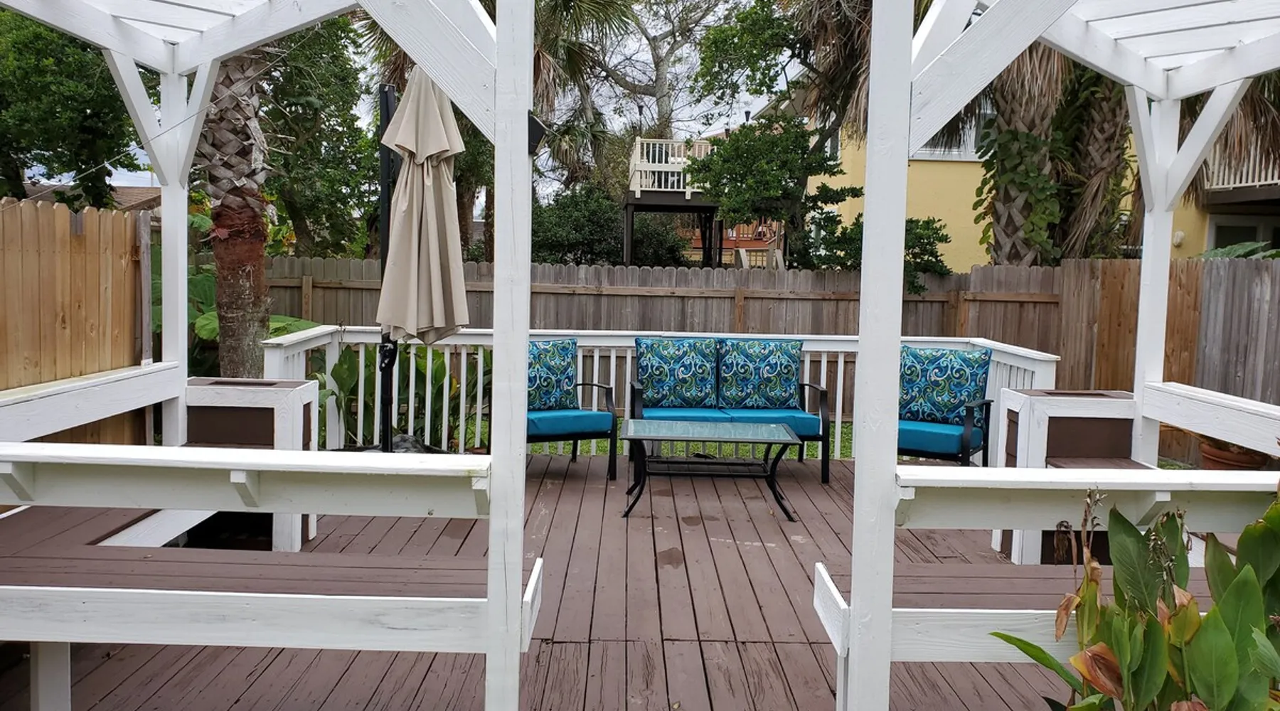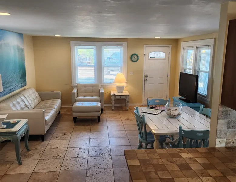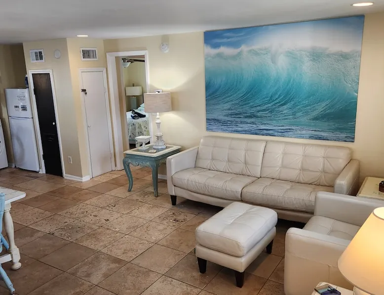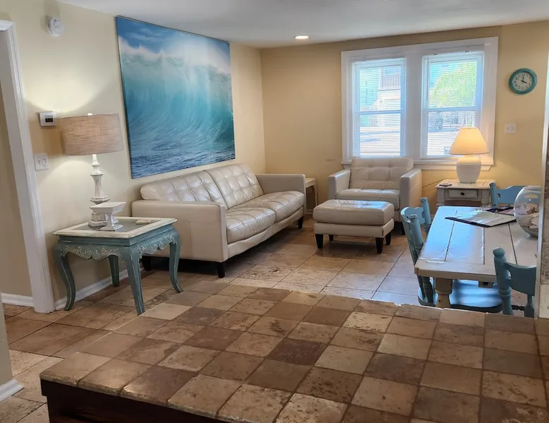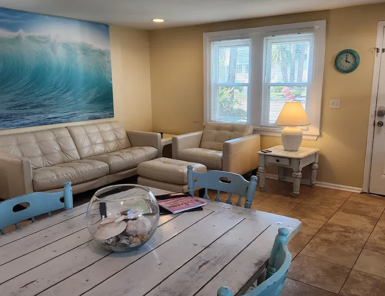 Welcome to Pablo Beach Vacation Rentals! The space Welcome to Pablo Beach Vacation Rentals! This unit is a beautifully renovated beach condo 1 1/2 blocks from the ocean. Completely updated and finished out with our shabby chic beach style. Travertine floors throughout. Updated kitchen with all the amenities. Private yard. Free Parking. Great restaurants, coffee shop (local Breezy and also Starbucks), surf shops within walking distance. All other shopping very close! 2 full bedrooms with queen size beds. Pets welcome. Guest access You'll have access to the entire apartment and private yard during your stay. Entry to the condo is via keypad with a secure, unique code.