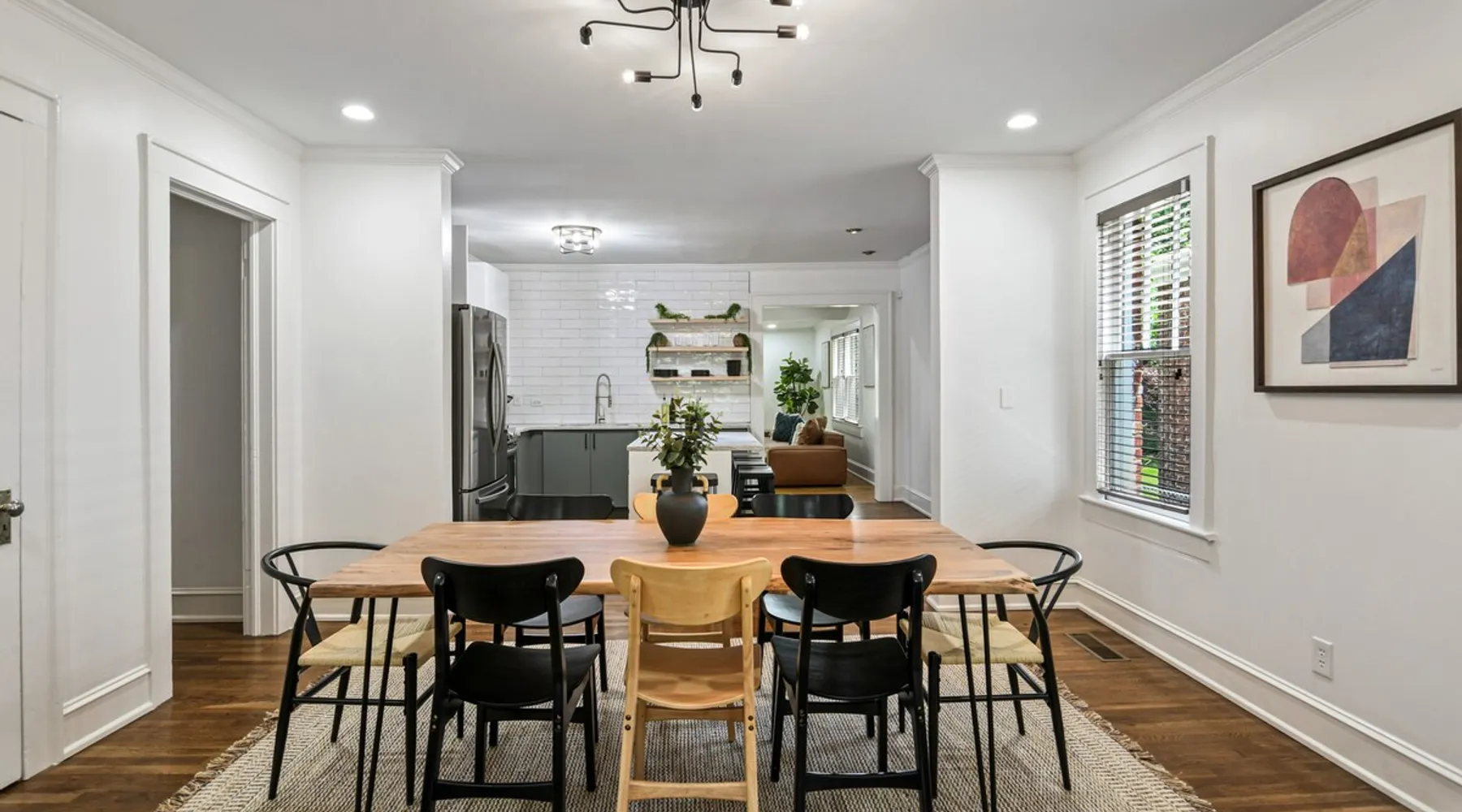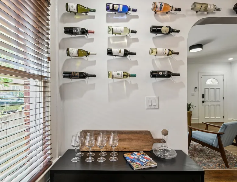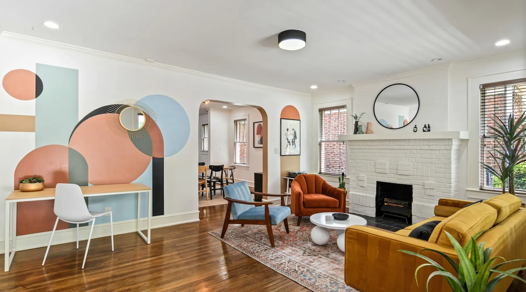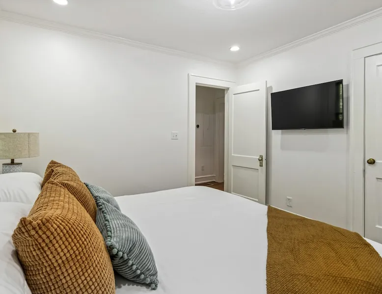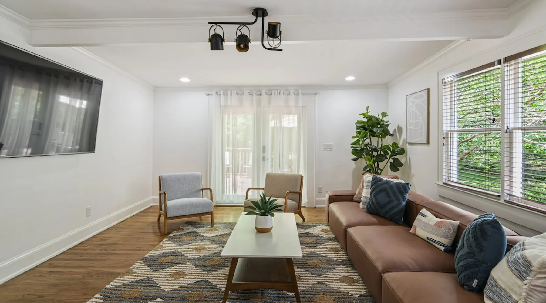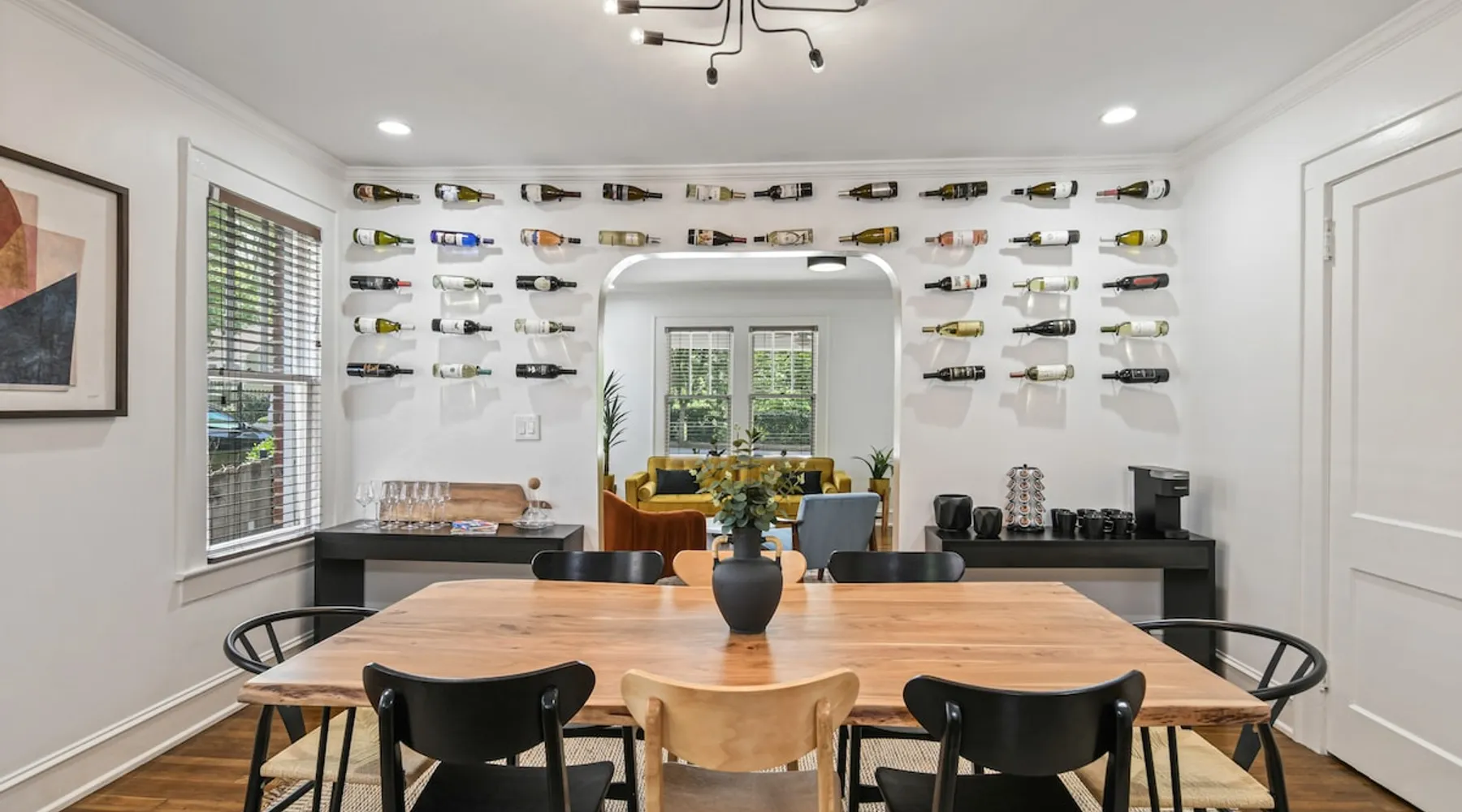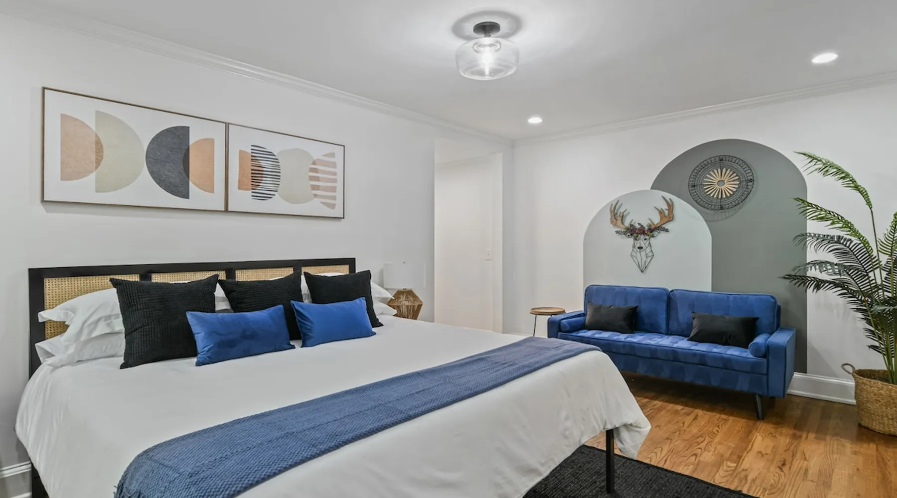 Filled with character, this 1920s bungalow offers a spacious layout perfect for family & friends. Artful, modern decor complements the newly renovated kitchen & bathrooms Key features include 2 LIVING ROOMS, 3 KING BEDS, THREE 70-INCH TVs, FAST WIFI, central heating & AC, plenty of fresh towels, 2 patios, a 2-car driveway & additional street parking Both of our homes are in the same neighborhood and ranked in the TOP 10% OF AIRBNB LISTINGS. Tap the profile picture to view the other house! The space Welcome to your "Home Away From Home" residential getaway. This 2,100-square-foot 1920s Bungalow is glowing with personality! From its original wood floors and doors to its newly renovated kitchen and bathrooms. We use Airbnb for overnight guest reservations only. Please find this home listed under the same name on popular production platforms for Film, Photography or other Creative projects! (RIGHT SIDE OF HOME) The front door opens to a spacious lounge room and workspace designed for conversational seating. You'll walk through an arch that leads to a full dining room and kitchen. The next opening will lead you to the main living room and back deck. (LEFT SIDE OF HOME) The spacious, comfortable bedrooms & bathrooms. Please note, these are the original windows and they do not open. LOUNGE ROOM (Right Side) • Colorful Mid-Century Modern Furniture fills the area • Conversational Seating around the decorative (only) fireplace • Pop-out your laptop to get some work done in an energetic space • Listen to records on the Vinyl player and enjoy the music DINING (Right Side) • This 8-seater live edge wood & iron table is great for a sit-down dinner • Wine Wall sets the vibe for a glass of wine (bottles available for purchase only) • The Coffee Bar was meant to give you a boost of energy • Alternative milk options are usually available KITCHEN (Right Side) • Cooking is made easy in this renovated kitchen equipped with pots, pans, baking sheets, utensils & silverware. • Cooking oil and Seasonings are also provided • Don't really cook? That's okay, use the microwave! • Clean up required: Hand wash or Dishwasher is available LIVING SPACE (Right Side) • Time to kick off your shoes and relax on a comfy 5-seater sofa • Enjoy the 70-Inch TV with Netflix, Hulu, Disney+, HBO Max, Amazon Prime TV, AppleTV & ESPN+ (all channels on all 4 TVs) _____________________________ MASTER BEDROOM (Left Side) • Relax on King Size bed while watching 70 Inch Samsung TV • Private en suite bathroom with Double Vanity, Large Tub, and Walk-in Shower with waterfall Shower Head • MakeShift closet in bathroom • Designated workspace with Desk & Chair THE GREEN ROOM (Left Side) • 1 King Bed • 70 Inch TV • Small Closet • Vanity Desk • Chair for seating THE BLUE ROOM (Left Side) • 1 King Bed • Nightstands + Reading Lamps • TV GUEST BATHROOM (Left Side) • Waterfall Shower • Sink LAUNDRY ROOM (Right Side) • Washer & Dryer • Laundry Detergent • Bleach • Dryer Sheets Guest access • Self Check-in with Smart Lock (custom code sent the morning of arrival) • Driveway holds 2 small cars. Additional free street parking is available • The backyard is not available to guests. Guests can access the entire inside of the property, front yard, driveway, and back deck. The backyard is blocked off as we do not upkeep it for guests. Other things to note COMMUNITY The Edgewood Retail District (a giant shopping center) is 2 minutes away and Includes a Starbucks, 5 Guys, American Deli, Smoothie King, Kroger, Target and many places to eat! FOR FAMILIES W/ SMALL CHILDREN • Pack & Play Crib & Bassinet • Baby bowls & eating utensils • High chair • Baby gate • Baby wash ATTRACTIONS • 1 mile to Little Five Points • 2.4 miles from The Beltline & Krog Street Market • 2 miles from Inman Park • 2.8 miles from Ponce City Market • 3 miles from Downtown • 3 miles from MLK museum • 3.3 miles from Virginia Highland • 4.1 miles from State Farm Arena (Atlanta Hawks) • 4.2 miles from Emory Hospital • 5 miles from Mercedes Benz football Stadium (Atlanta Falcons) • 5 miles from Georgia Aquarium and Coca-Cola Museum • 7 miles from Midtown and Piedmont Park • 11 miles from Buckhead • 12 miles from Atlanta Hartsfield-Jackson Airport Registration Details STRL-2022-00830