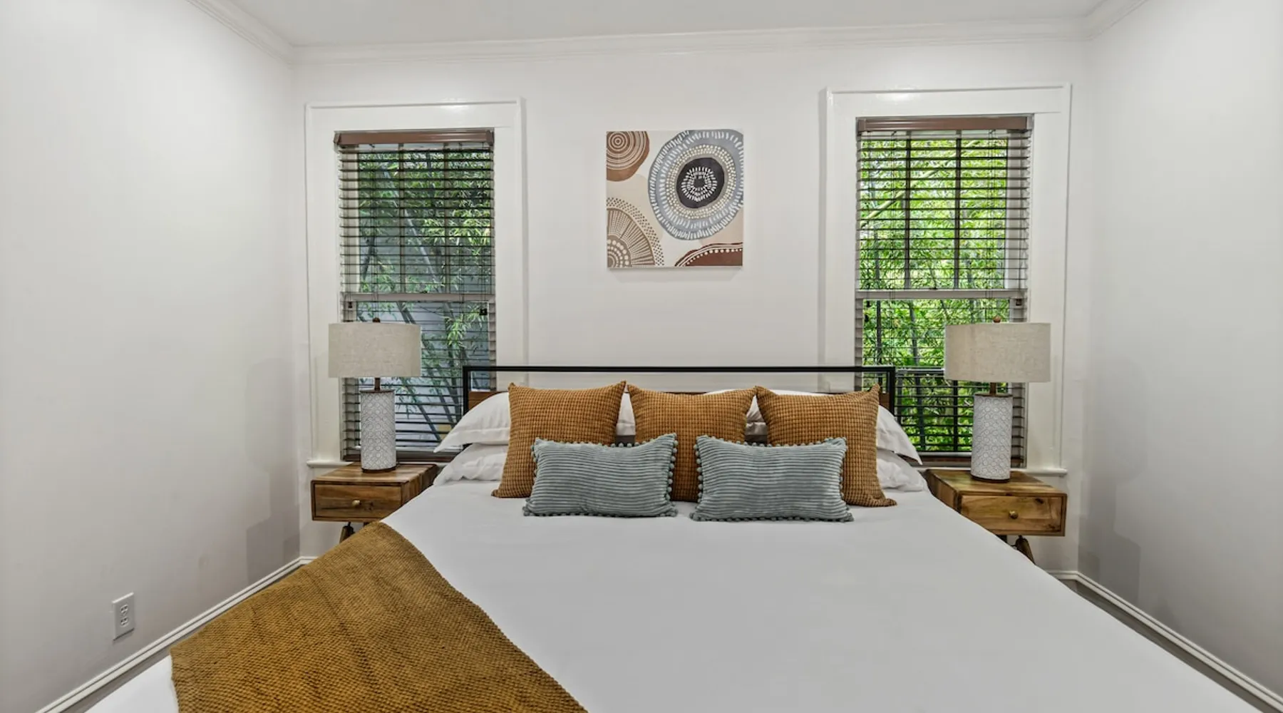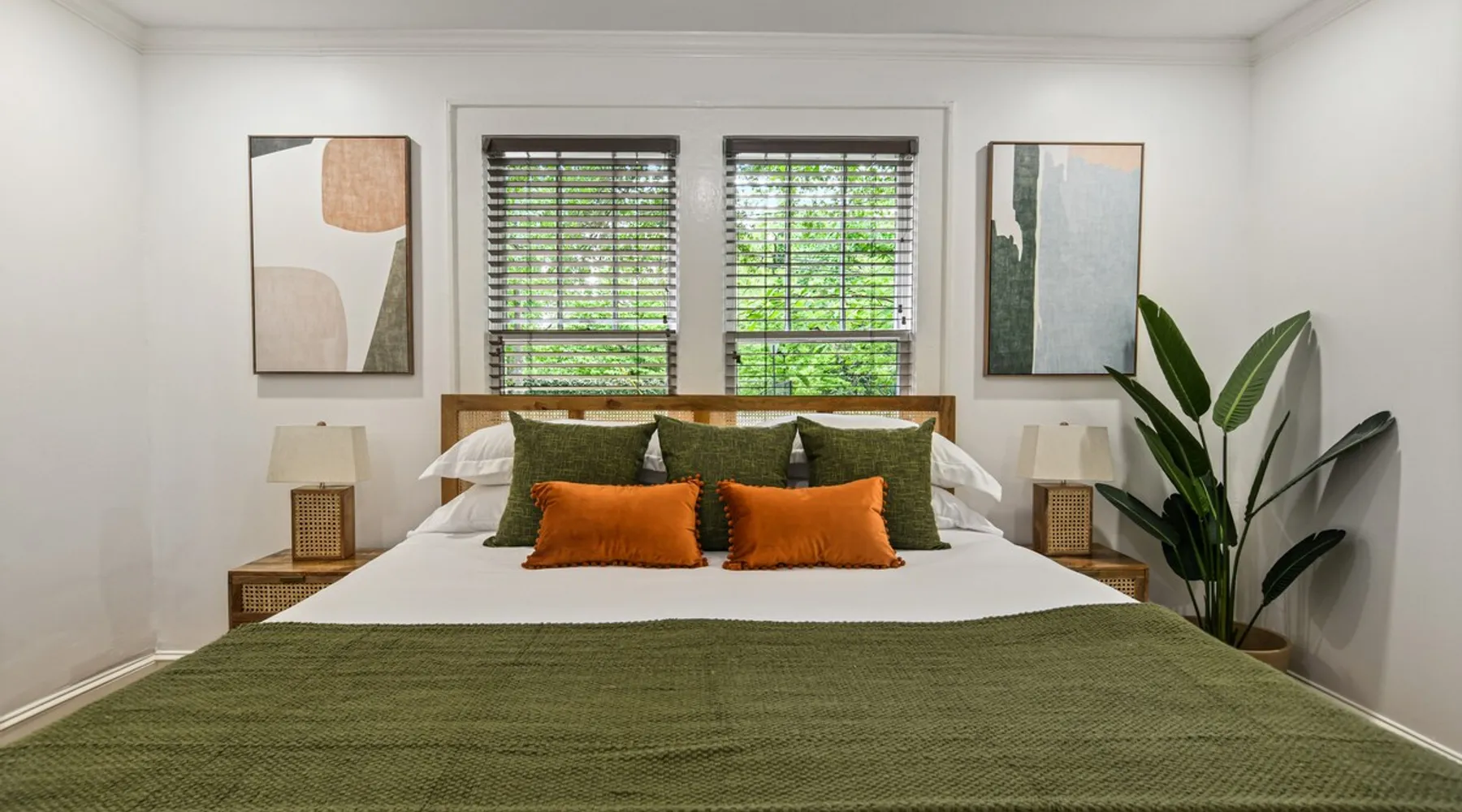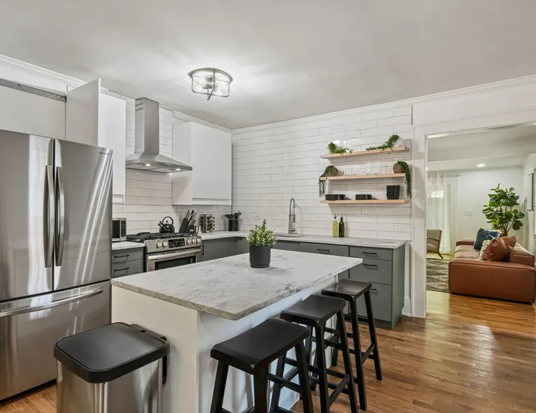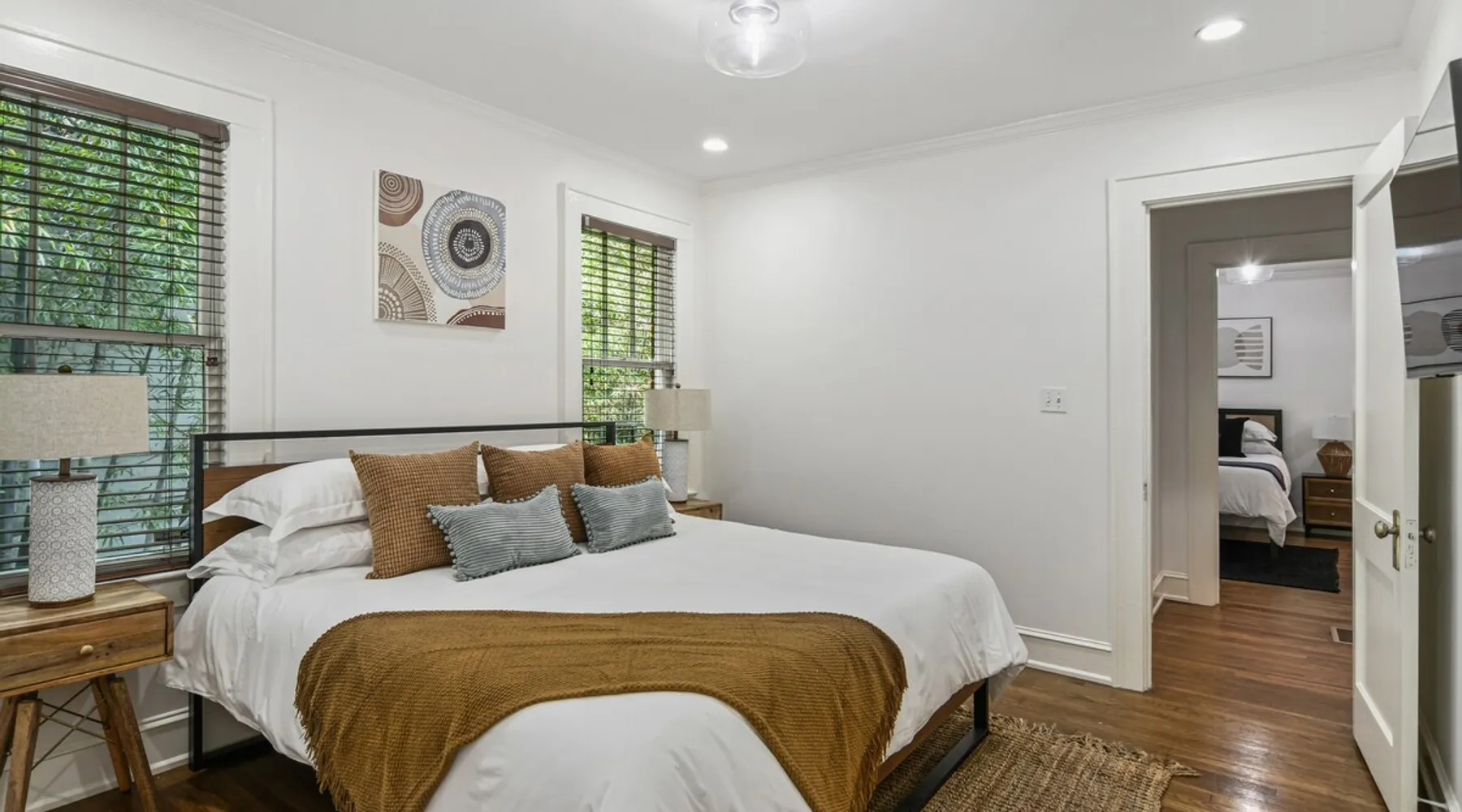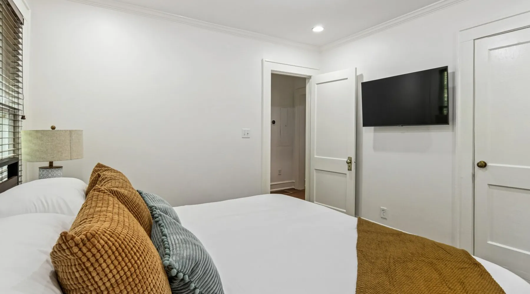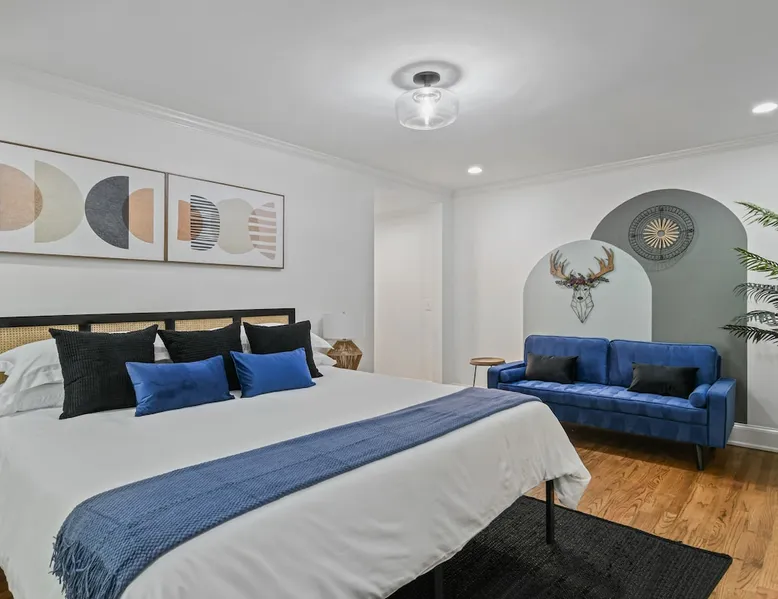 Filled with character, this 1920s bungalow offers a spacious layout perfect for family & friends. Artful, modern decor complements the newly renovated kitchen & bathrooms Key features include 2 LIVING ROOMS, 3 KING BEDS, THREE 70-INCH TVs, FAST WIFI, central heating & AC, plenty of fresh towels, 2 patios, a 2-car driveway & additional street parking Both of our homes are in the same neighborhood and ranked in the TOP 10% OF AIRBNB LISTINGS. Tap the profile picture to view the other house! The space Welcome to your "Home Away From Home" residential getaway. This 2,100-square-foot 1920s Bungalow is glowing with personality! From its original wood floors and doors to its newly renovated kitchen and bathrooms. We use Airbnb for overnight guest reservations only. Please find this home listed under the same name on popular production platforms for Film, Photography or other Creative projects! (RIGHT SIDE OF HOME) The front door opens to a spacious lounge room and workspace designed for conversational seating. You'll walk through an arch that leads to a full dining room and kitchen. The next opening will lead you to the main living room and back deck. (LEFT SIDE OF HOME) The spacious, comfortable bedrooms & bathrooms. Please note, these are the original windows and they do not open. LOUNGE ROOM (Right Side) • Colorful Mid-Century Modern Furniture fills the area • Conversational Seating around the decorative (only) fireplace • Pop-out your laptop to get some work done in an energetic space • Listen to records on the Vinyl player and enjoy the music DINING (Right Side) • This 8-seater live edge wood & iron table is great for a sit-down dinner • Wine Wall sets the vibe for a glass of wine (bottles available for purchase only) • The Coffee Bar was meant to give you a boost of energy • Alternative milk options are usually available KITCHEN (Right Side) • Cooking is made easy in this renovated kitchen equipped with pots, pans, baking sheets, utensils & silverware. • Cooking oil and Seasonings are also provided • Don't really cook? That's okay, use the microwave! • Clean up required: Hand wash or Dishwasher is available LIVING SPACE (Right Side) • Time to kick off your shoes and relax on a comfy 5-seater sofa • Enjoy the 70-Inch TV with Netflix, Hulu, Disney+, HBO Max, Amazon Prime TV, AppleTV & ESPN+ (all channels on all 4 TVs) _____________________________ MASTER BEDROOM (Left Side) • Relax on King Size bed while watching 70 Inch Samsung TV • Private en suite bathroom with Double Vanity, Large Tub, and Walk-in Shower with waterfall Shower Head • MakeShift closet in bathroom • Designated workspace with Desk & Chair THE GREEN ROOM (Left Side) • 1 King Bed • 70 Inch TV • Small Closet • Vanity Desk • Chair for seating THE BLUE ROOM (Left Side) • 1 King Bed • Nightstands + Reading Lamps • TV GUEST BATHROOM (Left Side) • Waterfall Shower • Sink LAUNDRY ROOM (Right Side) • Washer & Dryer • Laundry Detergent • Bleach • Dryer Sheets Guest access • Self Check-in with Smart Lock (custom code sent the morning of arrival) • Driveway holds 2 small cars. Additional free street parking is available • The backyard is not available to guests. Guests can access the entire inside of the property, front yard, driveway, and back deck. The backyard is blocked off as we do not upkeep it for guests. Other things to note COMMUNITY The Edgewood Retail District (a giant shopping center) is 2 minutes away and Includes a Starbucks, 5 Guys, American Deli, Smoothie King, Kroger, Target and many places to eat! FOR FAMILIES W/ SMALL CHILDREN • Pack & Play Crib & Bassinet • Baby bowls & eating utensils • High chair • Baby gate • Baby wash ATTRACTIONS • 1 mile to Little Five Points • 2.4 miles from The Beltline & Krog Street Market • 2 miles from Inman Park • 2.8 miles from Ponce City Market • 3 miles from Downtown • 3 miles from MLK museum • 3.3 miles from Virginia Highland • 4.1 miles from State Farm Arena (Atlanta Hawks) • 4.2 miles from Emory Hospital • 5 miles from Mercedes Benz football Stadium (Atlanta Falcons) • 5 miles from Georgia Aquarium and Coca-Cola Museum • 7 miles from Midtown and Piedmont Park • 11 miles from Buckhead • 12 miles from Atlanta Hartsfield-Jackson Airport Registration Details STRL-2022-00830