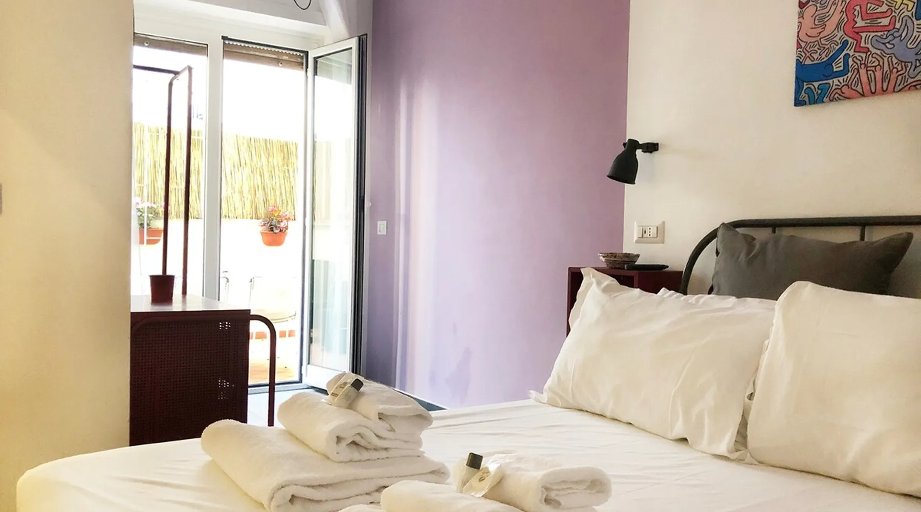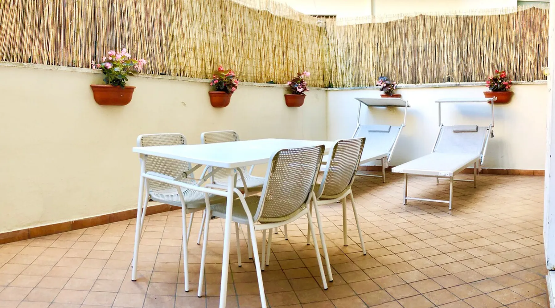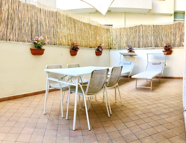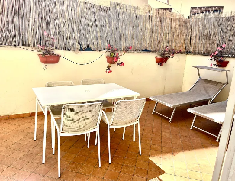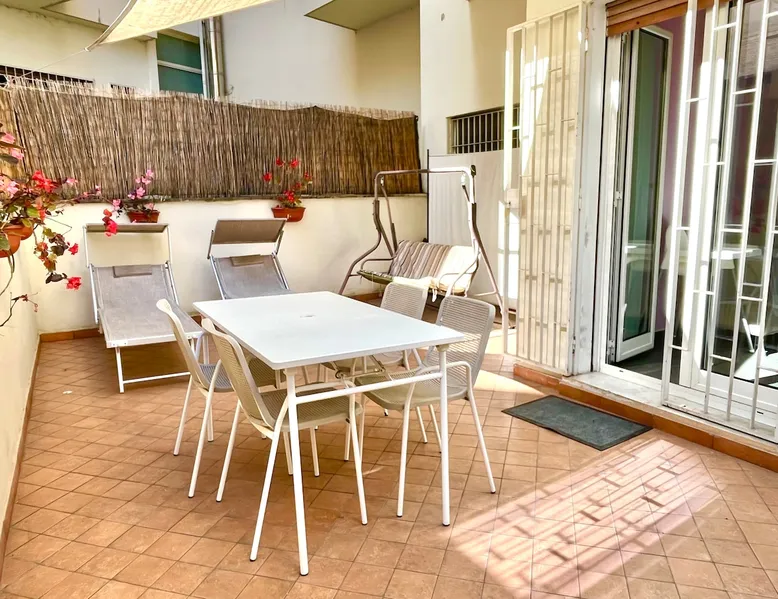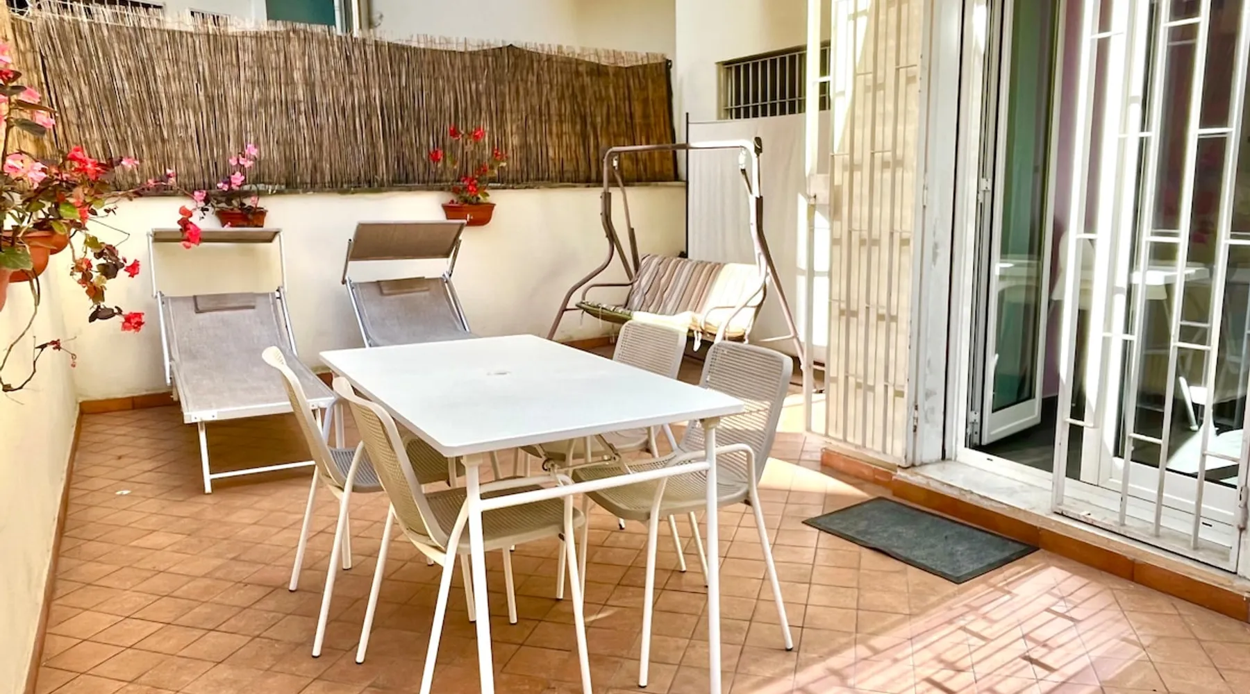 Lovely apartment consisting of two double bedrooms, with air conditioning, a hallway with equipped kitchen and dining table, a nice bathroom with shower, toilet and bidet and private terrace, with dining table, deckchairs and poltrocine. Located in Trastevere, 500 meters from the Testaccio market, 1400 meters from the tourist area of Trastevere. Very close to the tram8 that takes you to Largo Argentina, Campo de Fiori, Pantheon in 10 minutes. The location is one of the best you could wish for! The space Lovely apartment on the ground floor, consisting of two double bedrooms, with air conditioning, a hallway with fully equipped kitchen and dining table, a spacious bathroom with shower, toilet and bidet and large private terrace, with dining table, armchairs and deckchairs. Located 500 meters from Testaccio Market, 850 meters from Piazza Testaccio, 1400 meters from the heart of Trastevere. Very close to tram 8 that in 10 minutes takes you to Largo Argentina, Campo de Fiori and the Pantheon. In the immediate vicinity, there are bars, restaurants, supermarkets and shops of all kinds. The location is one of the best you could want! Other things to note Check in can be done from 3:00 PM Check-in is by appointment only. In order to accommodate your needs, a check-in time must be scheduled as soon as possible (at least 48 hours prior the arrival). (for a last minute booking, a minimum of 3 hours notice is required) We will do our best to accommodate any request outside these parameters, but it will be subject to the availability of the person in charge of your check-in. Check-in past 9:00 PM is subject to 15 Euros late arrival fee (past 10:00 PM €25, past 11:00 PM €40, past midnight €45). Check-in past 1:00 AM will not be possible. Registration details IT058091C2YPLZC754