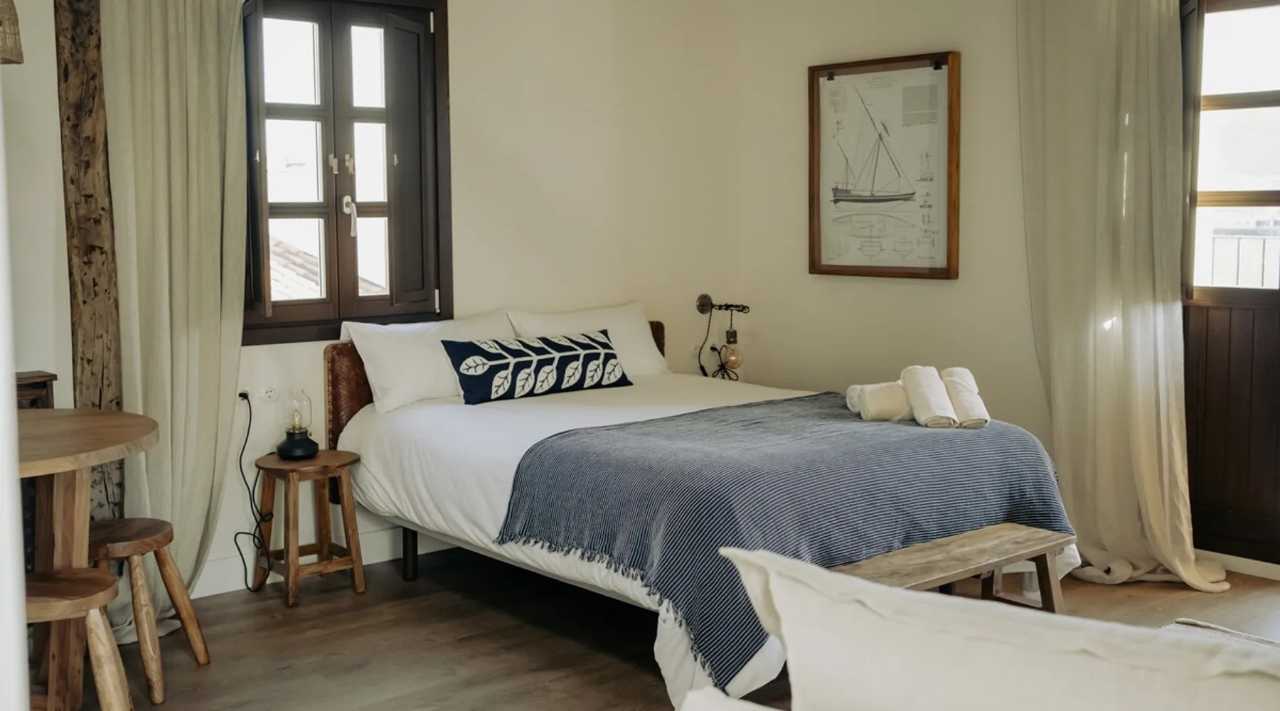 This building, popularly known as Etxetxu, was built in 1612 and is the oldest in Puerto Viejo, even older than the port itself, which was built in 1629, seventeen years later. This unique house that presides over the entrance to the upper part of the neighborhood was also the Getxo Town Hall for 22 years (from 1838 to 1860), headquarters of the Fishermen's Brotherhood and the Lemanes Sailors Piloting School. It has even been the scene of several films, the most famous being “Un poco de Chocolate” (A Little Chocolate). As a more recent event, on Saturday, August 12, 1972, in the middle of the Puerto Viejo de Algorta festivities, it is on the ground floor of this historic building, where the popular Kalimotxo drink was baptized. and we currently offer two tourist apartments in this emblematic enclave Registration Details Spain - National registration number Exempt Basque Country - Regional registration number TBI00057