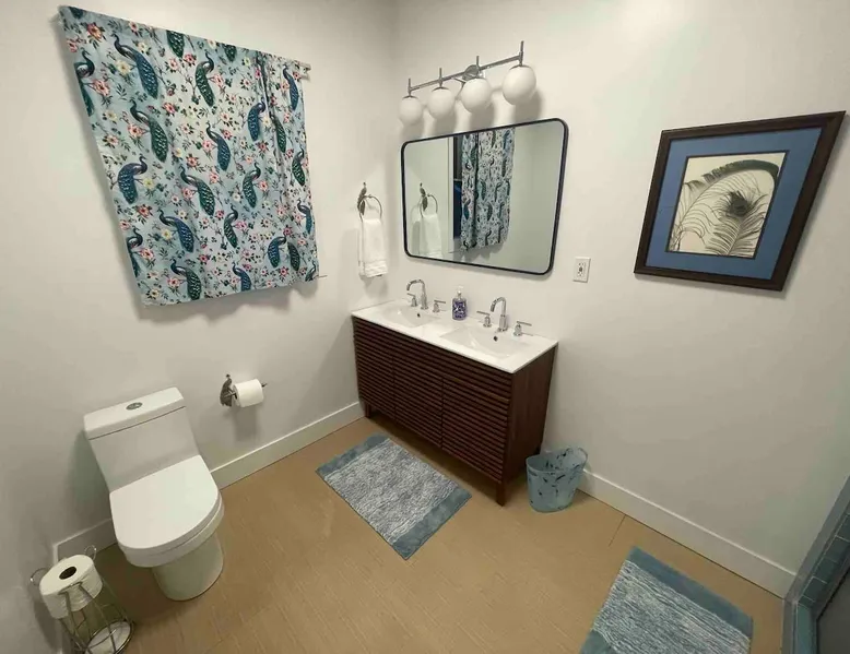 Keep it simple at this peaceful and centrally-located newly renovated place 25 miles from Napa, San Francisco and Berkeley. Enjoy a view of the San Francisco Bay. Relax in the large backyard under two 500+ year-old redwood trees. Have fun in the large hot tub. Walk a few minutes to a winery, beautiful beach and the San Francisco Bay Trail right across the street. The space Good view of the San Francisco Bay out the front of the house. Short walk to Rodeo Marina with winery, food trucks, live music and yoga classes. San Francisco Bay Trail directly across the street for exercising or going for a nice walk. Park and beach access a 5 minute walk from the front door. Large private yard that resembles a park with two beautiful hundreds of years old redwood trees that cover a special outdoor dining area and relaxing living area with couches and chairs. All outdoor furnishings are new and high-end. Private hot tub and ping-pong table for fun and enjoyment. Three separate residential spaces with five private bedrooms and two bathrooms. Fully equipped kitchen and dining room. Nice living room area with large couch and new hi-definition TV. Other things to note Pets and events are considered and additional fees will apply. Please inquire with us about it. Thanks.