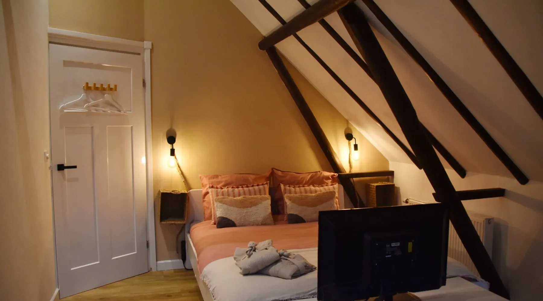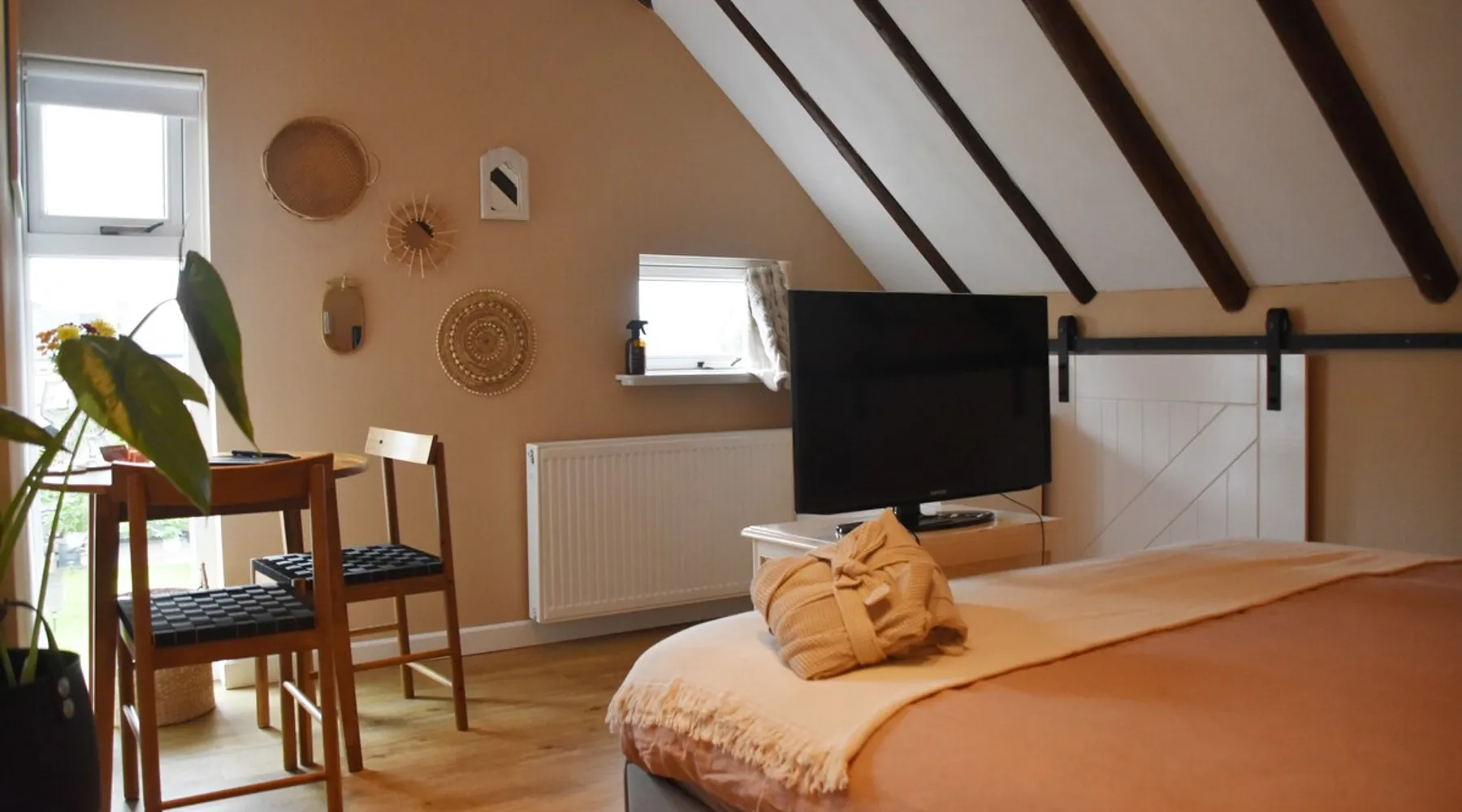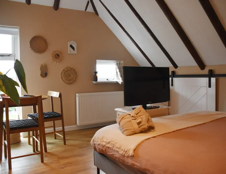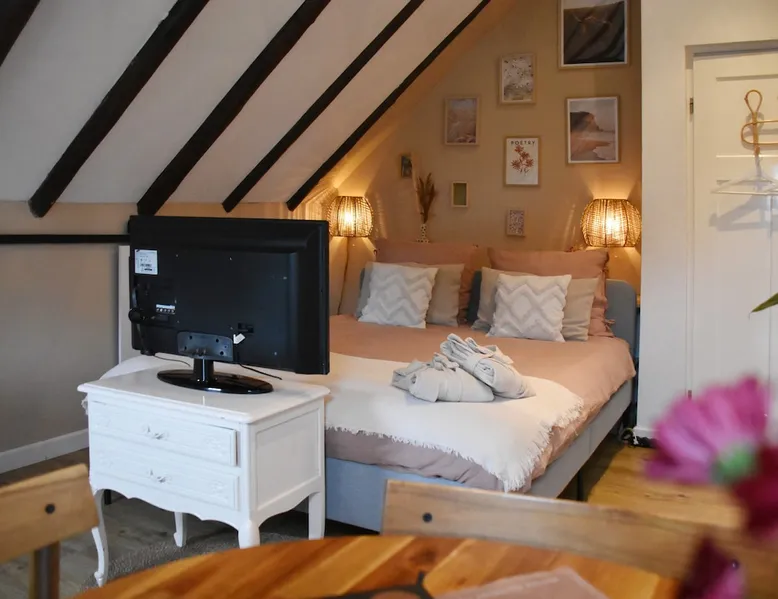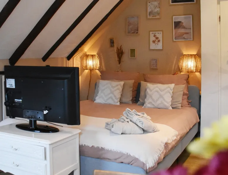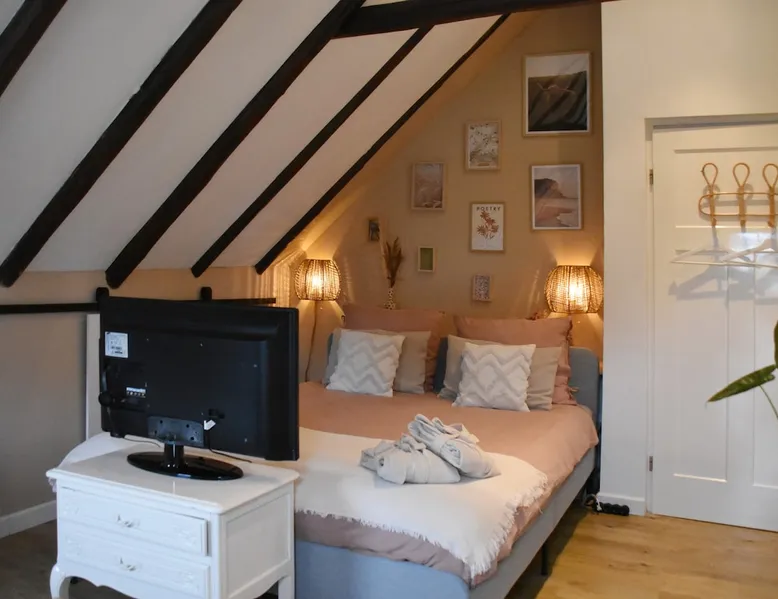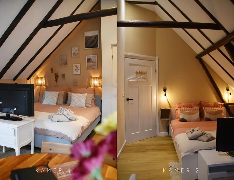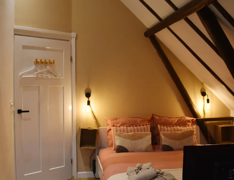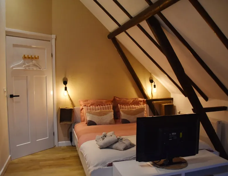 The B&B is located in a municipal monument from 1871. You can stay overnight with a maximum of four people in two authentic double rooms. If you come with 4 people, you will share the bathroom. If you come with 1 or 2 people, the luxurious bathroom is only for you. The rooms have a beautiful old beamed ceiling, double bed, table and chairs and a TV. Parking is available in front of the door and the center is within walking distance. Also enjoy the garden, with a canopy and an fireplace. The space The rooms are located in the house, on the first floor and accessible via a beautiful staircase. The rooms are attractively and warmly decorated and both have a lovely double bed, ample storage space, coffee corner, table with chairs, television, games, books and a refrigerator. You also have your own luxurious bathroom at your disposal, which is located in the hallway. You share this when you come to spend the night with 3 or 4 people. If you come as a couple, the other room is closed and the bathroom is private for you. This bathroom has a spacious walk-in rain shower, double sink and toilet. Both the room and the bathroom are fully equipped. So all you have to do is pack your toothbrush. From the rooms you have a view over the deep garden. In this garden there is a spacious table with chairs and a large parasol and at the back of the garden there is a lovely canopy with a fireplace where you can enjoy a drink in the evening or in winter. Guest access During your stay you can use your attractive room with a place to have breakfast or dinner and the bathroom on the same floor. In addition, the entire garden can be used, both the terrace and the space under the canopy. Do you want to use the kitchen to cook? Then this can be done in consultation. You will also receive your own key for your own entrance at the back of the house. During your stay During your stay there will always be someone in or around the house, because we also live here. If this is not the case because we quickly run an errand, you can always reach me on mobile or send a message via AirBnB. Other things to note Would you like to enjoy breakfast in bed or together in the room during your stay? Then it is possible to book this on site. Please indicate this when you make your reservation and we will be happy to serve you a fresh and varied breakfast.