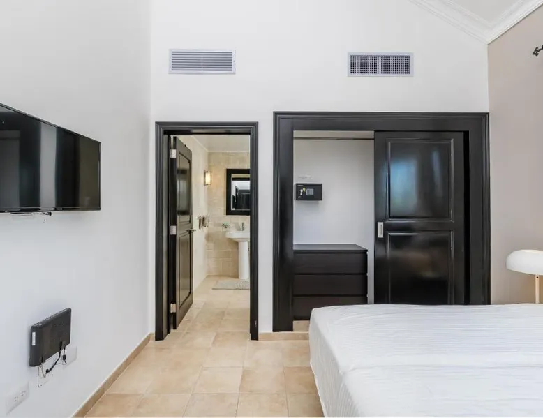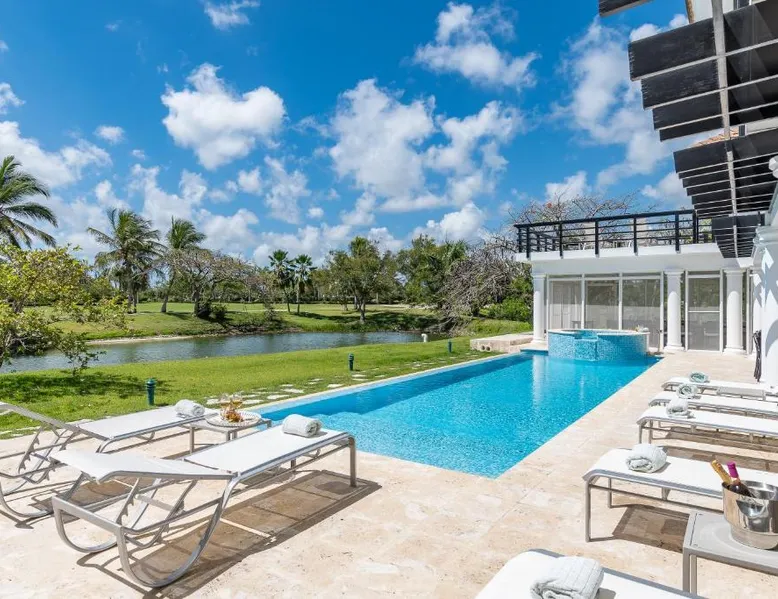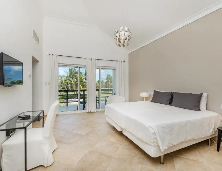 Spacious Accommodations: Pool View Villa with Jacuzzi & Chef at Cocotal Golf & Country Club in Punta Cana offers eight bedrooms and eight bathrooms. The villa features a swimming pool with a view, a garden, terrace, and indoor swimming pool. Free WiFi is available throughout the property. Modern Amenities: Guests can enjoy air-conditioning, a kitchenette, balcony, and a pool with a view. Additional facilities include a hot tub, pool bar, laundry service, and full-day security. The property provides a paid shuttle service, room service, and car hire. Prime Location: Located 8.1 mi from Punta Cana International Airport, the villa is a 1-minute walk from Cocotal Golf and Country Club. Nearby attractions include Barcelo Golf Bavaro (1.7 mi) and Bavaro Adventure Park (6.2 mi). This villa's standout feature is the pool with a view. Boasting a private entrance, this spacious villa also includes 8 bedrooms, a seating area and 8 bathrooms with a bath and a shower. Guests will find a stovetop, a refrigerator, a dishwasher and kitchenware in the kitchen. The villa also features a barbecue. The air-conditioned villa offers a flat-screen TV with cable channels, a washing machine, a mini-bar, a tea and coffee maker as well as garden views. The unit has 16 beds.