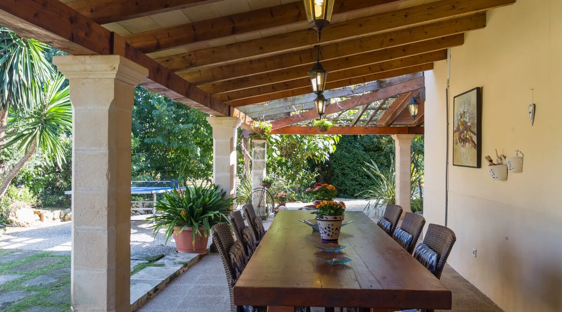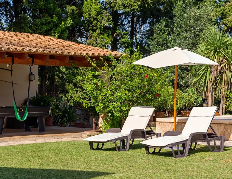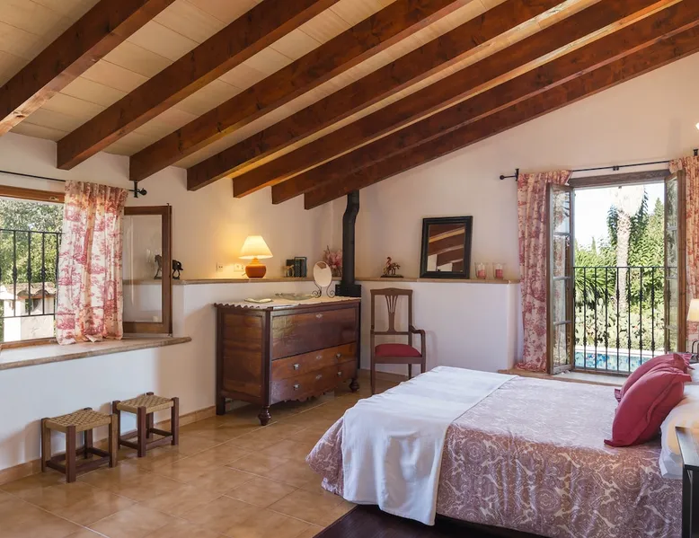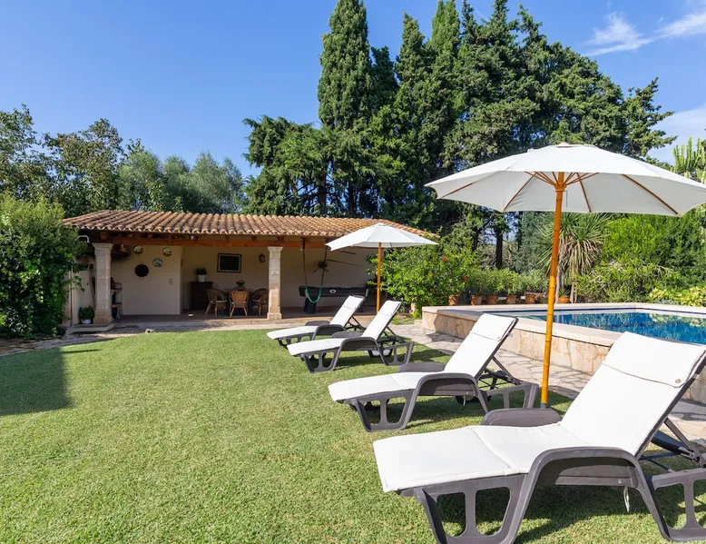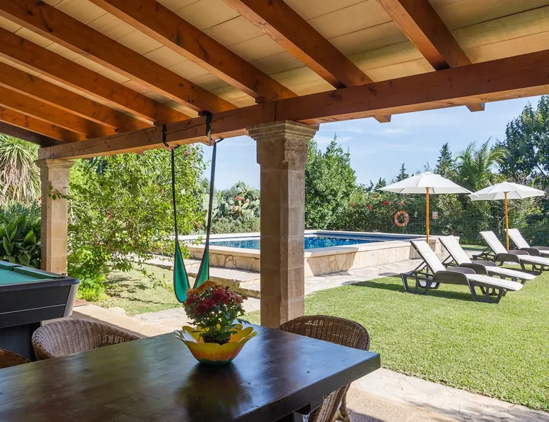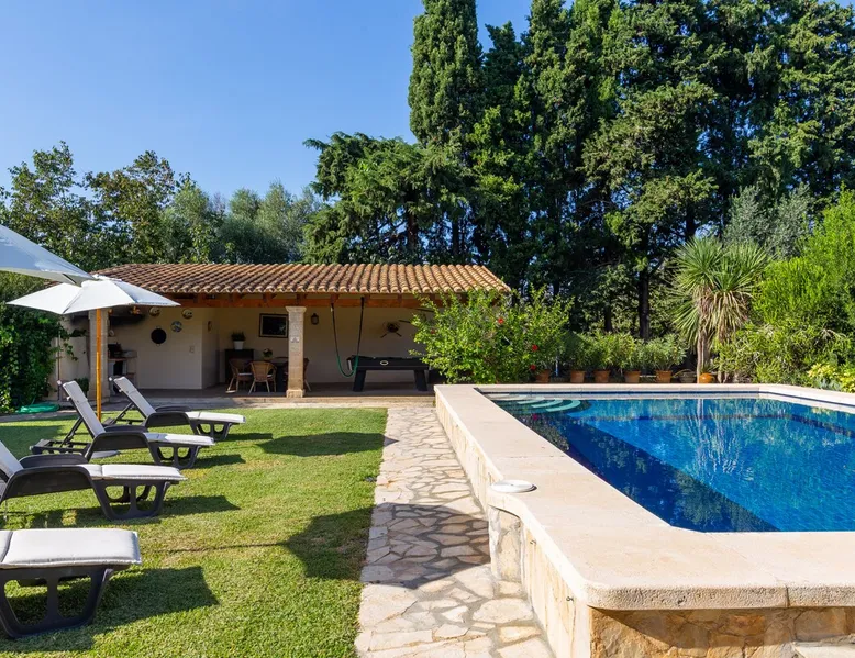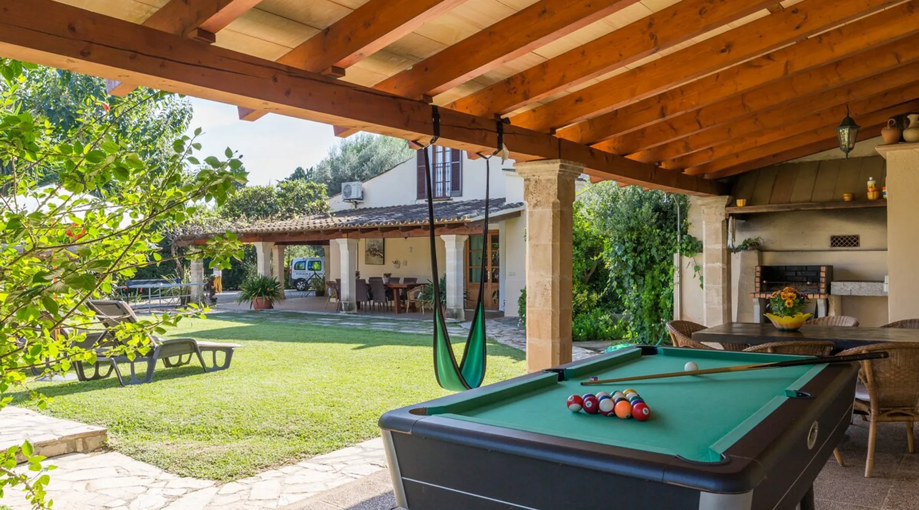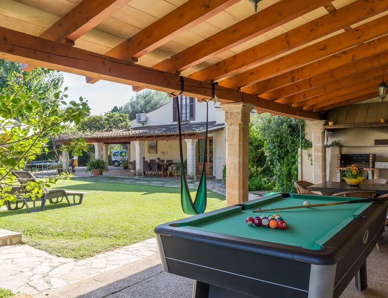 A charming finca in a quiet location, featuring a heated pool and large veranda, as well as billiards and table tennis tables. The nearest sandy beaches are about ten minutes away.Can Roig sits in the middle of a fragrant orange grove. The space A charming finca in a quiet location, featuring a heated pool and large veranda, as well as billiards and table tennis tables. The nearest sandy beaches are about ten minutes away.Can Roig sits in the middle of a fragrant orange grove. With great attention to detail, the owners of the former country house have transformed it into a cosy holiday home with beautiful green areas and flowers. The well-kept and nicely furnished house and garden ensure that guests feel will comfortable here. The finca’s covered terraces are equipped with a large dining table, as well as billiards and table tennis tables. The cosy house offers three double bedrooms, three bathrooms, a living/dining room and a kitchen. This well-quipped house provides guests with everything required for a successful holiday. On request, the pool can also be heated.This holiday home is located in Pollença, at the foot of the Tramuntana mountains. The beaches of Puerto Pollença and Puerto Alcudia can be reached by car in about ten minutes. The town of Pollença is about four kilometres away. At Can Roig, you will be in the peace and quiet of the countryside, while having beaches and shopping in the immediate vicinity. Weekly markets are held in Alcudia, Puerto Pollença and Pollença. Villa Pollensa with heated pool, ping pong and billiard is perfect for a family holiday. Other things to note Included services: - Bed linen: Change each 7 days. - Towels: Change each 4 days. Optional services: - Heated Pool: Price: 36 €/ day - Extra Beds: Price is shown for 6 people Price: €10 per day. - Cot/Crib: Price: included in the booking. - Baby high chair: Price: included in the booking. Registration Details Spain - National registration number ESFCTU0000070300003075980000000000000000000000VT/4803 Mallorca - Regional registration number VT/0480