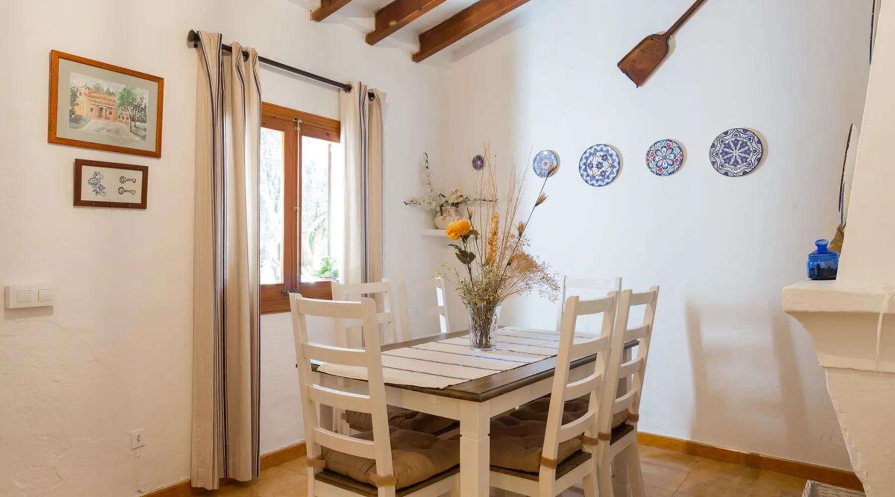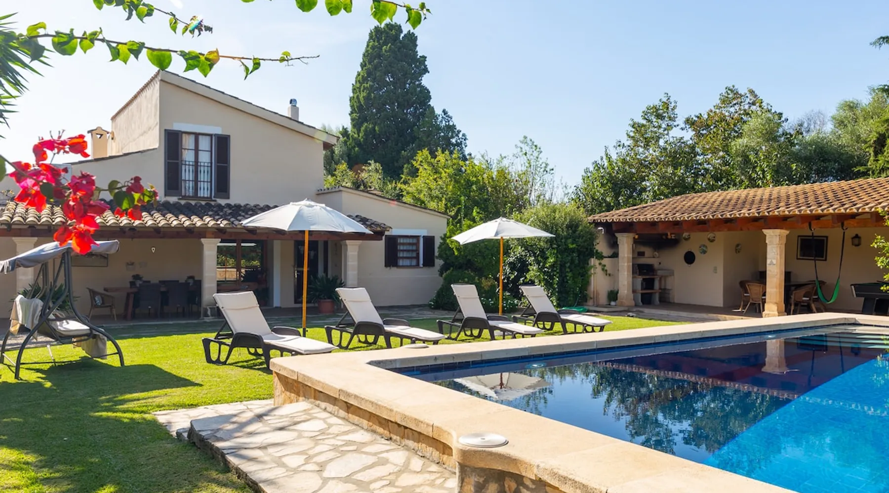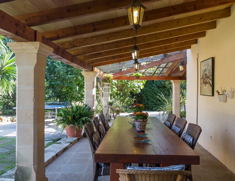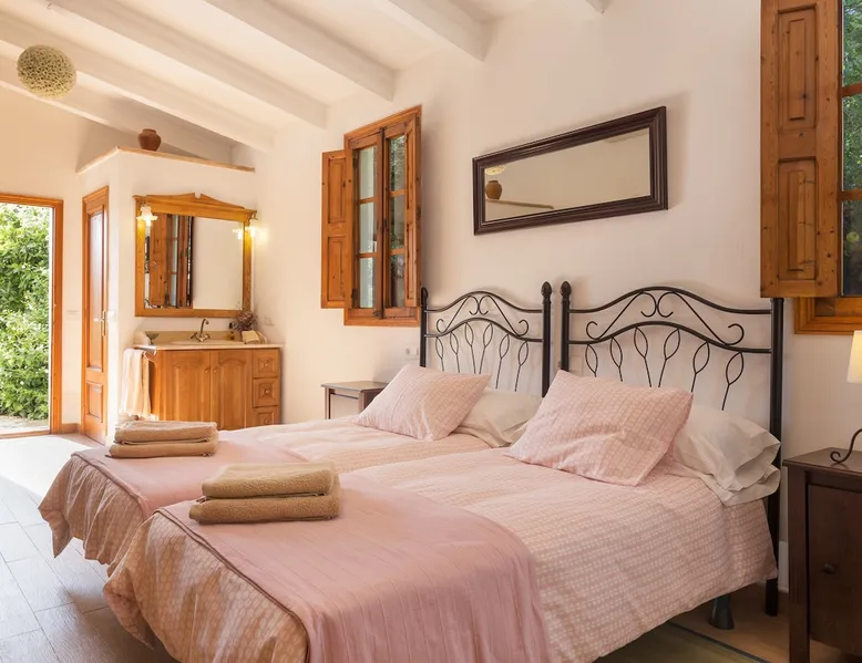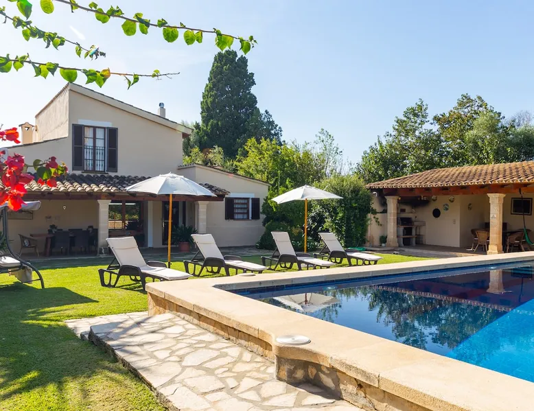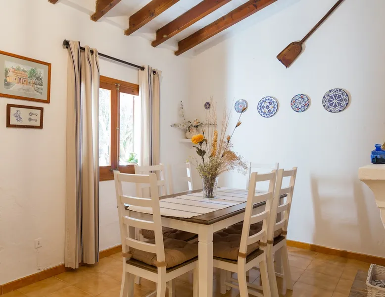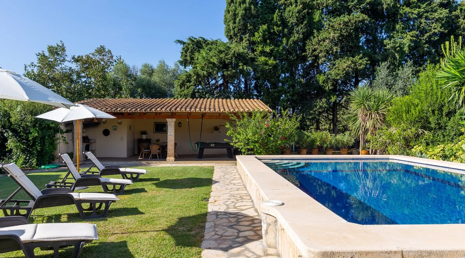 A charming finca in a quiet location, featuring a heated pool and large veranda, as well as billiards and table tennis tables. The nearest sandy beaches are about ten minutes away.Can Roig sits in the middle of a fragrant orange grove. The space A charming finca in a quiet location, featuring a heated pool and large veranda, as well as billiards and table tennis tables. The nearest sandy beaches are about ten minutes away.Can Roig sits in the middle of a fragrant orange grove. With great attention to detail, the owners of the former country house have transformed it into a cosy holiday home with beautiful green areas and flowers. The well-kept and nicely furnished house and garden ensure that guests feel will comfortable here. The finca’s covered terraces are equipped with a large dining table, as well as billiards and table tennis tables. The cosy house offers three double bedrooms, three bathrooms, a living/dining room and a kitchen. This well-quipped house provides guests with everything required for a successful holiday. On request, the pool can also be heated.This holiday home is located in Pollença, at the foot of the Tramuntana mountains. The beaches of Puerto Pollença and Puerto Alcudia can be reached by car in about ten minutes. The town of Pollença is about four kilometres away. At Can Roig, you will be in the peace and quiet of the countryside, while having beaches and shopping in the immediate vicinity. Weekly markets are held in Alcudia, Puerto Pollença and Pollença. Villa Pollensa with heated pool, ping pong and billiard is perfect for a family holiday. Other things to note Included services: - Bed linen: Change each 7 days. - Towels: Change each 4 days. Optional services: - Heated Pool: Price: 36 €/ day - Extra Beds: Price is shown for 6 people Price: €10 per day. - Cot/Crib: Price: included in the booking. - Baby high chair: Price: included in the booking. Registration Details Spain - National registration number ESFCTU0000070300003075980000000000000000000000VT/4803 Mallorca - Regional registration number VT/0480