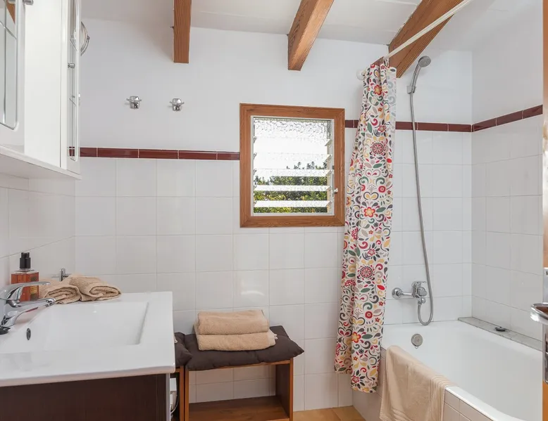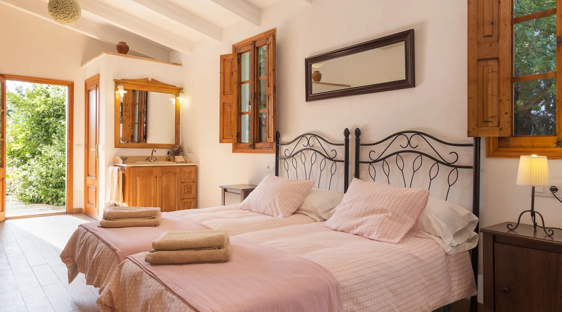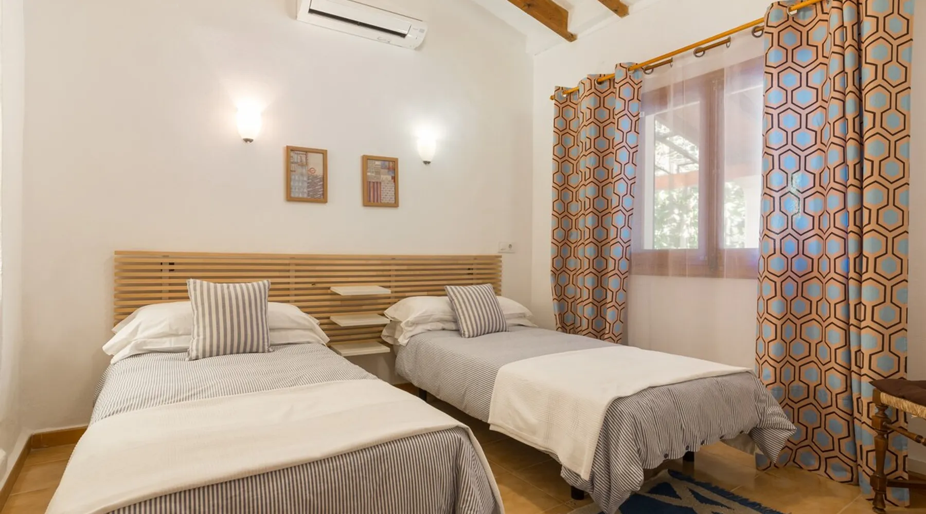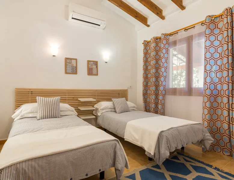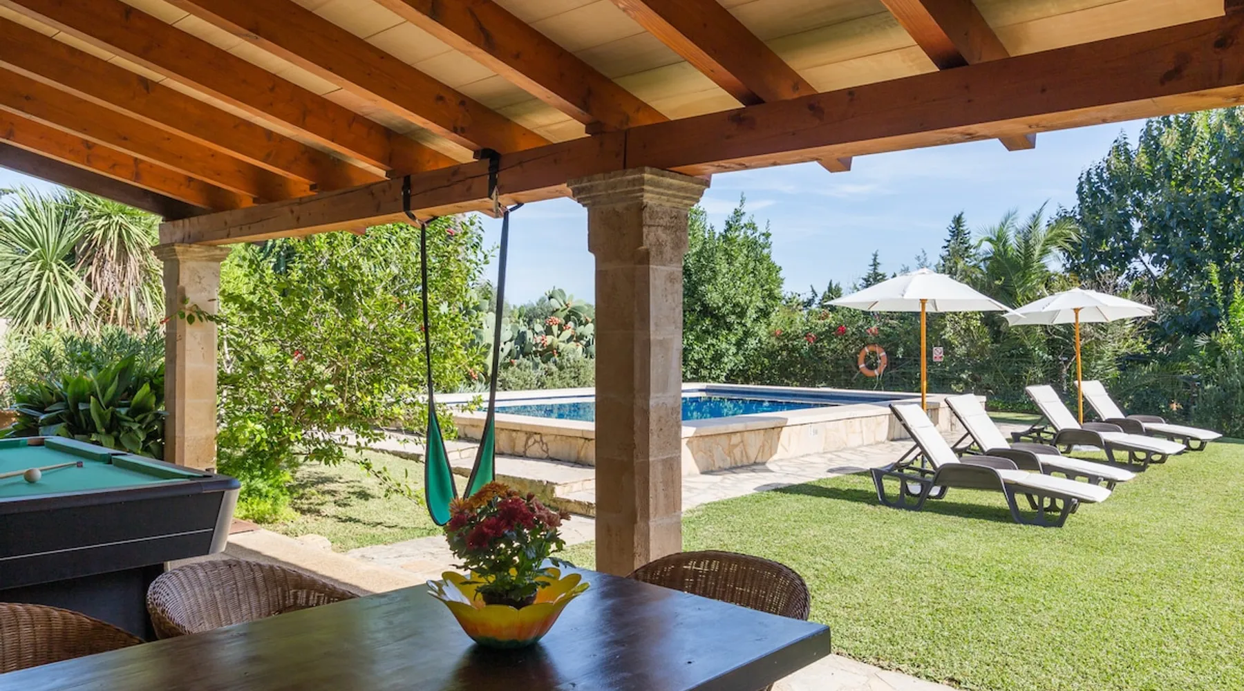 A charming finca in a quiet location, featuring a heated pool and large veranda, as well as billiards and table tennis tables. The nearest sandy beaches are about ten minutes away.Can Roig sits in the middle of a fragrant orange grove. The space A charming finca in a quiet location, featuring a heated pool and large veranda, as well as billiards and table tennis tables. The nearest sandy beaches are about ten minutes away.Can Roig sits in the middle of a fragrant orange grove. With great attention to detail, the owners of the former country house have transformed it into a cosy holiday home with beautiful green areas and flowers. The well-kept and nicely furnished house and garden ensure that guests feel will comfortable here. The finca’s covered terraces are equipped with a large dining table, as well as billiards and table tennis tables. The cosy house offers three double bedrooms, three bathrooms, a living/dining room and a kitchen. This well-quipped house provides guests with everything required for a successful holiday. On request, the pool can also be heated.This holiday home is located in Pollença, at the foot of the Tramuntana mountains. The beaches of Puerto Pollença and Puerto Alcudia can be reached by car in about ten minutes. The town of Pollença is about four kilometres away. At Can Roig, you will be in the peace and quiet of the countryside, while having beaches and shopping in the immediate vicinity. Weekly markets are held in Alcudia, Puerto Pollença and Pollença. Villa Pollensa with heated pool, ping pong and billiard is perfect for a family holiday. Other things to note Included services: - Bed linen: Change each 7 days. - Towels: Change each 4 days. Optional services: - Heated Pool: Price: 36 €/ day - Extra Beds: Price is shown for 6 people Price: €10 per day. - Cot/Crib: Price: included in the booking. - Baby high chair: Price: included in the booking. Registration Details Spain - National registration number ESFCTU0000070300003075980000000000000000000000VT/4803 Mallorca - Regional registration number VT/0480
