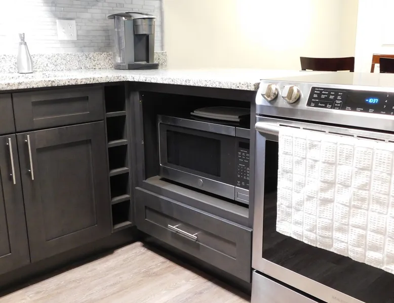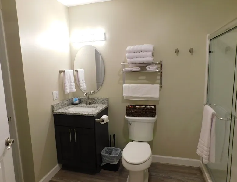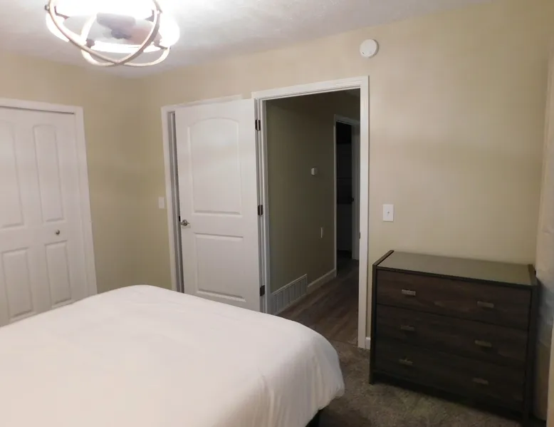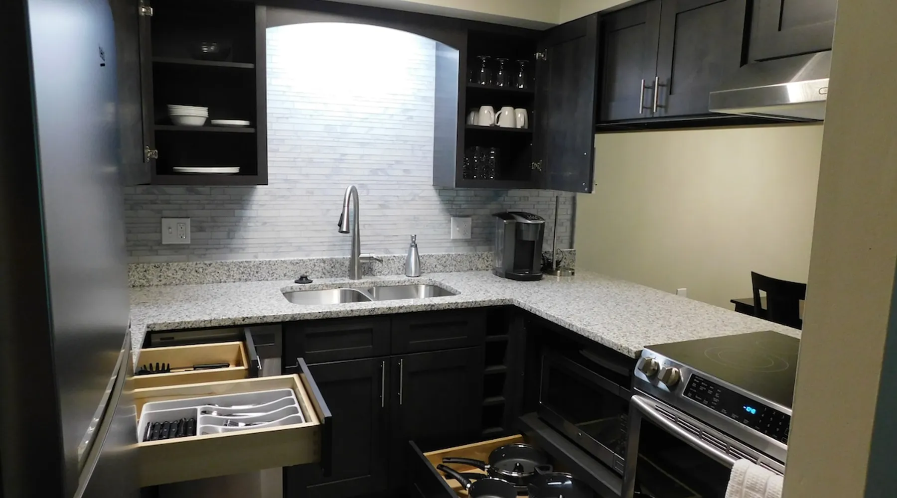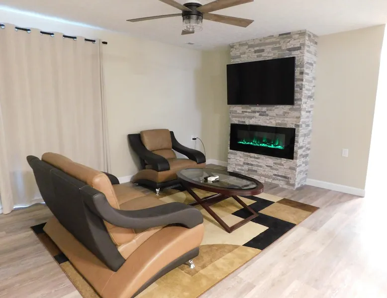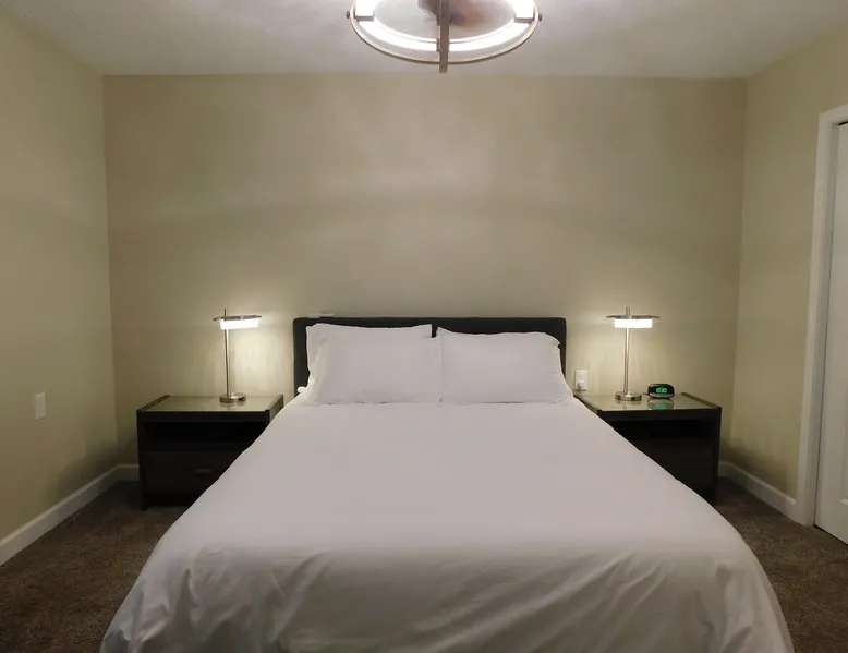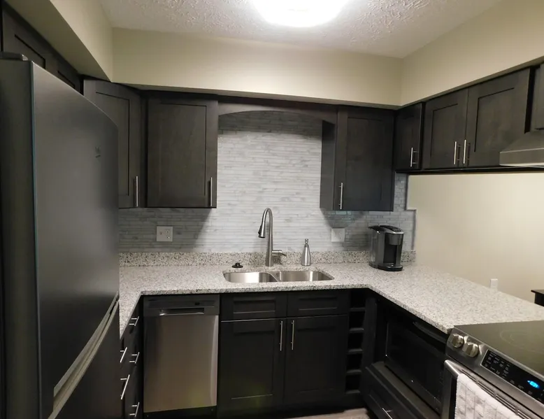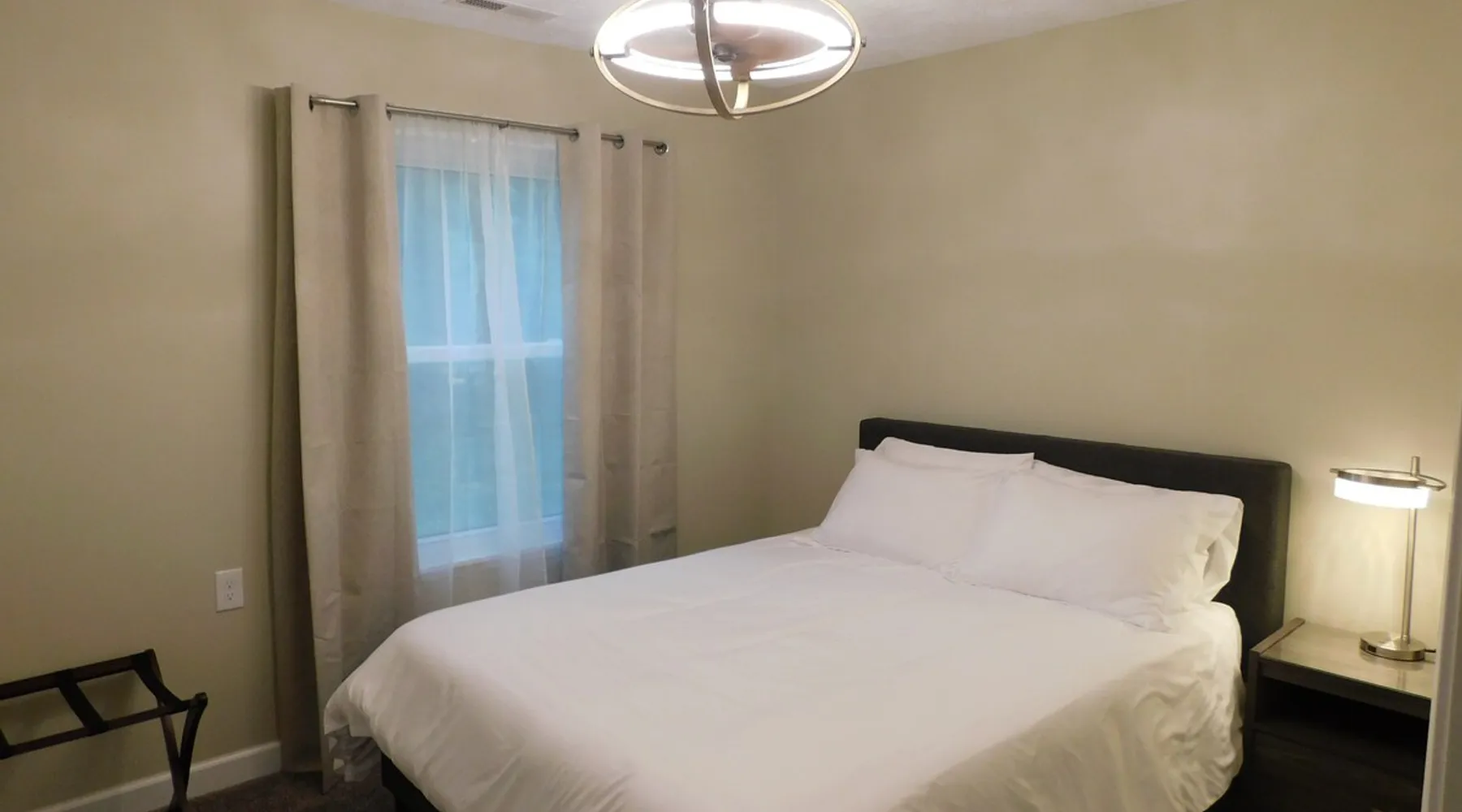 Close to restaurants, bars, shopping, local attractions, and the Meridian Mall. Okemos is an affluent community minutes from East Lansing where you can attend MSU sporting events, Wharton Center performances, rodeo and agricultural events, horticulture gardens, and museums including the Eli & Edythe Broad Art Museum. Furthermore, Downtown Lansing and the State Capitol building is less than seven miles away. The space Fully furnished 2BR unit featuring over 900 square feet of living space, as well as a private patio accessed from a large slider door with blackout drapes. The large living room offers plenty of seating to relax around the fireplace or watch your favorite shows on the 55-inch HD LG Smart Television. All doors are 36 inch wide for barrier free access all the way from the parking lot. The dining space can fit four comfortably around the table with a fifth chair located in the adjacent closet if desired. You will also find some fun family games in the rollout cabinet facing the dining table. You will love the kitchen with new cabinetry, granite countertops, high-end fixtures, and stainless-steel appliances. The kitchen is stocked with pots/pans, dinnerware and silverware (6 places), cooking utensils, wine glasses, can/bottle/wine bottle openers, vacuum wine bottle stopper, and all the basics necessary to make your stay comfortable. Also, there is a below-counter microwave for ease of access, a 4-slice toaster, dishwasher, and a Keurig K-Elite Coffee Maker featuring a hot water dispenser and iced coffee capability (limited coffee pods and tea bags provided). Each bedroom has a queen-sized bed with soft quality linens and four pillows for a full night’s rest, as well as a luggage rack, closet, dresser, fandolier w remote, nightstand(s), high-end lamp(s) with USB ports, and an alarm clock with two USB ports. The bathroom has a full-sized walk-in shower with glass doors and is stocked with plush towels. The vanity features a granite top with high-end fixtures and accessories. There is a hairdryer for your convenience under the sink and a stacked washer/dryer free of charge (limited detergent pods provided). Guest access You will have access to one covered parking space (Unit 1) and ample on-site surface parking adjacent to the building. There is a nice outdoor patio with four Adirondack chairs (400 pound capacity) to relax and unwind. The unit has direct access via a secure Schlage Encode smart lock system, with an additional key storage box on premises in case of a Wi-Fi outage. Other things to note This unit will be one of the finest you will find in the greater Lansing area!