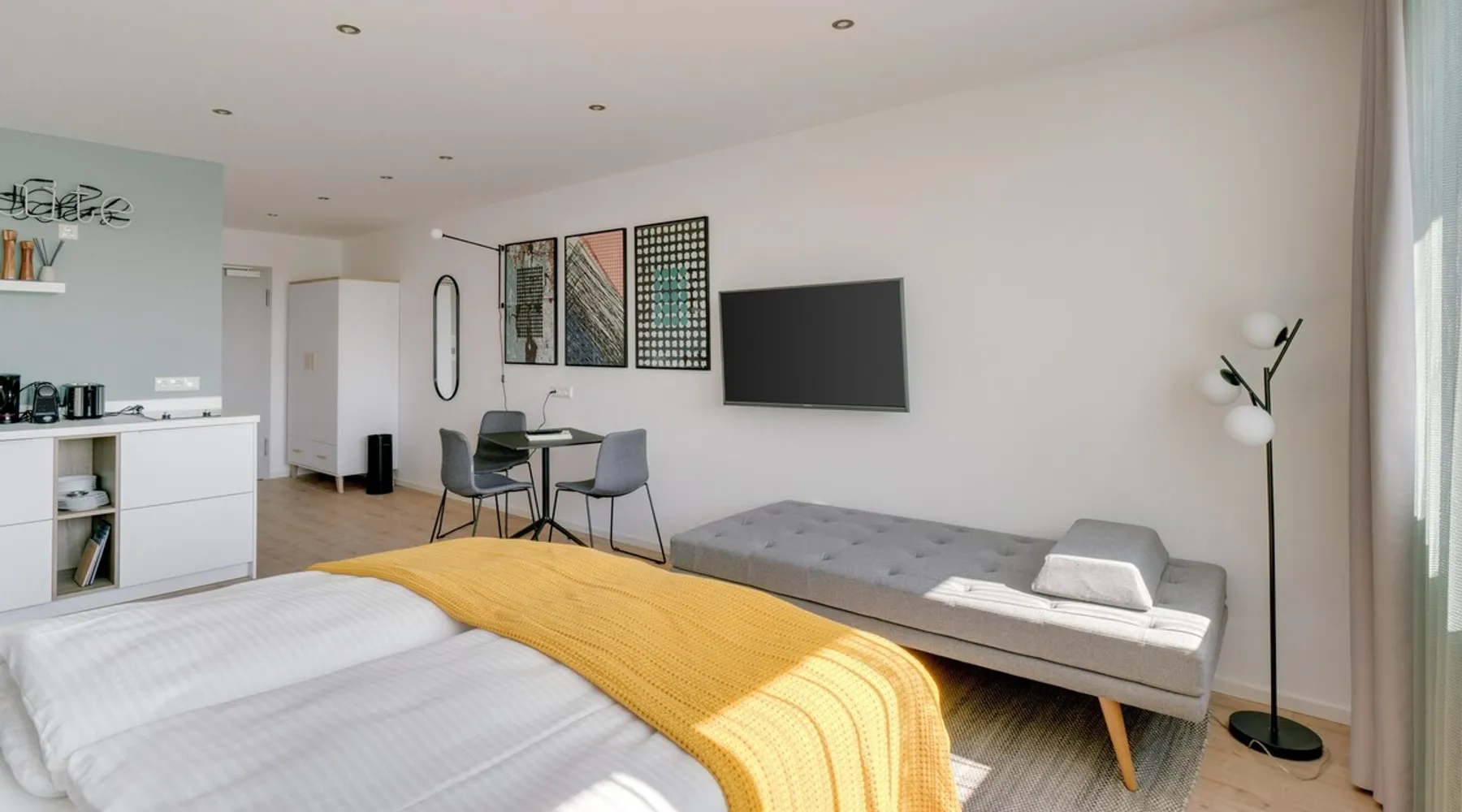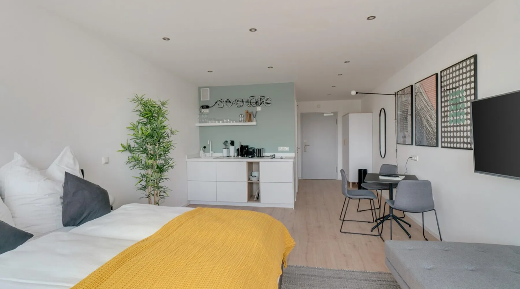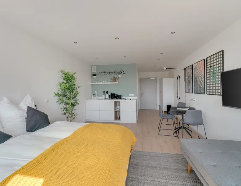 At limehome, we believe that everyone deserves a better place while traveling. A place to look forward to return to. A place designed to stay®. Whether you are looking for a home away from home or a quiet place to work - our apartments feature high-quality fittings including a premium hotel bed for restful nights & suite dreams. Our digital-enabled guest journey without a physical reception and staff on-site makes your stay more convenient. The space Our 30-32 sqm Suites L with seating area have been furnished to our highest modern standards. The Suites feature a fully equipped kitchen, a comfortable box-spring bed (1.60 m) including a modern smart TV and a trendy sofa, as well as a private bathroom with shower, so you can feel at home. In case of dirty laundry, you have the possibility to wash your clothes in the shared laundry room for a small fee. Therefore your apartment offers everything you need for a stay with us in just one room. Please note: We have several Suites at this property, each designed to give you a comfortable place to stay - while our style & amenities are consistent, the layout, and design may vary. Guest access Your apartment will be accessible 24/7. Other things to note Once your reservation is confirmed, a link with the steps for the online check-in is sent. Our online check-in process requires guests to fill out their personal information and upload a government issued ID before arriving at the property. Guests will receive their personal access code after the online check-in is completed.