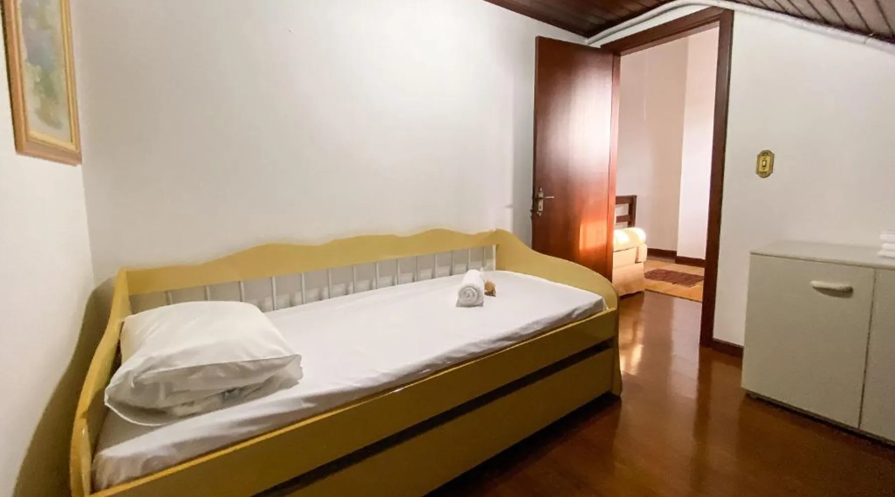 Comfortable Accommodations: LOCAR-IN GRAMADO Residencial Lago Negro in Gramado offers a three-bedroom apartment with two bathrooms. The property features a garden and free WiFi, ensuring a pleasant stay. Modern Amenities: The apartment includes air-conditioning, a balcony, and a fully equipped kitchen with a coffee machine, refrigerator, microwave, oven, stovetop, toaster, and TV. Additional amenities include a fireplace, barbecue, hairdryer, dining area, and wardrobe. Convenient Location: Located 5.6 mi from Canela Airport, the apartment is a 12-minute walk from Gramado Bus Station and less than 0.6 mi from Joaquina Rita Bier Lake. Nearby attractions include Black Lake Gramado (2297 feet), Saint Peter's Church (1.1 mi), and Festivals Palace (1.2 mi). This apartment's standout feature is the fireplace. Featuring a private entrance, this air-conditioned apartment is consisted of of 3 bedrooms and 2 bathrooms with a hairdryer. Guests will find a stovetop, a refrigerator, kitchenware and an oven in the fully equipped kitchen. The apartment also has a barbecue. This apartment features a coffee machine, a dining area, a TV and a balcony. The unit offers 4 beds.