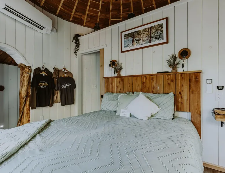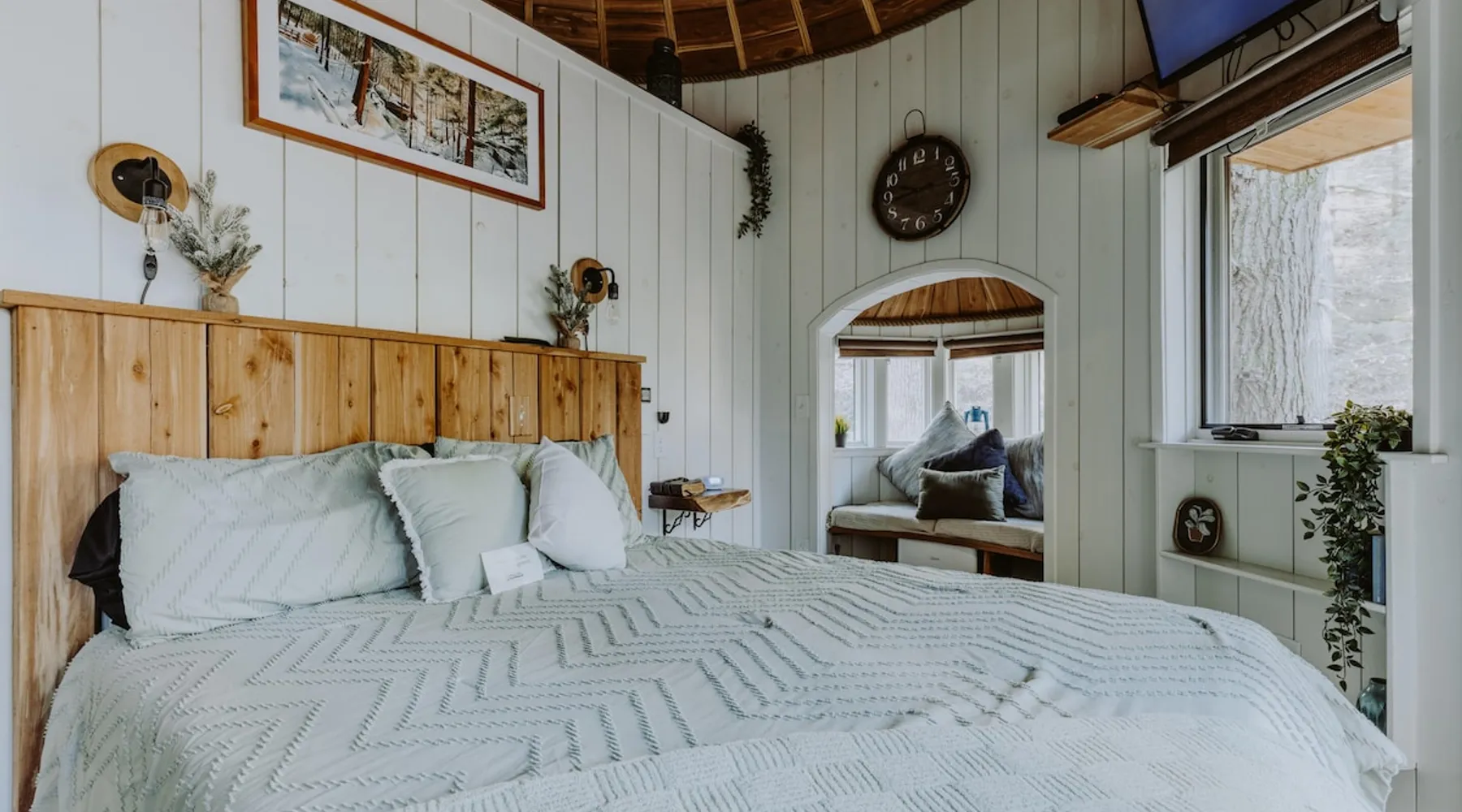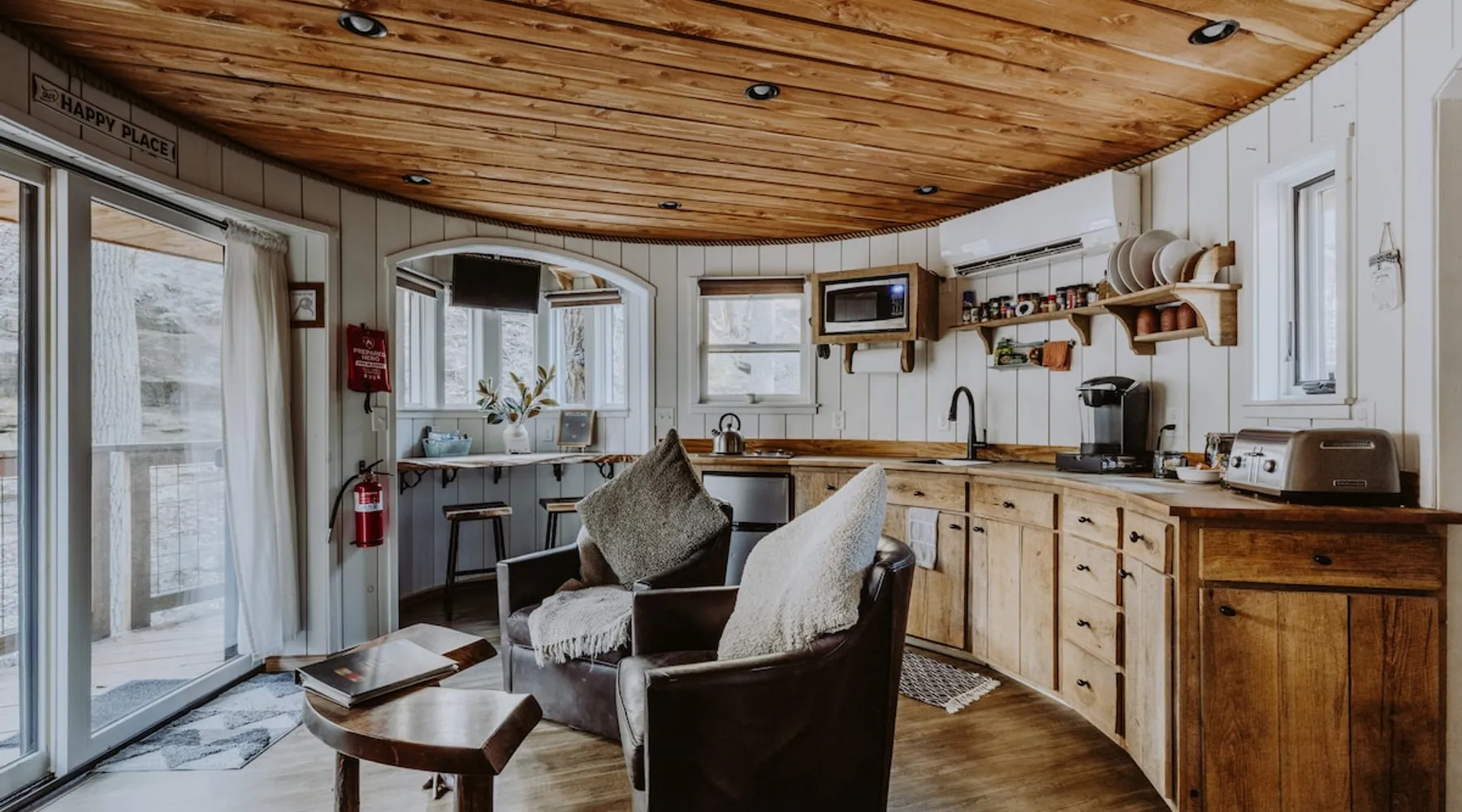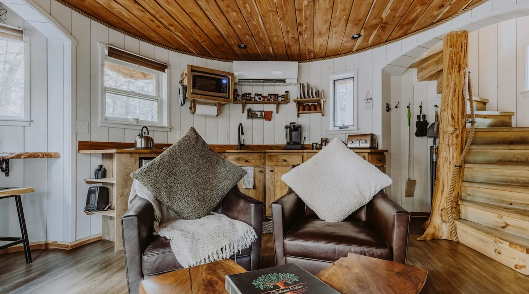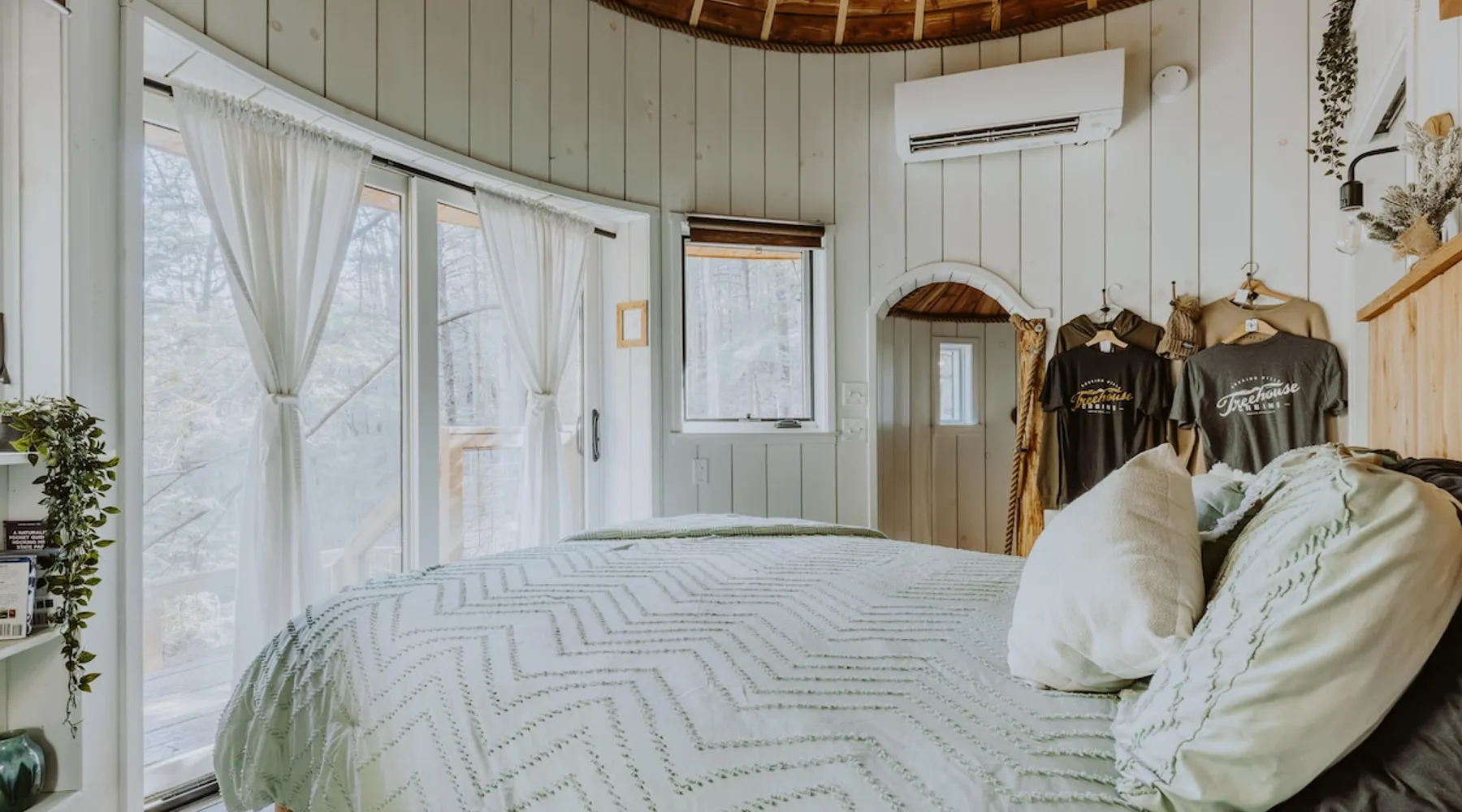 Authentic treehouse cabins in the scenic Hocking Hills region in SE Ohio. Located on 15 private acres, minutes from Hocking Hills State Park and popular attractions. If you're looking for a unique and memorable reTREET for your family, then look no further than our original treehouse, The Hemlock. The space This Treehouse features incredible views (our best yet!), with our first infinity view en suite. We have designed the upper deck so there are unobstructed views of the treetops from the comfort of the bed. The Hemlock is the most secluded of our treehouses with the most commanding views. Over 70 steps to reach your private reTREEt. The Hemlock is the ultimate treetop getaway for two. Sleeps: sleeps up to two one-bedroom (Queen),linens, and pillows Bath: indoor bathroom and seasonal outdoor shower, towels, shampoo, conditioner, soap, hairdryer Kitchenette: dishes, glasses, and utensils for two cookware, mini-fridge, electric 2-burner cooktop, microwave, Keurig, kettle, and French Press, toaster, Crock-Pot, electric griddle, basic spices, starter supply of K-cups, and ground coffee A/C and Heat WiFi, TV, DVD player, variety of DVDs, board games, books, electric fireplace Outside: charcoal grill, grill tools, charcoal, lighter fluid, lighter, fire pit set with extra wood, outdoor seating areas, wood-fired hot tub, additional firewood available onsite for purchase Pet-Friendly - with an additional fee please include them in the optional extras. Pet bed, waste bags, pet towel, pet bowl. Guest access Check-in is between 4:00 pm - 6:00 pm. However, we ask that you arrive by 5:30 pm so that we have time to properly check you in and show you how to use the wood-fired hot tub. Without being adequately checked in, you will not be able to use the hot tub wood stove. Please call to make alternate check-in arrangements if you can not check-in before 6:00 pm.* Guests will need to provide a credit card at check-in.