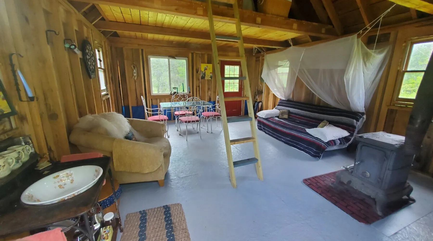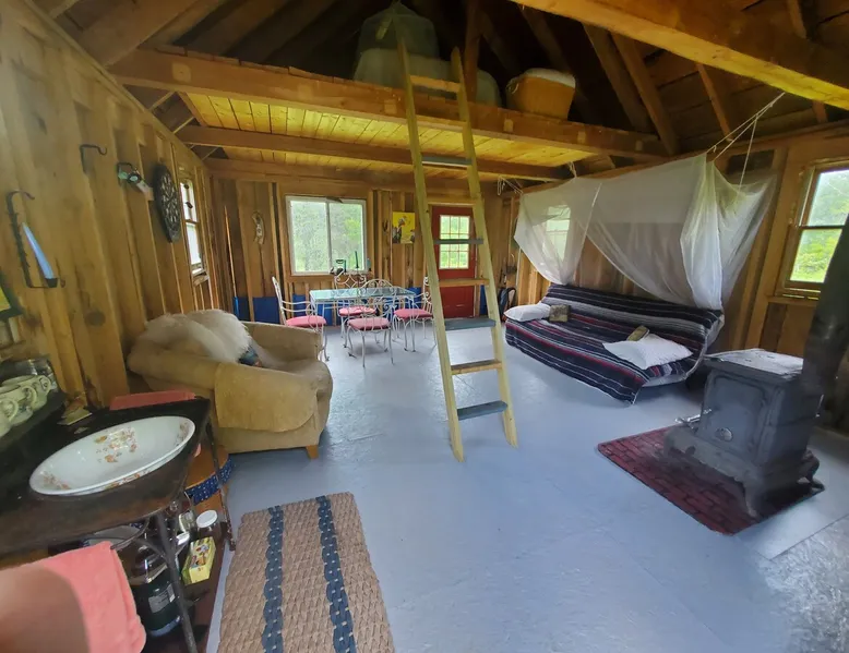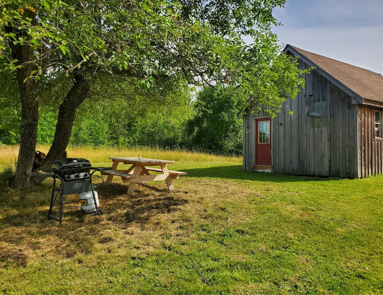 Centrally located to Acadia National Park and Downeast Maine. Close yet far enough away from the touristy areas. Stay in a quaint storybook cabin next to a rushing brook surrounded by beautiful trees. Investigate the remains of an old wood mill on site. Parking available close to the house, then take a short walk through a large field to this magical cabin. While visiting, stroll over to Graham Lake where fishing, kayaking and swimming are popular pastimes. The space A lofted queen bed is accessed by a sturdy wooden ladder. Sleep comfortably 100% cotton sheets, and a warm quilt for cooler nights. Downstairs, a couch converts to a full size bed, and an extra cot available if needed. A wood stove and dining area is complete with cast iron cookware. Outside, a gas grill for your use is available. A private firepit next to the brook is a great place to spend your evenings gazing up at the stars. This is a rustic experience. Composting toilet, water tank, and old fashion wash basin in cabin. No electricity, no plumbing, no running water except a farm sink and hose at the house and the brook for bathing and cleaning. Port a potty available during Summer and Fall months near house. Wifi available close to the house, ask for password if needed. Cell serviced is very good. Park in a large lot near our house and walk approximately 450 feet on flat ground to peaceful and private Graham Cracker Cabin! Guest access Almost 9 acres of property, the length of the brook, and Graham Lake to explore. An additional communal fire pit near the old saw mill area, a farm sink, solar outdoor shower, and a port-a-potty to be shared with other potential campsite gurests. Other things to note Please realize that this is a rustic experience. Cooking on a gas grill, wood stove or campfire. Using the brook, water jugs, or outside farm sink or shower to wash up. Using a composting toilet or port-a-potty. No electric, no plumbing. You will need a cooler for food, and bottled drinking water. We supply a large tank of water as well. Bring fishing poles and tackle. You will have to carry everything to and from the cabin from the parking area which is about 450 feet away through a flat field. we have a cart you may use. There is a YMCA in Ellsworth for showers, if needed. Also, a shower house and laudry in Otter Creek just ouside of Acadia.