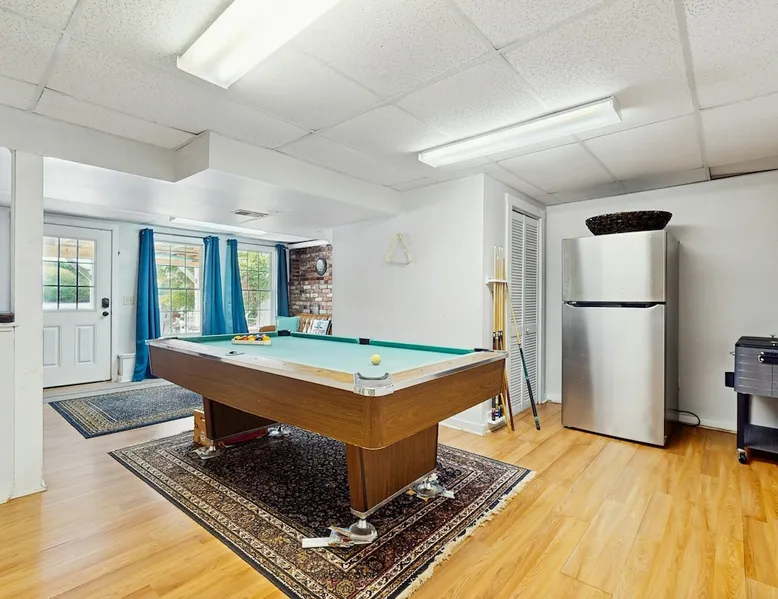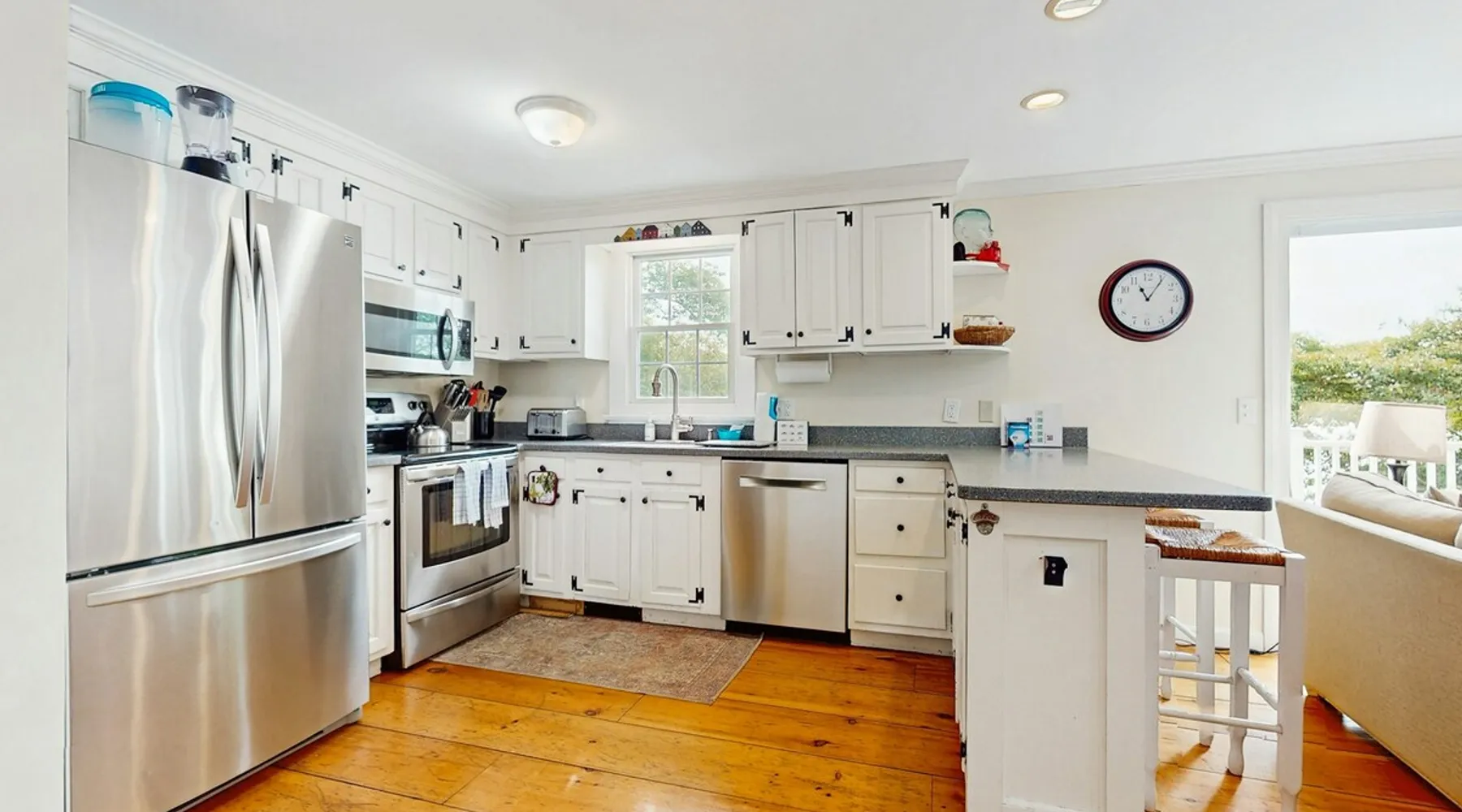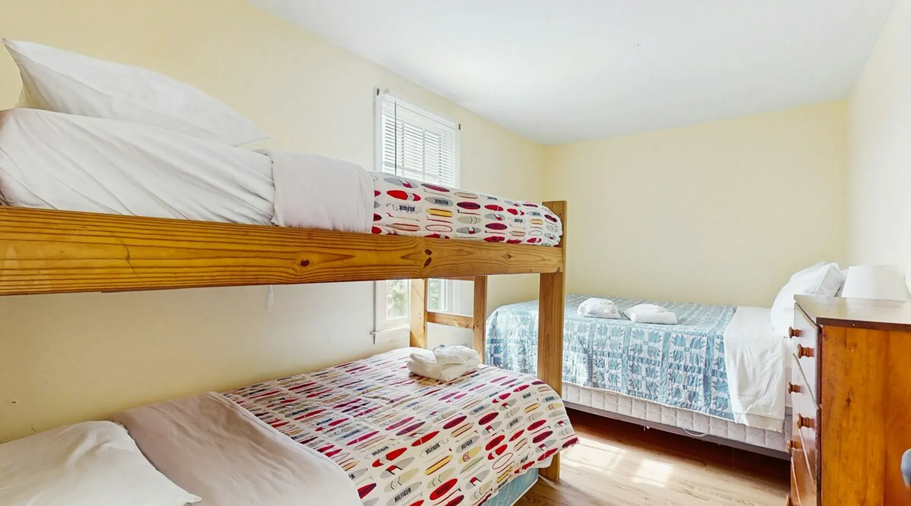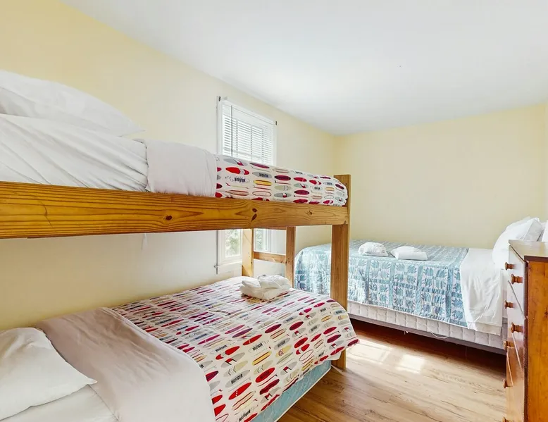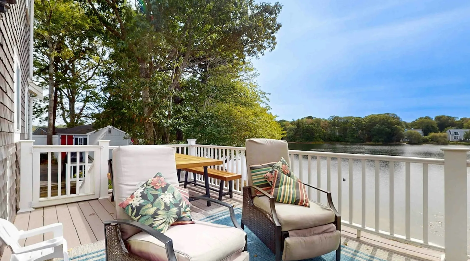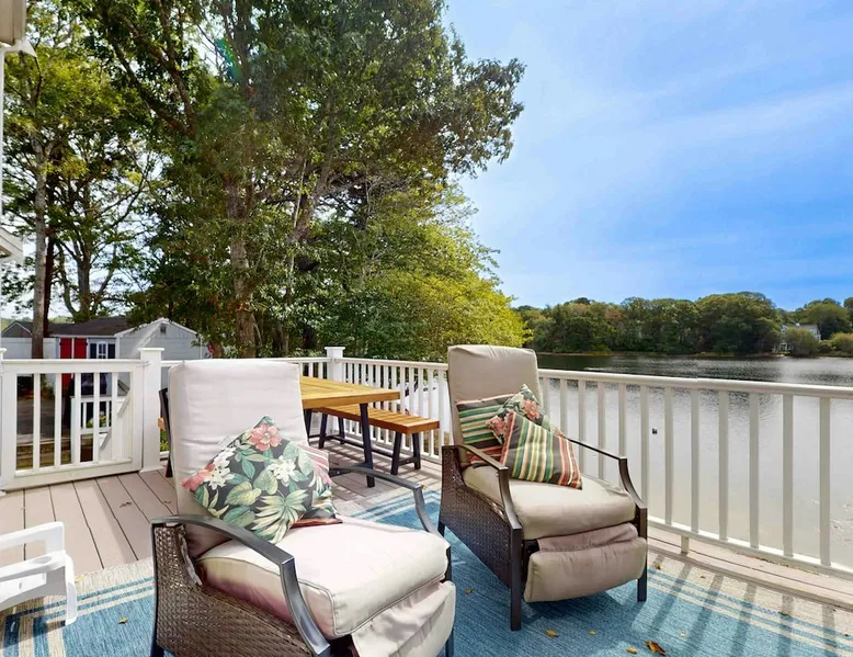 The space Long Pond Lookout This two-story 4BR/2BA abode in South Yarmouth offers a dreamy waterfront setting, with a private deck to enjoy the gorgeous views. A complimentary canoe and two kayaks make it easy to hit the water when the mood strikes. Indoors, you’ll find a stylish living area, a cozy den, and a game room with a pool table. This home is a short drive from local shops and eateries, family attractions, and the shores of West Dennis Beach. Comfort awaits in a main living area, appointed with a gas fireplace and 48' flat-screen TV. Enjoy views of the water as you sprawl out on comfortable furnishings. An inviting wood-paneled den also offers lovely water views. This intimate space has plenty of comfy seating, a desk area, a 42” wall-mounted TV, and an electric fireplace. Downstairs, a game room includes a pool table, wall-mounted TV, and casual seating. Flex your culinary muscles in the contemporary kitchen. There’s ample counter space for meal preparation and a full suite of stainless steel appliances. Dish up meals in the elegant dining area, where a wooden table seats everyone. On the entry level, the primary bedroom boasts a queen bed, armchair, and TV. The entry-level bathroom has a walk-in shower. The remaining bedrooms are all upstairs. A family-friendly second bedroom offers a queen bed and crib, and the third bedroom has a pair of twin beds. The fourth bedroom has a twin bed and a separate twin-over-twin bunk bed. An upstairs bathroom features a tub/shower combination. A private deck offers a gorgeous waterfront setting. With a picnic table, chairs, and side tables, it’s a lovely spot for morning coffee or alfresco dining. Roast s'mores around the propane firepit in the evenings. There’s also a lower-level deck with outdoor seating, an outdoor shower, gas grill, and charcoal grill. Complimentary Wi-Fi, central air-conditioning, cable TV, and a washer/dryer are provided. Enjoy access to a complimentary canoe and two kayaks. Long Pond is right in your backyard. Hit the water in the complimentary boat, canoe, and kayaks, or hop in for a refreshing swim! Shops and eateries are one mile away in downtown, or make a quick drive to family attractions. Head 1.6 miles to Skull Island at Bass River Sports World for go-karts and mini-golf, or travel 1.3 miles to bowling and arcades at Ryan Family Amusements. West Dennis Beach is less than three miles away for sun-soaked days on the soft sand. Things to Know Check-in time: 4:00 PMCheck-out time: 10:00 AMAll guests shall abide by Vacasa's good neighbor policy and shall not engage in illegal activity. Quiet hours are from 10:00 PM to 8:00 AMNo smoking is permitted anywhere on the premises. No dog(s) are welcome in this home. No other animals are allowed without specific Vacasa approval. Parking notes: There is free parking available for 4 vehicles. Please note: this home resides in a noise-sensitive area and the owners participate in our Good Neighbor protection program. Our smart home technology will alert our team if excessive decibel or occupancy levels are detected, allowing us to reach out directly with a reminder of maximun occupancy and quiet hours. This technology is privacy compliant, and only monitors the presence of decibels and devices -not any personal conversation or information. Thank you for supporting our efforts to be good neighbors! Damage waiver: The total cost of your reservation for this Property includes a damage waiver fee which covers you for up to $3,000 of accidental damage to the Property or its contents (such as furniture, fixtures, and appliances) as long as you report the incident to the host prior to checking out. More information can be found from the "Additional rules" on the checkout page. Due to local laws or HOA requirements, guests must be at least 25 years of age to book. Guests under 25 must be accompanied by a parent or legal guardian for the duration of the reservation.