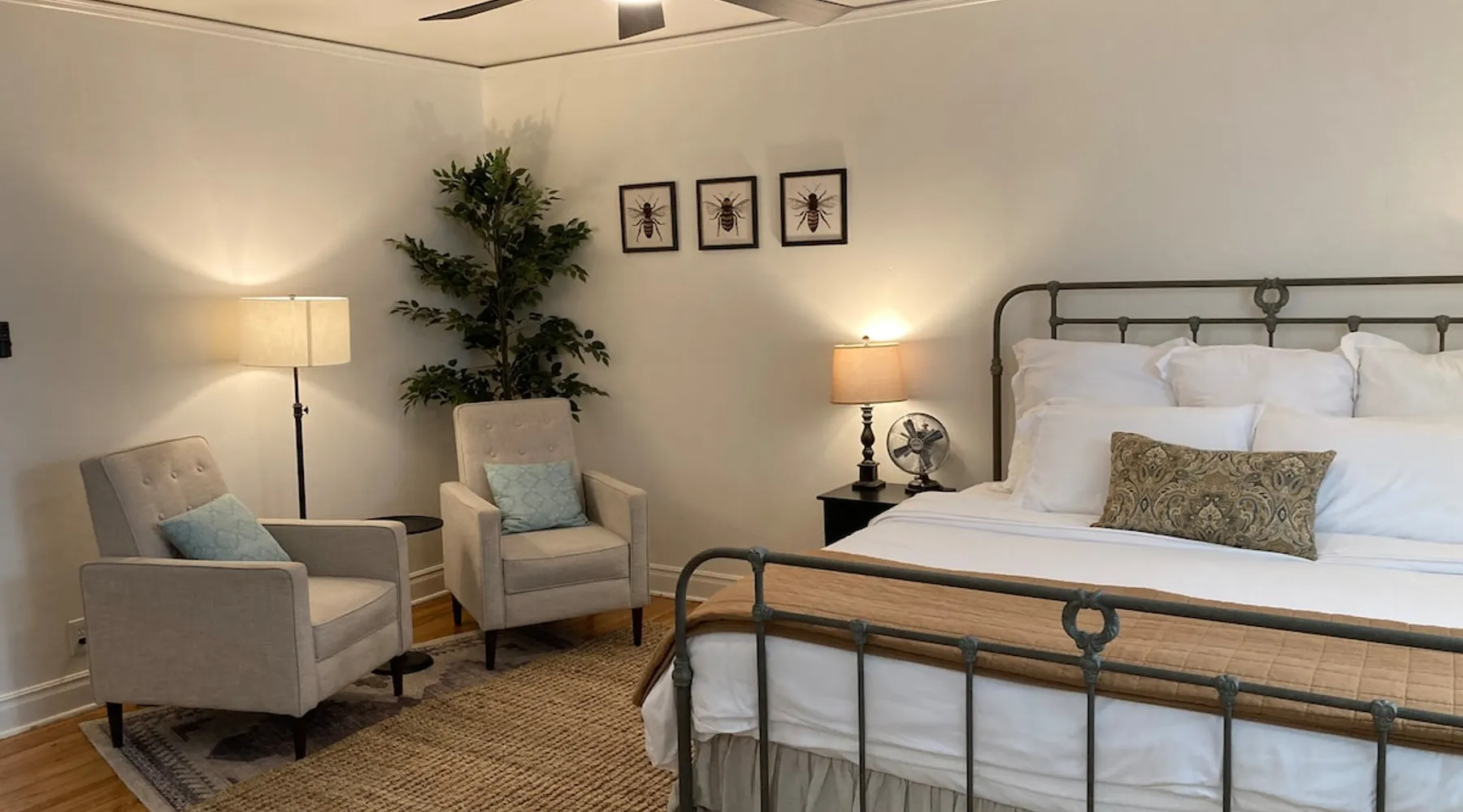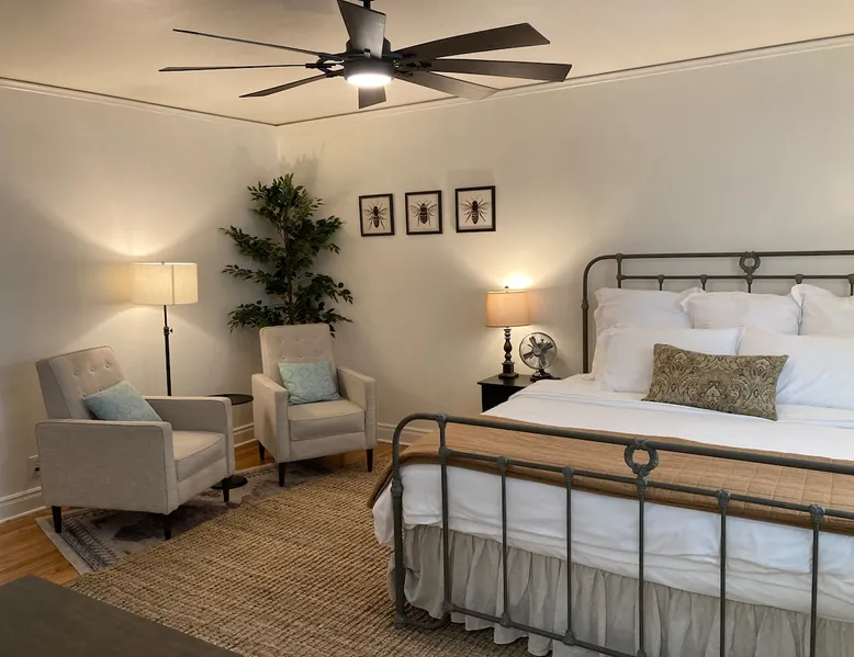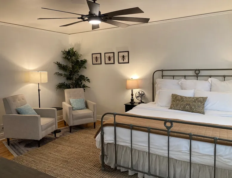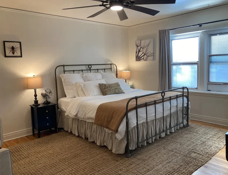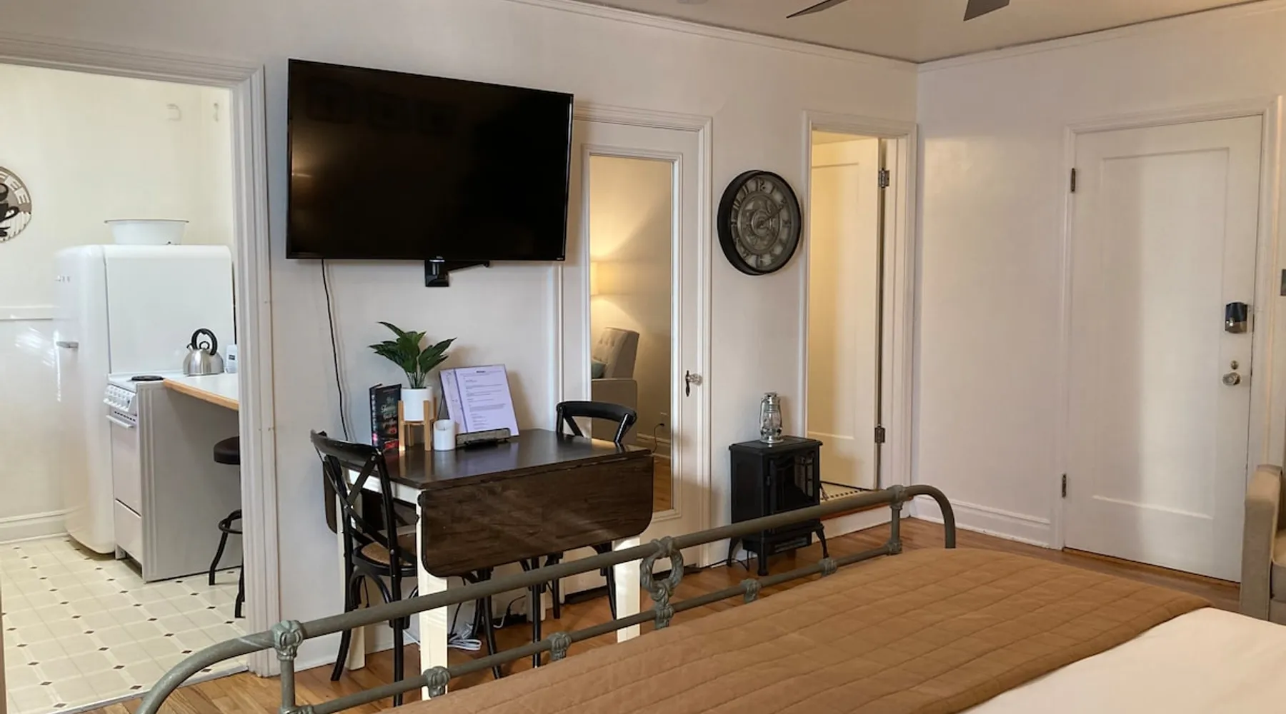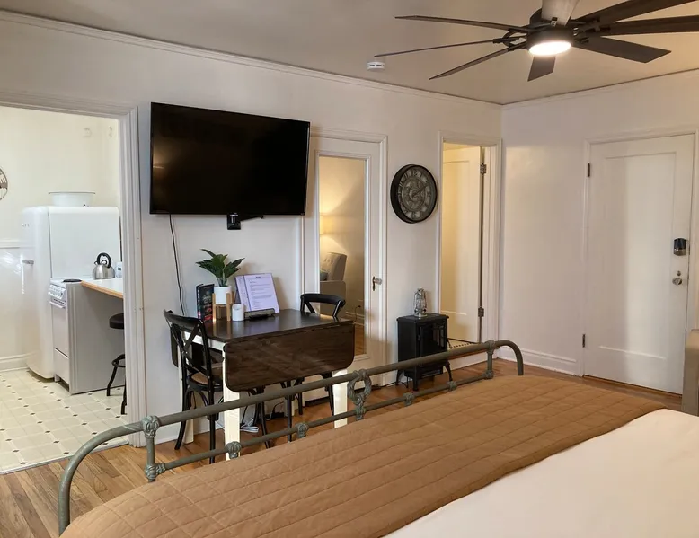Enjoy easy access to everything from this perfectly located home base. Located on the main floor of our apartment building. This studio apartment has a king size bed, two reclining chairs, dining area, full-size bath and fully equipped kitchen. The apartment is just over 4 blocks from downtown and 2 blocks away from campus. The space This studio apartment is located on the main floor of the apartment building. So there is a half a flight of stairs to get to it. As for noise, the door to it is in the middle of the hallway, so you may hear other guests and tenants passing by. There is an apartment above it, with the hardwood floors, you do hear the tenants above, walking around. Parking for the apartment is all street parking around the residential area. There’s a few areas that require permits during the week, so I have a map in the apartment to let you know where these spaces are.