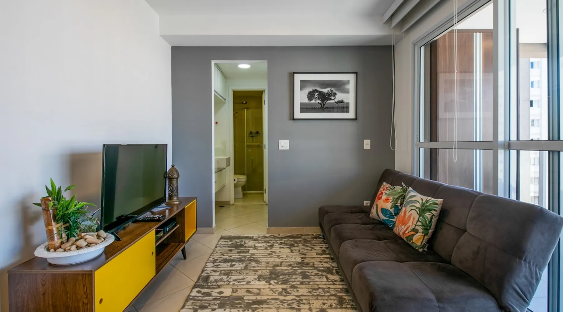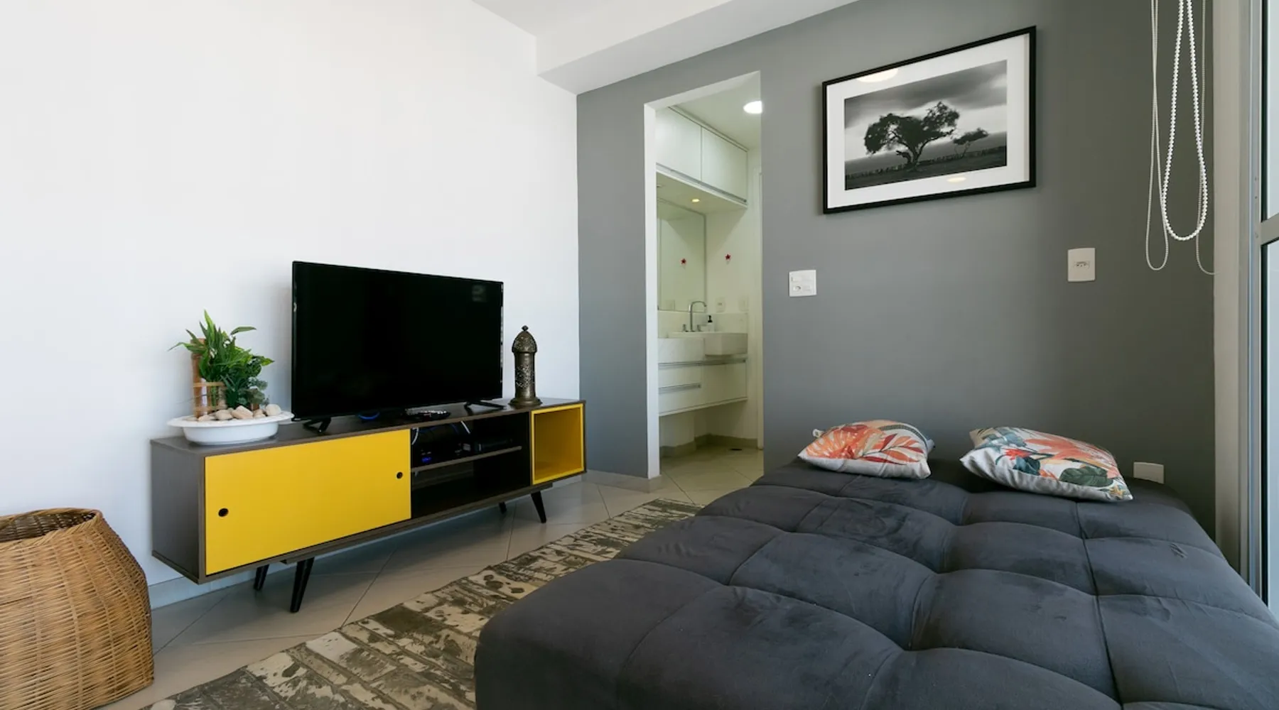 Welcome to your modern 1-bedroom apartment in Consolação (Rua Augusta, 810). ~50 m², sleeps 4. Linens & towels included. Sofa-bed in living room Equipped kitchen (fridge, oven, microwave, freezer, utensils, coffee maker, toaster) Washer/dryer Air-conditioning Fast WiFi (100 Mb/s) Private balcony 32" Smart TV + basic cable Nearby: Paulista Ave 10–15 min walk, Frei Caneca Mall 7 min, MASP 1.1 km, Parque Augusta 2 min. Metro: Yellow 7 min, Green 11 min. Easy bus, taxi & ride-share. The space - Well located 1 bdr apt., at Paulista Ave. near 2 metro lines ( Yellow 7 min. walk) & (Green 11 min. walk) - Modern Building in a great location with 24h security & Coworking space - Room keeping on demand - 100Mb/sec WiFi & Air-Con - Washer/Dryer in the apt. - Spacious 550 sqf. + terrace - Fully equipped open plan kitchen - Small Garden View - 32" Smart TV (We do not provide login access to streaming platforms) - Basic cable - Coffee machine - Carpark w/ direct access - Swimming pool - Gym, Fitness Center, Sauna Guest access Totally exclusive 1 bedroom apartment with balcony. Guest can access shared building facilities: FREE car parking on premises. Swimming pool Gym/fitness Business center Meeting room (Based on availability - please schedule ahead) Other things to note Free secure garage parking Check-in available 24 hours Gym & pool require appointment Extra bed (floor mattress) free of charge Baby crib available on request Pet fee: R$ 125 one-time per stay Early check-in / Late check-out: upon request, subject to availability and possible fee Important: Photo ID of all guests must be submitted in advance for building access. For garage use, license plate, make & color of vehicle must be provided.