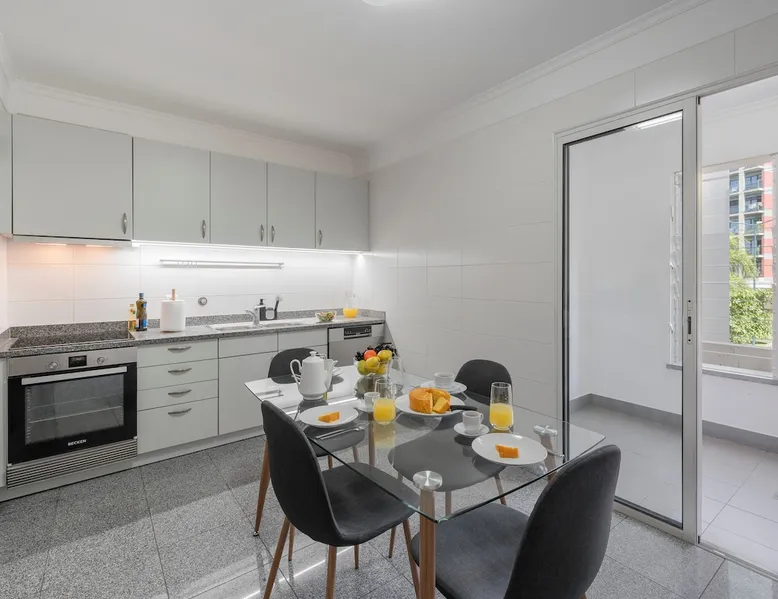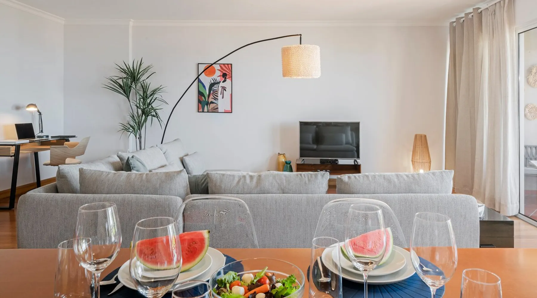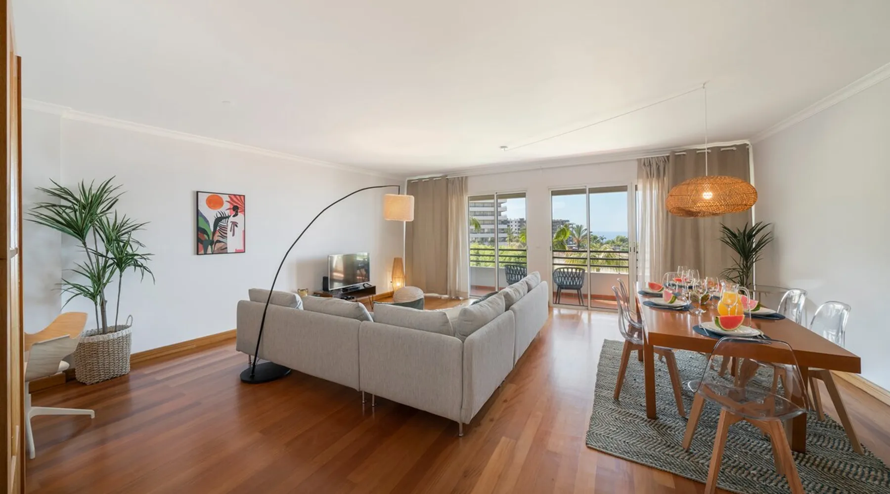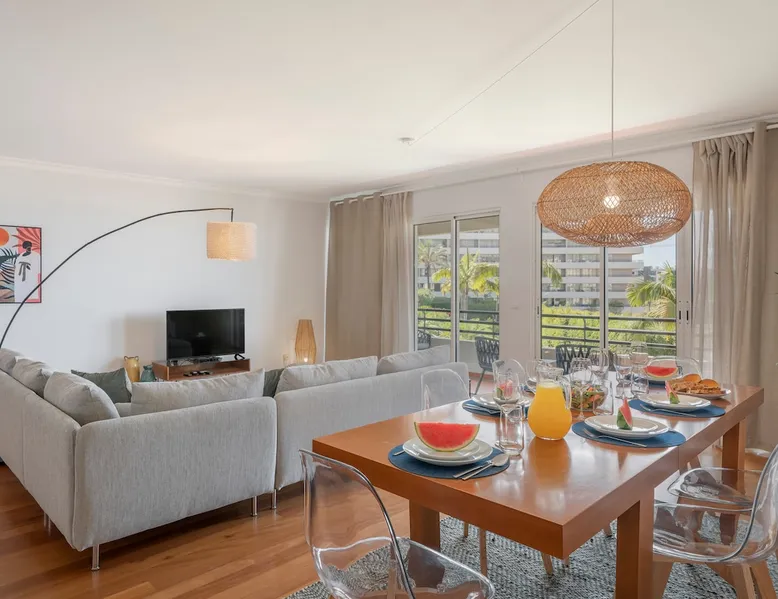 Comfortable city apartment, inserted in a familiar condominium, with swimming pool, tennis court, gardens and playground, integrated in a privileged area, just a few minutes from the beaches of the coastal area of Funchal. The space Contemporary style apartment, elegant and comfortable located on the 1st floor of a familiar condominium. This property has three bedrooms, with excellent natural light and a relaxing atmosphere: a suite with double bed, closet and private bathroom with bathtub; two bedrooms with closet, one of them with two single beds and the other with double bed. Large living room with dining table, a small work area, and an inviting sitting area. The access to the balcony is through the living room. In this exterior space, besides a privileged view over the horizon and the building's gardens, you can enjoy leisure moments, read a book or have a coffee. The property also has a guest toilet, an equipped kitchen with dining area and a separate laundry room. During the stay in this apartment is allowed to use the swimming pool, tennis court, gardens and playground common to the condominium. Maximum capacity for 6 people. Wi-Fi available in all areas of the apartment. Elevator available in the building. Private parking for two cars. AREA The property is located in Rua Velha da Ajuda, Monumental Palace II building, consolidated area with attached trade and services, just few minutes from Praia Formosa. This gated community is inserted in a quiet and safe area, close to the Funchal city centre and the promenade that connects Funchal to Câmara de Lobos. In this area you will find the Forum Madeira shopping center, several restaurants, bars, pastry shops, pharmacies and other services. If you choose to go to the Funchal city centre know that there are several points of tourist interest and information on cultural activities, radical activities, activities linked to nature, whatever the purpose of the visit to Madeira Island. Construction works are underway in the vicinity of the property, so occasional daytime noise may be observed. GETTING AROUND The best option to get to the property will be the transfer. Ask us to book one with our local partners. It is cheaper than the taxis you find at the airport. If you rent a car, any navigation app can easily find the address. ACCESS TO PROPERTY You have access to all areas of the property. INTERACTION We are always available to help or answer questions. We do our best to reply all requests. We also have an app for guests with all the important information about the property and other useful information for your stay. OTHER OBSERVATIONS - According to Portuguese law, all guests are required to present a valid ID. (passport or identity card). - Check-in hour must be scheduled in advance. If it is not scheduled within a maximum of 48 hours before, guests will be subject to the availability of our team. - All bed linen and towels are provided. We can also put a baby cot, a high chair and a baby bath if needed, but you should request. There are a first aid kit, extinguishers and fire blanket in the property. ATTENTION -Please be advised that a Tourist Fee will be charged to all persons staying overnight in the municipality of Funchal. Thus, all customers staying in tourist resorts and/or accommodation establishments, aged 13 or over, will be charged €2.00 per person/night, up to a maximum of 7 nights and a maximum of €14.00 per person/stay. When you arrive, you will receive a link to pay this municipal tax. -The reservation of stay for this property requires a deposit (of 150 euros) in advance. RULES We want you to feel at home. We do not ask for more than respect for neighbours and care for the property, in addition to not smoking inside the house. Registration Details 129192/AL