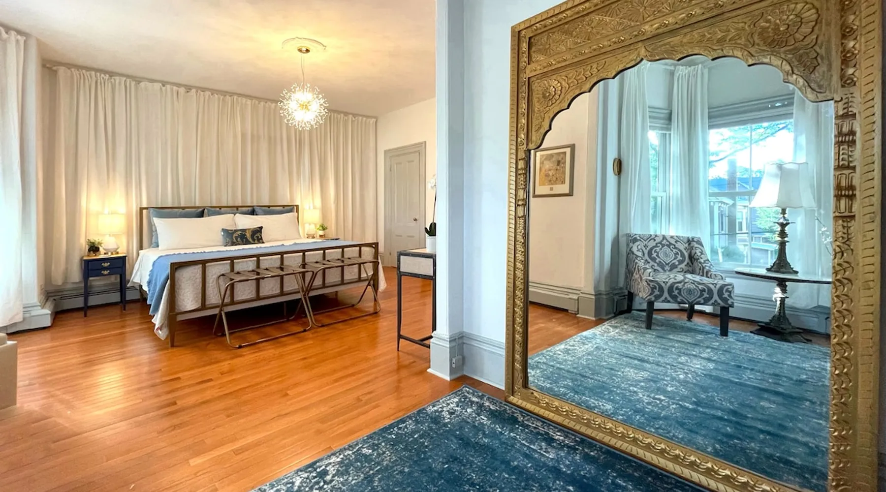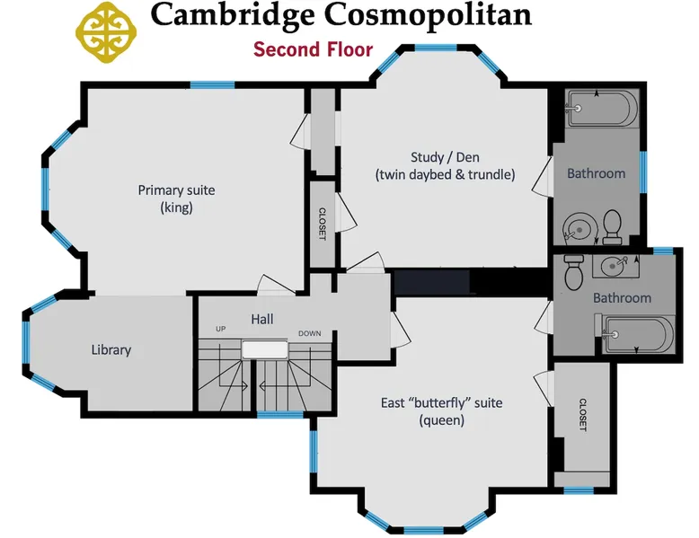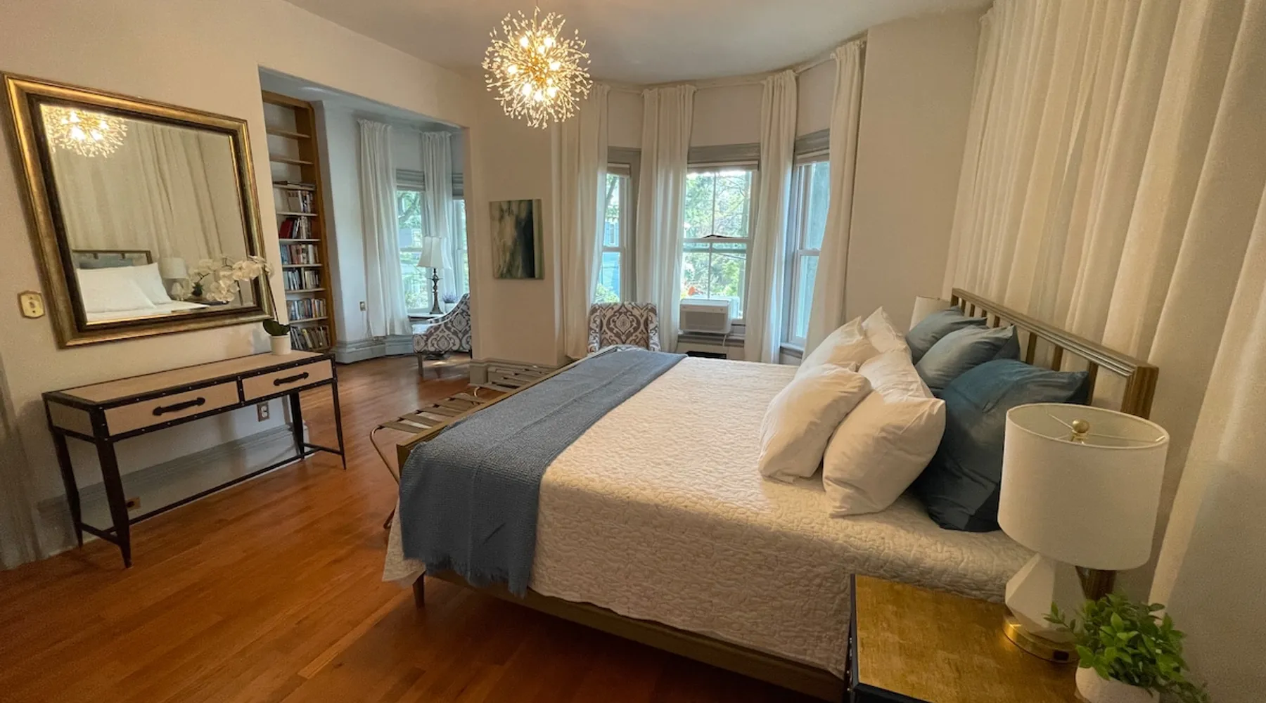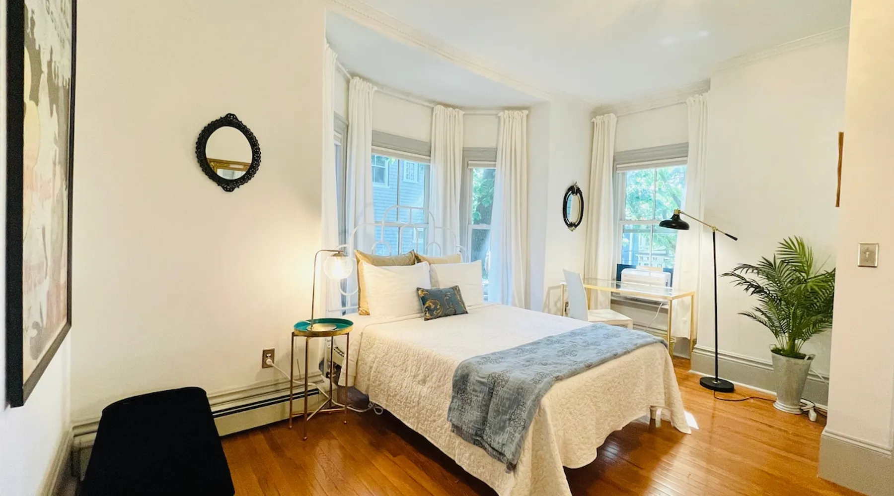 Experience the best of Boston: a luxurious blend of historic elegance & modern convenience in the spacious original wing of a Victorian mansion. The Cambridge Cosmopolitan is ideally located on a lovely side street a short walk to Harvard; red line T, restaurants, & shops; easy access to Kendall/MIT & Boston. Visit, work, or play with ample space to gather as a group or relax in privacy in expansive bedrooms & grand living rooms. Free parking, no smoking/vaping. The space Immerse yourself in the glamour of la Belle Époque (the "Beautiful Age") in this gracious historic home, thoughtfully updated with modern conveniences, comfortable furnishings, and reflecting a century of design. Inspired by our own travels to wonderful places around the world, we aim to make the “Cambridge Cosmo” luxurious, memorable, and welcoming. Along with grand living areas and an expansive and well-equipped chef’s kitchen, the Cosmo's 4+ spacious bedrooms include two king rooms, a queen room, a room with two single (twin) beds, and a study with a daybed and trundle, as well as 3.5 bathrooms. Ideal for visiting professionals, academics, colleagues, and families. We will consider hosting small events such as small dinner parties, retreats, or mini conferences: please note that these events require prior permission from the hosts. THE ROOMS: 1st floor: living rooms 10 foot ceilings: historic entry hall; elegant living room with 55" smart tv; grand dining room with mahogany table seating 10; large eat-in kitchen with induction stove, quartz counters, coffee bar, bay window and breakfast table; powder room. 2nd floor: two very large en suite bedrooms + bonus study / den PRIMARY: palatial king suite with a library bay; adjoining study / den with desk, 55" smart tv, twin daybed and trundle; and full bathroom EAST: gracious queen suite with a walk in closet with stained glass window, whimsical “butterfly” desk, and full bathroom 3rd floor: two spacious bedrooms form a third suite sharing a full bathroom (shower only, no tub) SOUTH: stately king bedroom with a desk and delightful dressing room NORTH: charming twin bedroom with two single beds and a desk Additional smaller TVs suitable for bedrooms / working are available if needed. The kitchen is exceptionally well-equipped, with Viking cookware, Henckels knives, roasting pan, rice cooker, induction wok, blender, food processor, basic baking supplies, Nespresso, Keurig, French press, drip coffee maker with grinder, electric kettle, toaster, and generous supplies of glassware, dinnerware, and cutlery. We aim to provide many items you may need, and are a short walk (4 blocks) to two supermarkets. See “amenities” below for more detail. Guest access The Cambridge Cosmopolitan is on the first, second, and third floor of the original wing of the mansion. (The basement is part of your hosts’ space). Parking is available if requested in advance of your stay. Guests are welcome to use the front garden which is visible from the street; please respect your hosts’ privacy and do not enter areas reserved for hosts’ use (in the back & down the driveway). Laundry is located in the basement. Guests are welcome to use the laundry - please contact us for permission to enter our space. Standard check in time is 4 pm. Depending on the timing of your booking, same day reservations may require an additional 2 to 4 hour lead time to ensure the property is ready for check in. Note: This is a SMOKE-FREE property - absolutely no smoking or vaping allowed. Other things to note The Cambridge Cosmopolitan is a licensed short term rental, in compliance with local law + mandated fire & safety inspections. Welcome to our home! As required by Cambridge laws, your hosts live on the property and may be at home in the adjacent wing. The wings are self-contained, have separate entrances and are thoughtfully oriented to provide peace and privacy, giving a single family feel. Perfect location: Short walk to Harvard Yard, Lesley, Porter, Harvard Square; convenient for the Charles River, Kendall Square, MIT, Davis Square, Tufts, Boston hospitals, downtown Boston and more. Superb transportation access: red line T subway, commuter rail, bus, blue bikes, ZipCar, Mass Ave, usually very short waits for rideshares. Cambridge is great for car-free life (walk score 96); please let us know at the time of booking if you need parking. Accessibility, age, allergies: This historic home has steep stairs, high ceilings, an open stairwell, and upper windows overlooking lower roofs. It is not childproofed so is best suited to sensible people over 6 years old and is not ideal for people with limited mobility nor for risk takers of any age. We aim to provide an allergy-friendly home; due to our own health concerns we allow absolutely no smoking or vaping anywhere on the property or surrounding grounds and cannot accommodate animals. Safety and security: This property is actively monitored with a central alarm system, video doorbell, exterior security lights / cameras and security cameras in the hosts’ areas. For added security when the home is vacant, there is a plainly visible camera in the entry hall facing the front door. This is deactivated, completely blocked, and placed in a box during guest stays - a privacy cover (physical box) is provided to ensure guest privacy. House rules: Please review and sign our house rules in a timely manner. The guest making the reservation must review and sign the house rules during the fully refundable cancellation window. For insurance reasons, prior to check in, you must provide the host with the full names of all adult guests and the ages of any children, and all adult guests are required to sign a copy of the house rules. Check in will not be permitted if house rules have not been signed by all adult guests; host reserves the right to cancel your reservation (in line with our cancellation / refund policy) if you do not sign the house rules as required. Any issues must