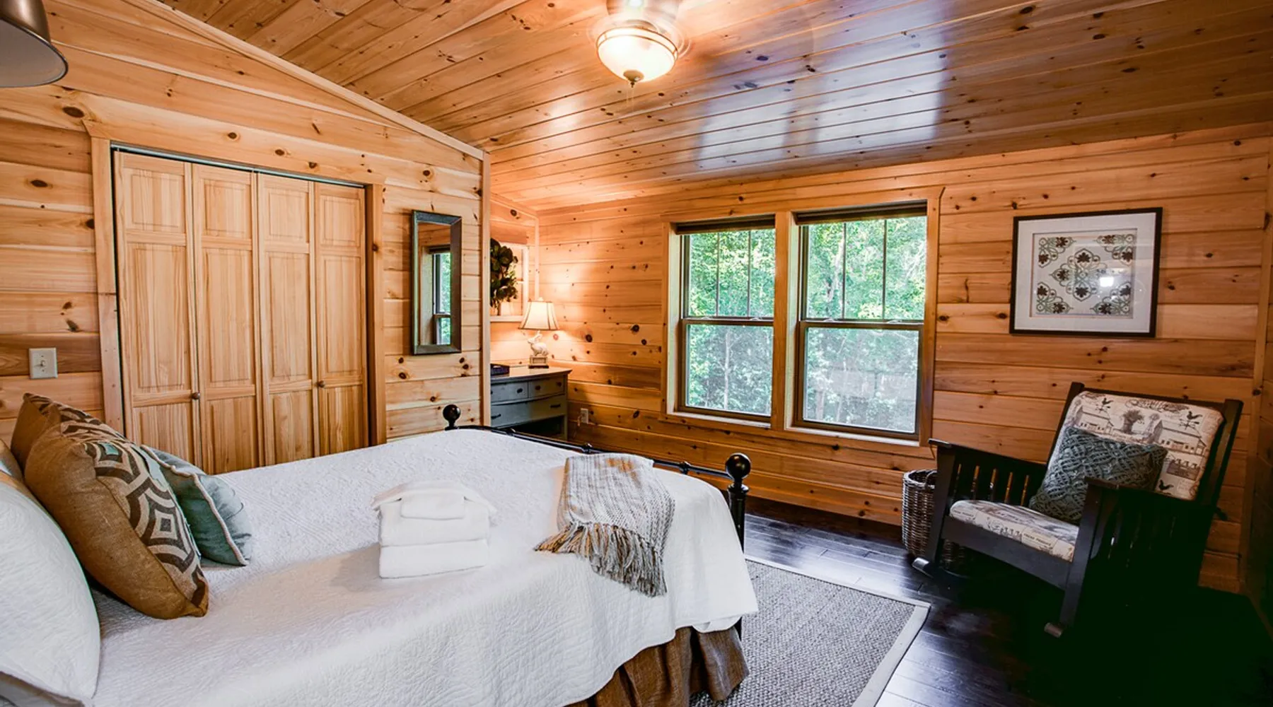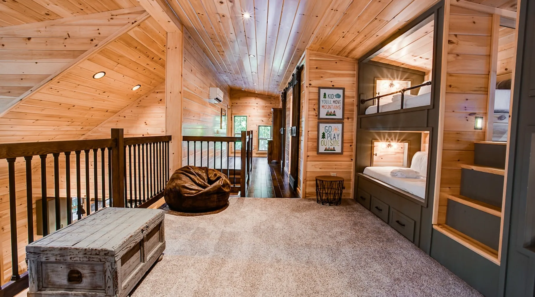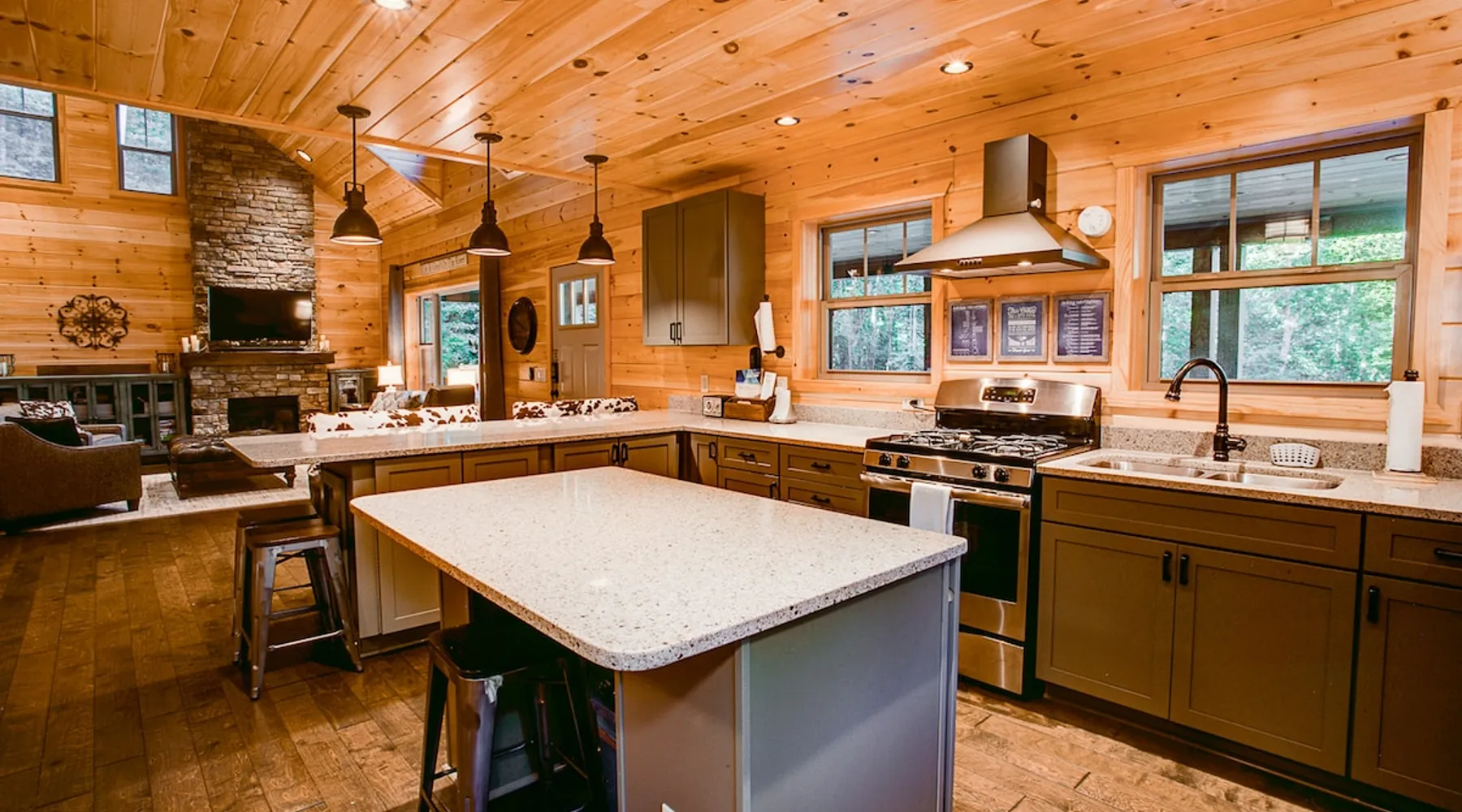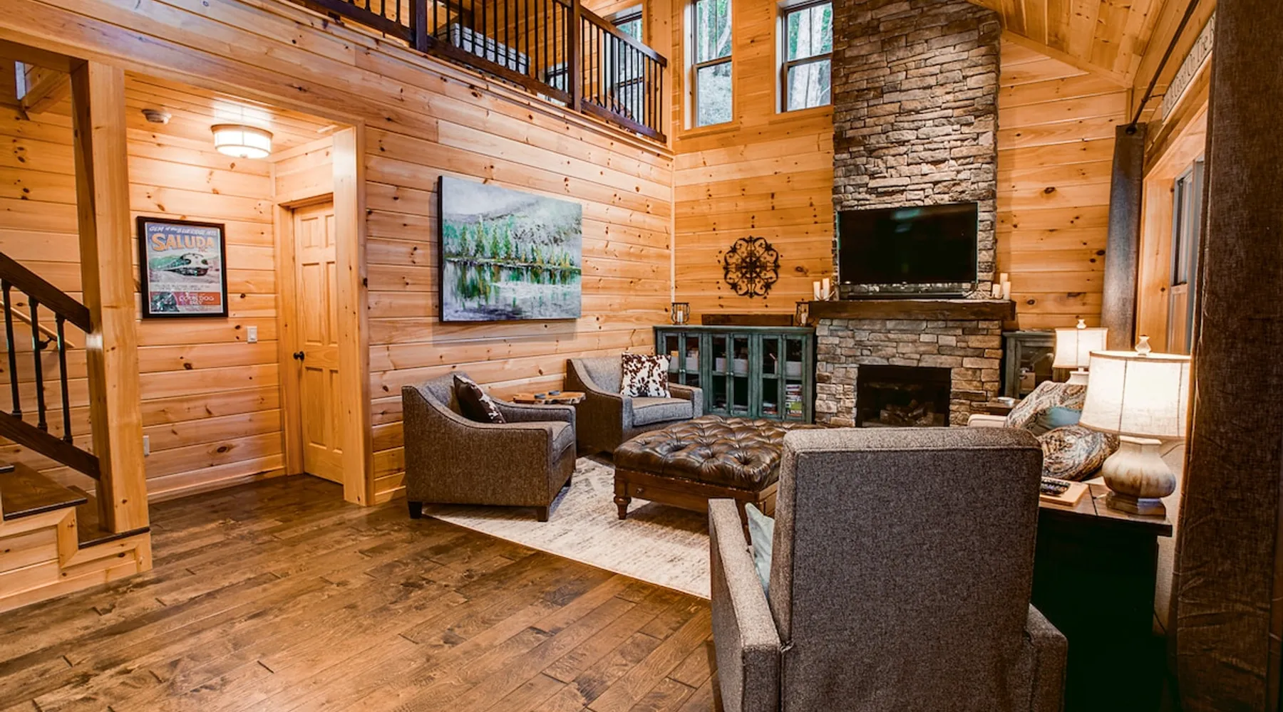 Come experience the feel of a true mountain cabin, and soak in the calm & grandeur that is life above & literally "on" the Green River. Set privately on a magnificent, spacious & secluded feeling mountain property with a new home & amazing amenities, FishTop Cabin offers a 3-bedroom, truly spectacular and unique timber themed cabin experience. The space Come experience the feel of a true mountain cabin, and soak in the calm & grandeur that is life above & literally "on" the Green River. Set privately on a magnificent, spacious & secluded feeling mountain property with a new home & amazing amenities, FishTop Cabin offers a 3-bedroom, truly spectacular and unique timber themed cabin experience. Relaxation achieved! This special cabin offers extraordinary, upscale craftsmanship, unique amenities, and custom details epitomizing relaxed luxury and majestic nature, highlighted by the backdrop of the Green River below, a wooded property, and your own private paradise with 150' of river frontage. Whether strolling down to the river, soaking in the hot tub, sipping coffee while watching the sun rise over the mountain, or relaxing at the fire-pit; guests will find peace and tranquility, coupled with invigoration and activities, in this incomparable mountain escape. Come experience you own private, and truly unique mountain river stay at FishTop Cabin. FishTop Cabin affords year round access, and is great for groups of any and all ages. The home is situated just outside of Saluda, affording complete privacy for everyone to relax & enjoy the feel of the WNC mountains. You are situated on property just above the Green River. Fishtop Cabin is also equipped with a whole house backup generator. It powers everything (including the hot tub.) Perfect for those worried about being snowed in....or those that want to be snowed in! Get ready to be “wowed” by this newly constructed gem, situated on the Green River, affording amazing privacy. With soaring vistas, high ceilings, vaulted spaces, stone/tile and hardwood floors, you will immediately feel at home in your own private retreat. (That is of course if you can tear yourself away from the wrap-a-round, covered deck & soaking in the spectacle of the Blue Ridge Mountains, & actually venture inside!) The great room, with plenty of space to unwind, and great kitchen, is where everyone will want to gather to enjoy their time together inside the house. But, if you need some “alone time”, there is plenty of space inside and out, to find your own serenity. There are outside porches, decks, and patios for ultimate outdoor relaxation; not to mention the hot tub, the fire-pit and other areas as well. You have a lower level TV & Game Room, and much more, for hours of enjoyment and relaxation for all ages. Kids love the outdoor areas, fire pit and of course the hot tub. (Adults of course LOVE the hot tub as well.) The expansive decks are just off the Kitchen/Great Room. All of these afford additional outdoor space to relax & unwind. Everyone enjoys the decks, you can pull up a chair and take in the "sound of silence", observe the night as it fills with stars, and watch the fireflies come out to play in your backyard. Take a seat and enjoy the sound of nature, the flowing river and the serenity in your own private paradise at the top of the world. FishTop affords 150’ of river frontage that is just a quick walk down the driveway and across the street. Rock stairs allow access right on the water. The dam release happens around 11:00 AM every morning, so you can walk over to the island before that time. The property owners actually own to the middle of the river, so this island is accessible for the kid's own private paradise. You are just minutes from America’s favorite scenic byway, The Blue Ridge Parkway, motorcycle touring, biking, hiking, white water rafting, rock climbing, kayaking, canoeing, zip lining, Segway tour…just about any outdoor activity! Or, take a quick ride to downtown Asheville to enjoy the first-rate restaurants, shopping, galleries, spas, and entertainment. We look forward to possibly booking your stay, should these accommodations work for you. We can reserve your stay with a credit card and send out a rental agreement to firm everything up when you are ready...but don't delay too long. Discover our Yonder Experience Program! Enjoy outdoor adventures, falconry, fly fishing, waterfall tours, and bike rentals. Indulge in in-home chef experiences, art workshops, rooftop bar tours, and axe throwing. Try private scavenger hunts, on-site yoga, and seasonal mini-retreats. Plus, get discounted Biltmore Estate tickets! Learn more about our experiences. ** Following Hurricane Helene, the traditional route to FishTop Cabin through Saluda in unavailable due to a road closure. However, there is an alternative route through Mills Springs about 20 minutes south of Saluda. Please ask our Guest Experience Team for any further details. ** Exclusive Yonder Special: When you book FishTop Cabin you will receive a special code for discounted tickets to the Biltmore Estate! Inquire for more info. We look forward to possibly booking your stay, should these accommodations work for you. We can reserve your stay with a credit card and send out a rental agreement to firm everything up when you are ready...but don't delay too long. Home Truths: - Sleeps in beds: 8 Max. Occupancy: 10 - Yonder provides linens for all beds; other occupancy will require guests to provide the extra linens. - The fireplace is only available during the winter months -Yonder openly shares our Cleaning Fees in a manner of full disclosure, as we think this is the most honest and forthright approach with respect to our guests. Our Cleaning Fees are backed by our Clean Guarantee, which reflects the highest level of standards, pristine environments for our guests, and a level of clean that surpasses any other vacation homes; we literally guarantee it! Early Check In and/or Late Check Out may be 
