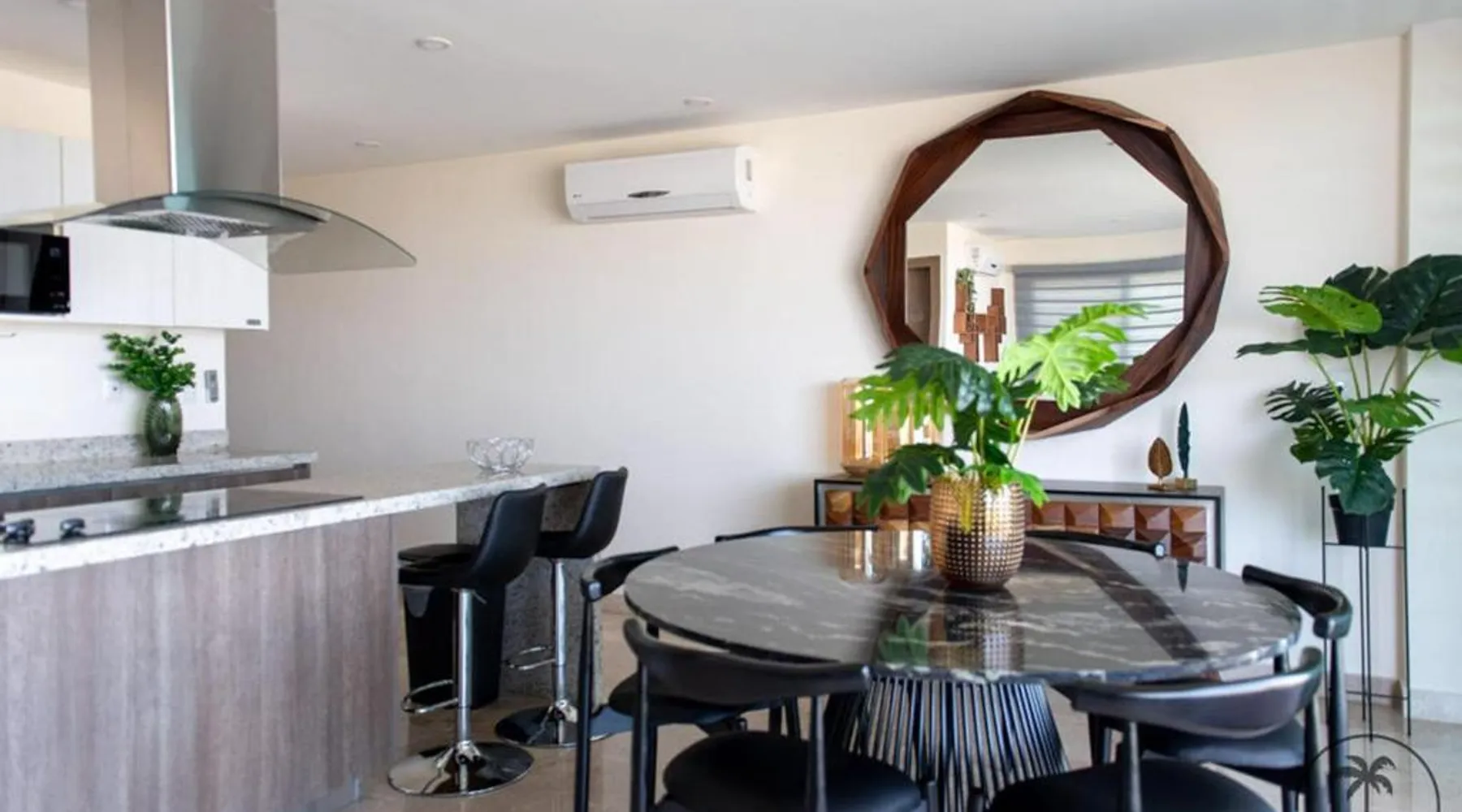 Beachfront Location: Nuevo Departamento en el Malecón! in Mazatlán offers direct beachfront access with stunning views. Guests can relax on the terrace or take a dip in the outdoor swimming pool. Spacious Accommodations: The apartment features a spacious layout with air-conditioning, a balcony, and a private bathroom. The fully equipped kitchen includes a coffee machine, microwave, and oven. Convenient Amenities: Free WiFi is available throughout the property. Additional amenities include a barbecue, tea and coffee maker, and a TV. Nearby Attractions: North Beach is 1.7 mi away, Plazuela Machado 2.9 mi, and Mazatlan Lighthouse 4.3 mi from the apartment. General Rafael Buelna International Airport is 14 mi distant. Highly rated by guests. Guests will find kitchenware, an oven and a microwave in the kitchen. The apartment also offers a barbecue. The spacious apartment provides air conditioning, a tea and coffee maker, a terrace with lake views as well as a private bathroom featuring a shower.
