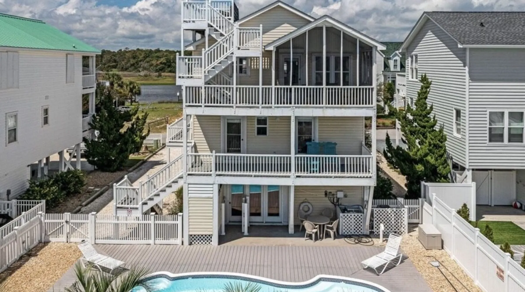 Luxury Home overlooking ICW. 4 Bedroom 3 Bath Private Pool, Beach, Grill + more This beautiful 5 bed/ 3 bath home on the award-winning Holden Beach Island offers incredible ICW views and an in ground pool. Pool heat can be turned on for a small fee. This spacious home offers private parking, 3 bedrooms on the second floor, and the main living area, kitchen and fourth bedroom on the top floor. Rinse the sand from your toes in the heated outdoor shower or spend the day swimming in our private pool. Conveniently located near the beach for beach goers.