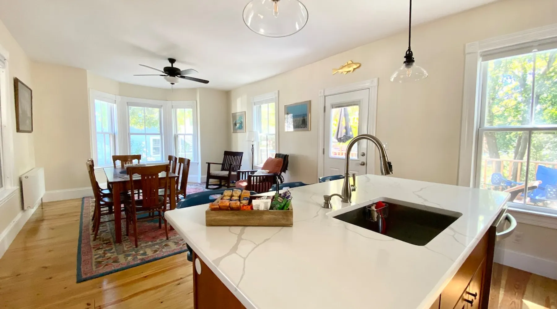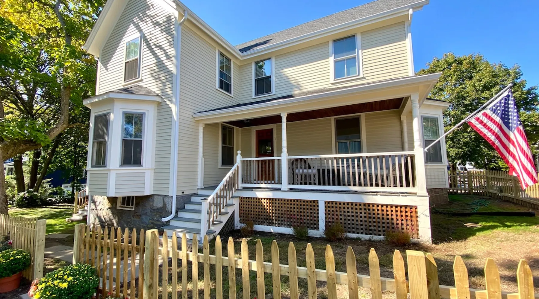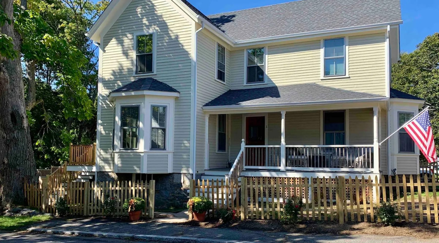 The Primrose Inn is a newly renovated 1890s home, conveniently located in the heart of Marblehead. From the house, you'll have the ease of being just a short 6-minute walk to the heart of downtown, where you can enjoy Marblehead’s main shopping, restaurants, historic harbor, and additional services. The space This classic antique has been completely renovated from top to bottom, featuring all the modern amenities for a comfortable and convenient stay, from new stainless steel appliances, a new washer and dryer, wifi, smart TVs, an outdoor porch, and a deck, walk-in showers, and a spacious closets while still retaining its historical details. During your stay, enjoy multiple inviting and family-friendly spaces, which include the spacious kitchen island with guest seating opening into the informal dining room with comfortable couch seating, a separate living room for family entertaining, a front porch with great sun to wake up to with coffee, and a side porch with afternoon sun for your midday nap. The Primrose Inn has the pleasure of being located at the entrance of one of the last commercial farms to be sold to Marblehead as 11.5 acres of conservation. Neighboring schools utilize the Robinson Farm for environmental education and development and offer pleasant nature walks for you and your dog during your stay.
