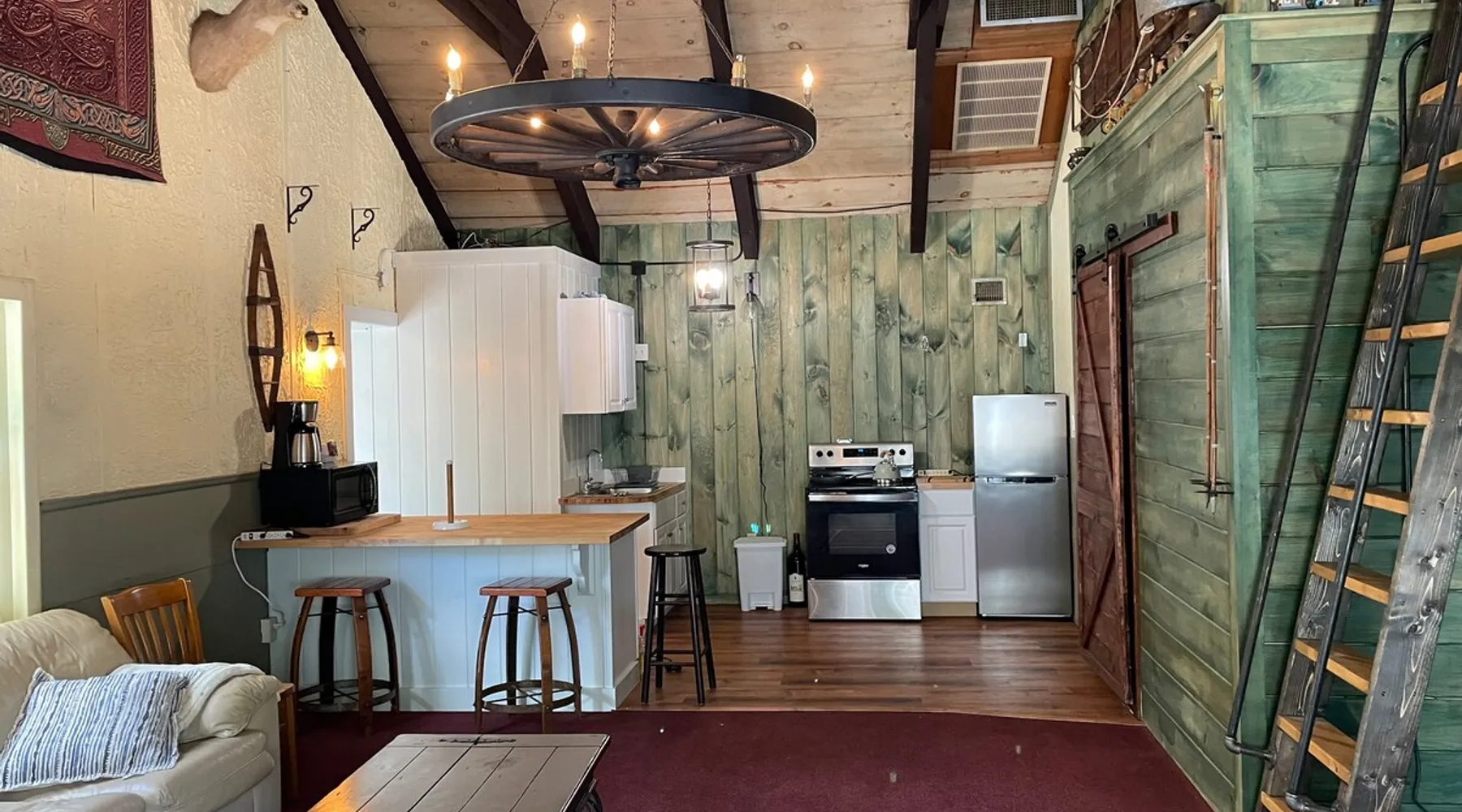 Quaint one bedroom with loft nestled in the White Mountain National Forest this getaway is both unique and convenient. Guests will have access to a private entrance and patio area, with a grill that will be available for use. Located 5 miles from Waterville Valley, guests can easily access some of the best experiences the White Mountains have to offer, no matter the season.