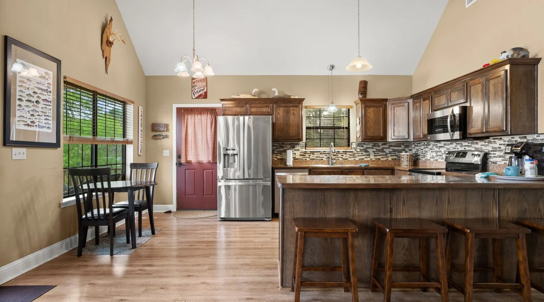 Hooked On Toledo is more than just a cabin—it's a premier vacation spot found easily on internet searches. This property on Toledo Bend offers everything you need for an unforgettable escape. Located directly on the lake, our cabin includes a boathouse and fish cleaning station, making it a perfect spot for anglers. Unwind while taking in the unbeatable 2-mile panoramic views of the Toledo Bend sunsets from our spacious lakeside deck. Amenities include a fire pit and a fully-equipped kitchen. The space This is Hooked On Toledo as found on internet searches. Hooked On Toledo is a 3BR/2.5BA lakefront cabin on the main lake at Toledo Bend. This cabin has everything one can ask for. THE CABIN: The cabin is cozy and can sleep 8 people - two in each bedroom and 2 more on the sleeper sofa in the living room. The kitchen is well-equipped with utensils, pots and pans, coffee maker, toaster, etc. Upgraded stainless steel appliances make you feel right at home while you're at the lake. The two downstairs bedrooms each have a queen size bed with their own full bathroom. The loft upstairs has a twin daybed with twin trundle and a half-bath. The living room has ample space for catching your favorite show or a movie, thanks to our flatscreen television with DirecTV satellite. The porch facing the lake is amazing. You can see beautiful sunsets in the evening, hear the cicadas, and occasionally see a bald eagle! THE BOATHOUSE: If watching the sunset from our porch wasn't already beautiful enough, you should see it from our boathouse! Down by the seawall of our property we have a boathouse that you can use to moor your boat or just hang out by the lake! Since this home is located on the main lake, the boat channel runs right out in front of the cabin. It is very entertaining watching the boats in the evening. THE COOKOUT AREA: Just a few feet from the cabin is a designated cookout area where the chef in your party can show off his culinary skills! There is a grill and a small area for preparation. This cookout area is a great place for hanging out as it also has a magnificent view of Toledo Bend Lake! THE UNBELIEVABLE SUNSETS: I've mentioned sunsets already, but this feature warrants its own category. The sunsets at this property are downright unbeatable. From our seawall to the nearest tree between you and the sunset is about three miles! This unobstructed view of the sunset is purely amazing and quite frankly the absolute best you're going to find on Toledo Bend! Reserve our property, and you're sure to be Hooked On Toledo! We have our own rental agreement that is required to rent this property that supercedes the Airbnb rental agreement. This will be emailed to you after your reservation for you to review and sign. Pets and service animals are not allowed under any circumstances. One of our family members is allegic to all service animals, even hypoallergenic serivce animals. No pets or service animals. Internet: We have internet at the cabin, and will allow you to use it if it is working. The WiFi pwd is GetHooked. With that said, however, please understand I am not selling you internet alongside the rental of this cabin. If the internet isn't working then that's going to be okay with you. Use the hotspot on your phone. Please, if you're one of these people with a voracious appetite for internet who must be connected at all times please do not rent this cabin. Boat lift: This cabin has a boathouse that you're welcome to use when it is operating. The boat lift at the boathouse is inoperable, not for use, and not something we are advertising with this cabin. Other things to note We have our own rental agreement that is required to rent this property that supercedes the Airbnb rental agreement. This will be emailed to you after your reservation for you to review and sign.