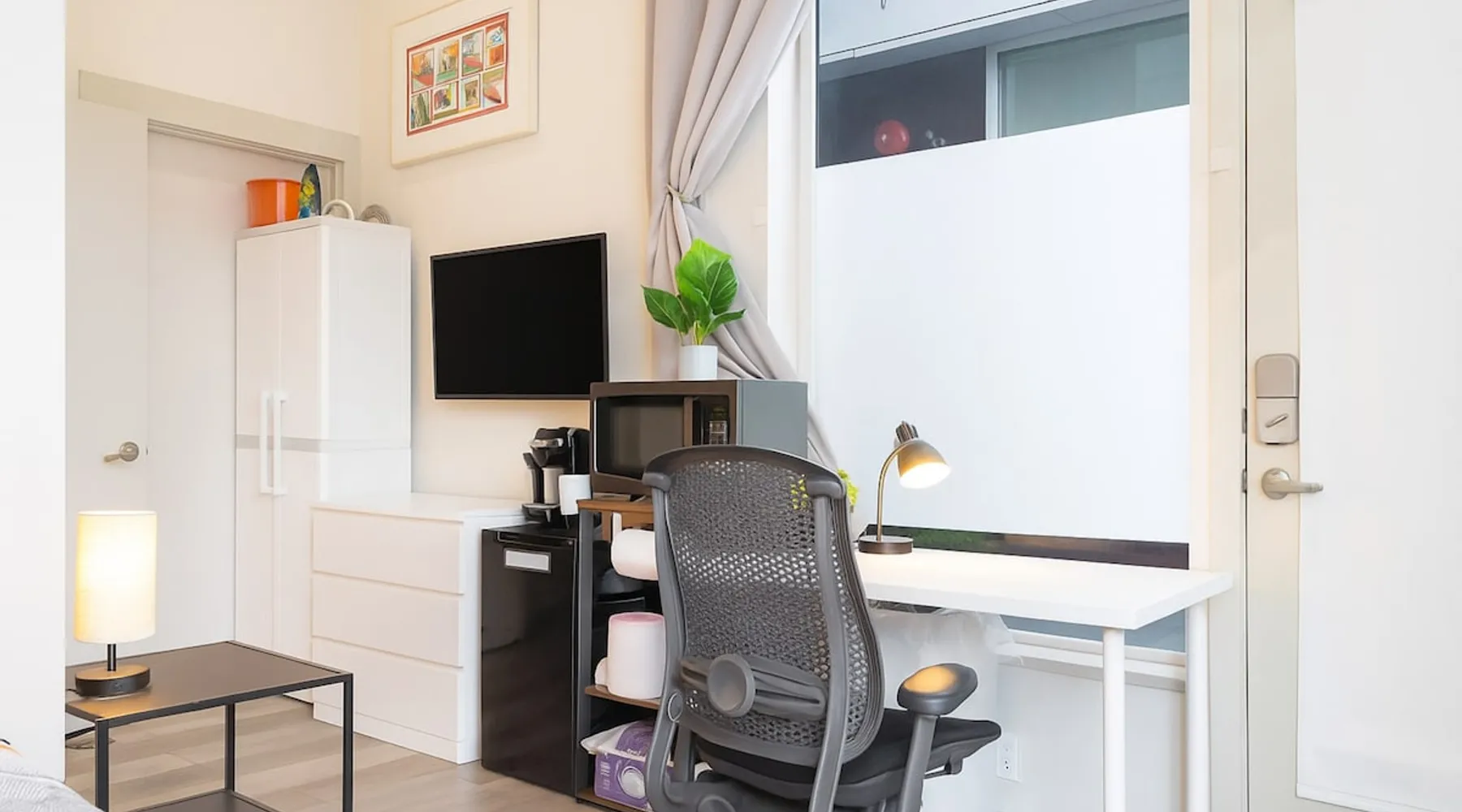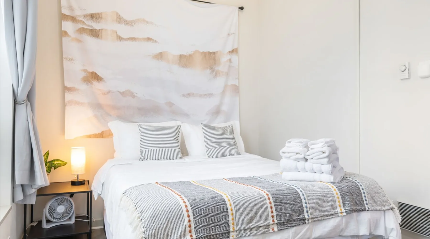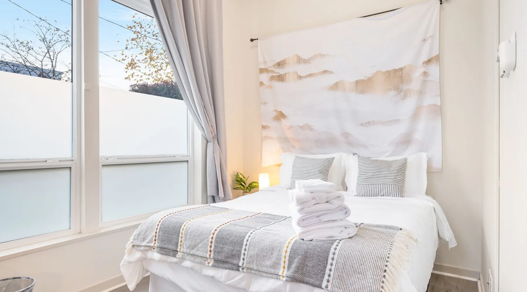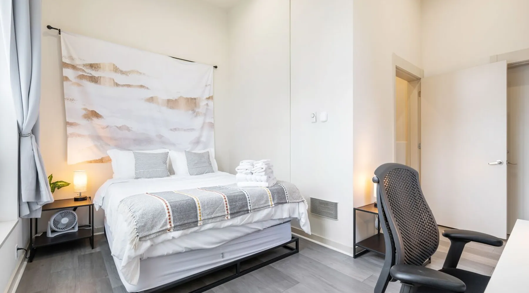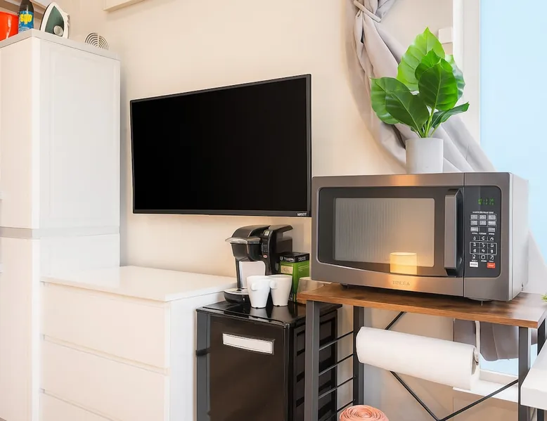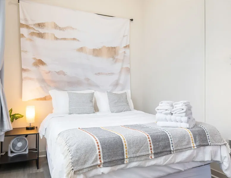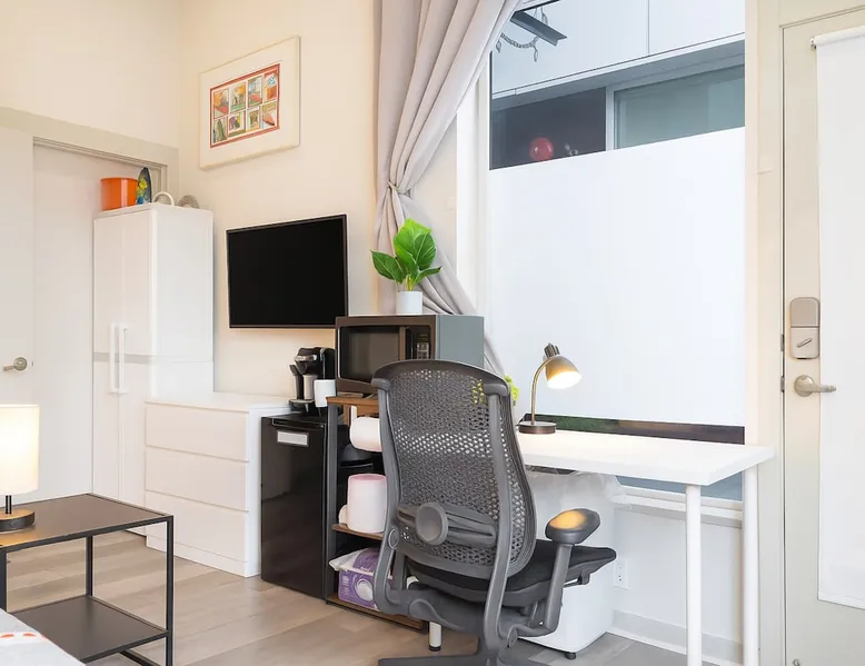 Fremont studio: easy downtown Seattle access, 91 walk score. Bus outside for city, Fremont, lake walks. The space Convenient studio located in downtown Fremont with easy access to downtown Seattle and other tourist areas, with a walk score of 91! During the day, step onto the bus right outside the door to head downtown, explore Fremont, or take a walk around the lake. As for nightlife, there is an abundance of bars and restaurants just blocks away. The studio is about 300 sqft, with a queen bed sleeping up to 2 guests, a private bathroom with shower, and a desk + chair for working. With tall ceiling and big windows, the studio is bright, cozy and spacious. You'll find the following amenities: mini fridge, microwave, utensils for takeout, iron, desk/chair, fan, coffee maker with coffee & tea. Guest access You will have your own room with a private bathroom and private entrance, there will be no shared spaces. Other things to note **About the Reservation** • We uphold our cancellation policy as we only have each night available to one group of guests. We highly recommend purchasing travel insurance to protect your booking. One date change if your check-in date is more than 2 weeks away. No date changes otherwise. • For stays longer than 29 days, we require a double cleaning fee, additional tenant screening, lease signing, and a security deposit to fully confirm your reservation. **Additional Info About the Home** • Kindly note that there is ongoing construction noise coming from across the street. This may cause some disturbance during your stay. • This home joins the townhome next door that is also being rented. All access are separate and experience will not be interfered in any way. • Parking: the home does not have dedicated parking. The parking on our side of the street is free and there is no time limit, and the parking across the street is free but limited to two hours. **About Fees & Pricing** • We utilize dynamic pricing. This means that booking rates may increase or decrease every day. We do not honor yesterday’s pricing. • Pet fee: Well-trained pets are welcome; We charge $50/night for your pet(s) which have already been included in your invoice if you have selected pets on your reservation. **House Rules** • This is a pet friendly home but kindly refrain from allowing pets on furniture/linens including couches, throws, beds, pillows, and towels. Please do not leave pets unattended; please bring poop bags and pick up after your pets. • Strictly NO parties and events, quiet hours between 10pm-8am, no smoking or vaping of any kind anywhere on the property including outdoor areas, no digital piracy, no shoes in the home. $500 fine per violation. Registration Details STR-OPLI-19-001363