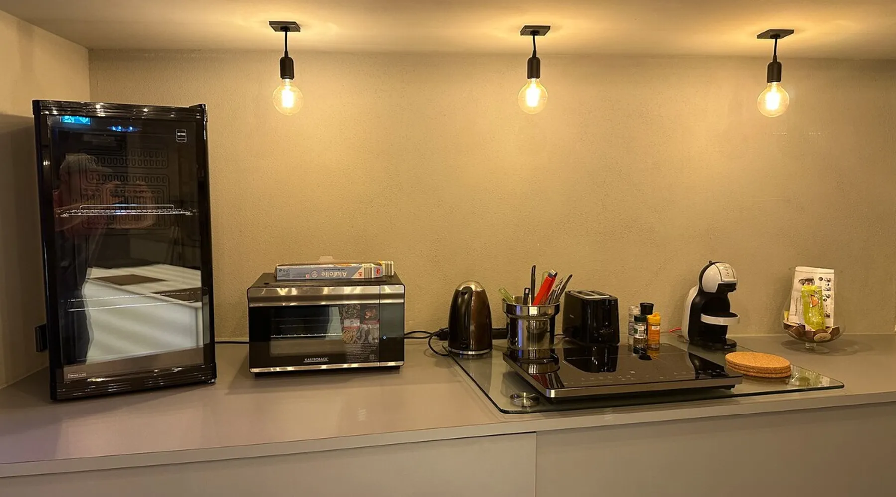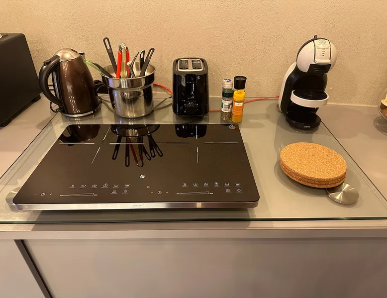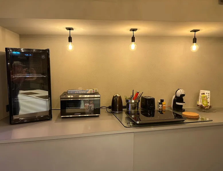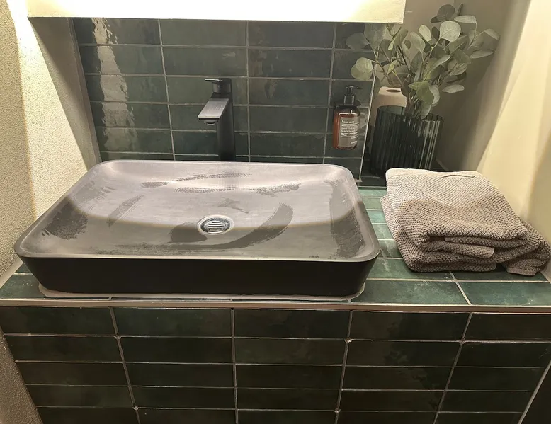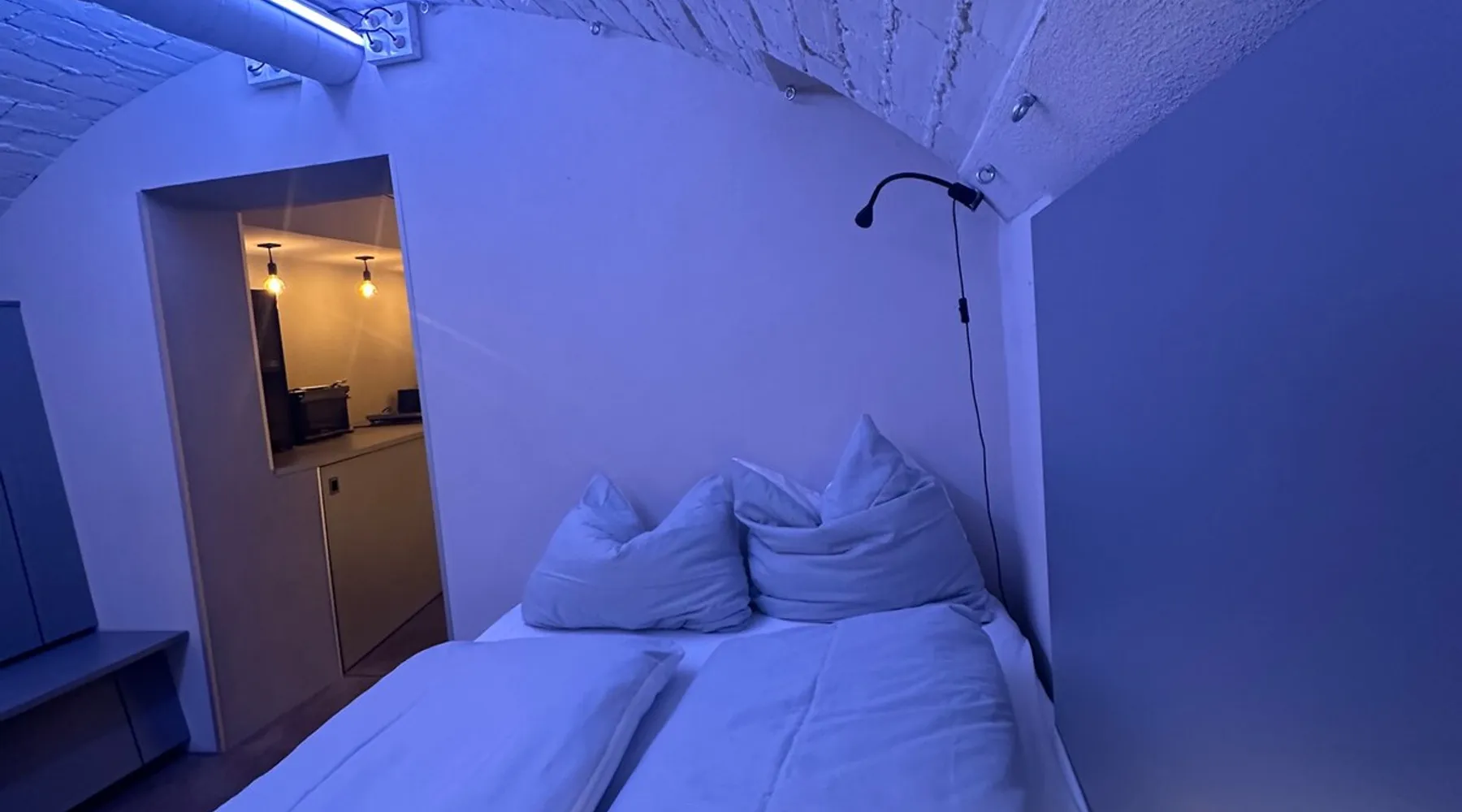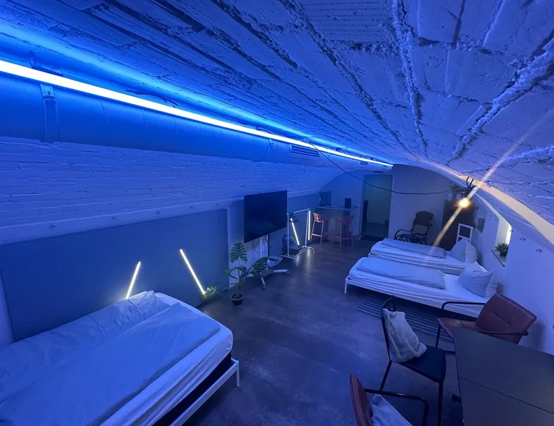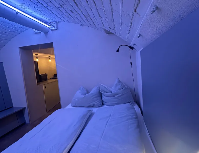 This great place is anything but usual. In our vault in the basement of the soulfactory you have more than enough space to be comfortable. It has a ventilation system, underfloor heating, shower, separate toilet and a very large kitchen with illuminated counter. Washer and dryer are located on the 1st floor, which is accessible via the elevator. A double bed, two single beds and a sofa bed ensure a high level of comfort. The space There is also a public shared terrace with seating area, table tennis table and Weber gas grill. Parking with video surveillance is available for 10,- EUR (please reserve) per day. There is a MiniBar available, the billing is done in cash or credit card. There is a washing machine and dryer in the house, these can be shared.