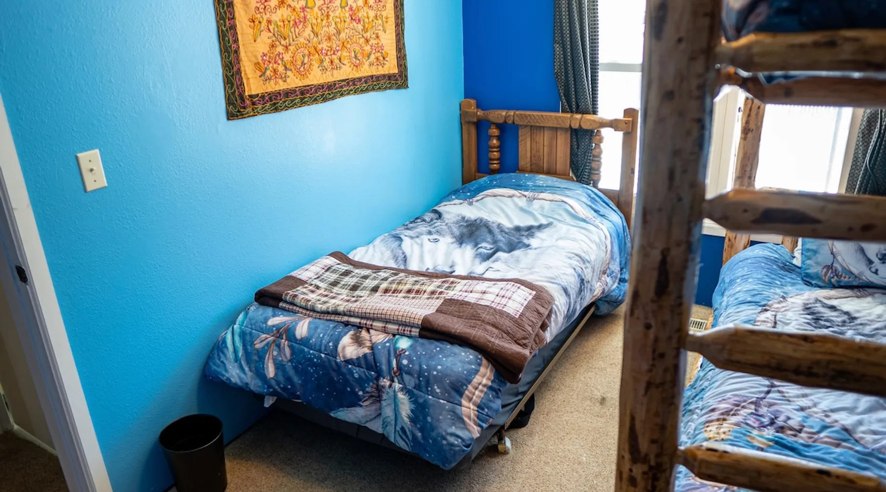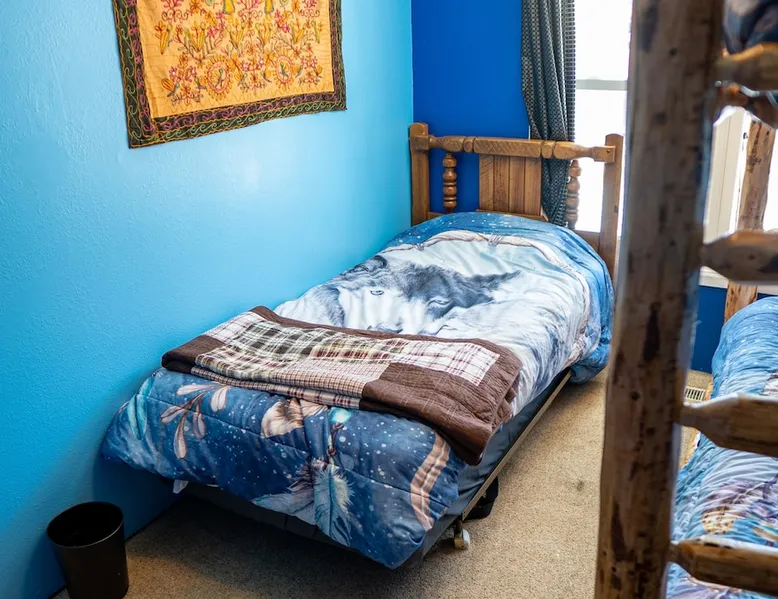 1 bed in a shared room at ShredLife Eco Hostel. We're a small and mindful hostel in beautiful Summit County, Colorado. We welcome ski vacationers, everyday riders, and other world travelers. Conveniently located just minutes away from Colorado’s best ski mountains. At ShredLife, guests find a vibe that is youthful, stress-free, and mindful... overall VERY chilled out. We host like-minded people looking to meet new people, hit our sick ass private terrain park, and just have a good time! The space (!!! Check out our FB page or our Website (just search for ShredLife Eco Hostel) for the most up to date information, promotions, and anything else that might be limited on this platform.) ShredLife Eco Hostel is two-stories with shared kitchen, living rooms/lounges, dining areas, etc. We offer private and dormitory-style rooms. This listing is for the one bed in your choice of the White, Blue, and/or Green Rooms at ShredLife, as are available at your time of arrival. The White Room is for female identifying guests only. The Blue and Green Rooms are male/mixed gender rooms. Each bed also includes additional storage space, and a locker for your valuables, including dedicated secure locking space for your ski/snowboard. ***Please note that the Green, White, and Blue shared rooms operate on a first-come-first-serve basis, so we may not be able to guarantee a specific room/bed. These rooms are priced the same, and we know preferences do vary. Please just contact us and we can look into specific bed availability, etc.). We will definitely do everything we can to accommodate your preferences. As with all stays, linens and towels are always included free of charge, as well as Gigabit super high speed WiFi. As a hostel, all guests also receive 24/7 access to several shared living spaces, such as: fully stocked kitchen, lounges, dining areas, etc. We offer a heated garage space to hang out those late nights without worry of your noise disturbing the early-rising guests. We also have a year-round and 24/7 terrain park and training park in the back yard. We have countless hours of fun here, and you are free to build ANY features you want. Professional Super Tramp is also in the works. You can 100% progress your skills here. We also hold several events every week where guests can get to know each other and have as much fun as humanly possible. Events include: rail jams, wax sessions ($3 wax using our supplies with a professional instructor), darts/pool/video game tournaments, theme nights (taco, BBQ, etc), pub crawls, and so much other fun shit! And when you’re ready to head to the mountains, we offer a very affordable shuttle service to get you there, to/from bars, or anywhere else really. Guest access All guests have 24/7 access to all amenities at the hostel. This includes social lounge areas, TV/video games, the kitchen fully stocked with cookware/dishes/spices, two outdoor decks heated with commercial gas patio heaters, outdoor charcoal and gas grills, party room including darts, pool, ping-pong, etc. (this room is currently under construction in the garage), and all the other on-site entertainment. Of course, the amenities include 24/7 access to the main attraction: the backyard terrain park/training park (including tons of rails and jumps, and more constantly being added). The terrain park is lit at night. It also includes a hard-wired point-to-zoom camera, which you can focus on one feature and then use to get sick footage to make edits of your riding! In the summer/warm months, we switch out the ski/snowboard terrain park for a dry-slope terrain park, as well as a regulation size half-court outdoor basketball court, slackline, several hammocks, and other dope stuff like that! Other things to note Our favorite permanent resident is a cat named Joey. She is hypo-allergenic and pedigreed British Shorthair. She is adorable and the most lovable kitty ever - but please keep in mind that *limited* encounters with Joey may be unavoidable, if you have allergies etc. We have had many guests with cat allergies stay here that were not seriously bothered, and her shedding is very minimal. But please be aware of her being here, and please contact us ahead of time if you expect this to be an issue in any way - we can discuss what we might be able to accommodate you as best we can. Registration details STR21-01299