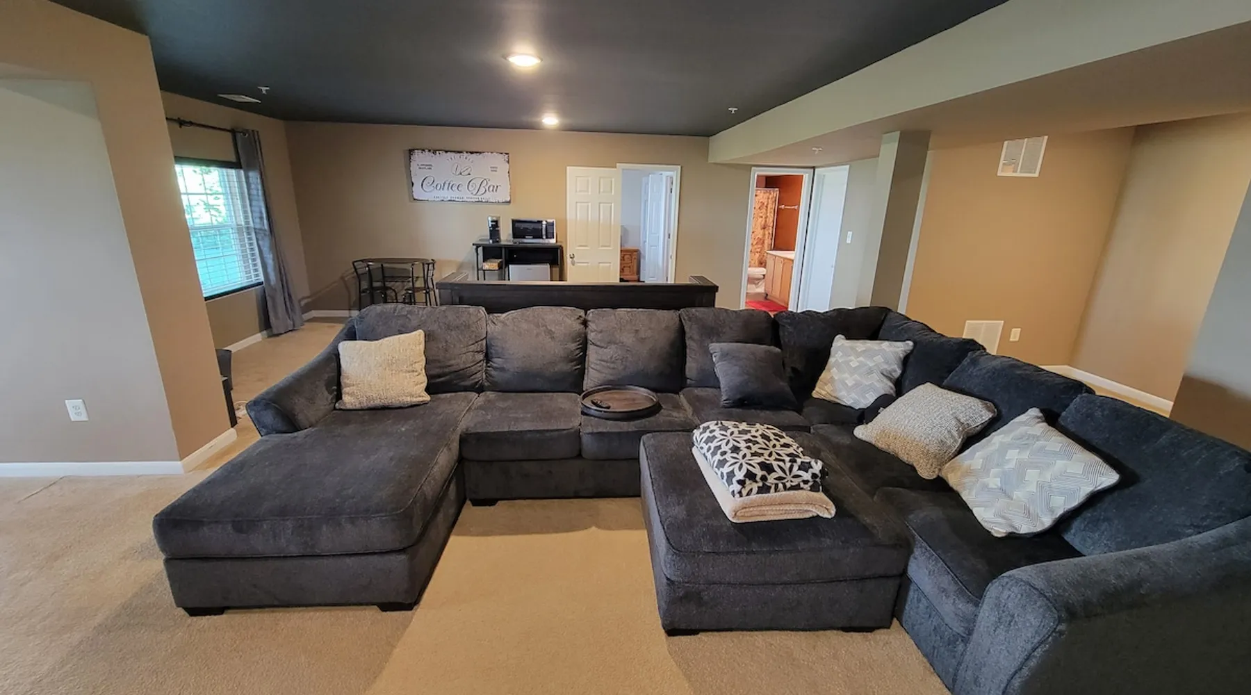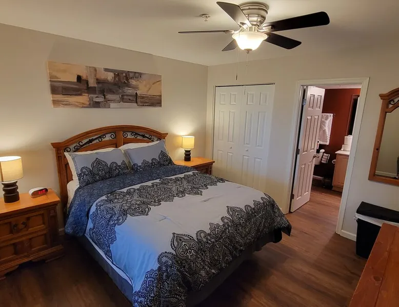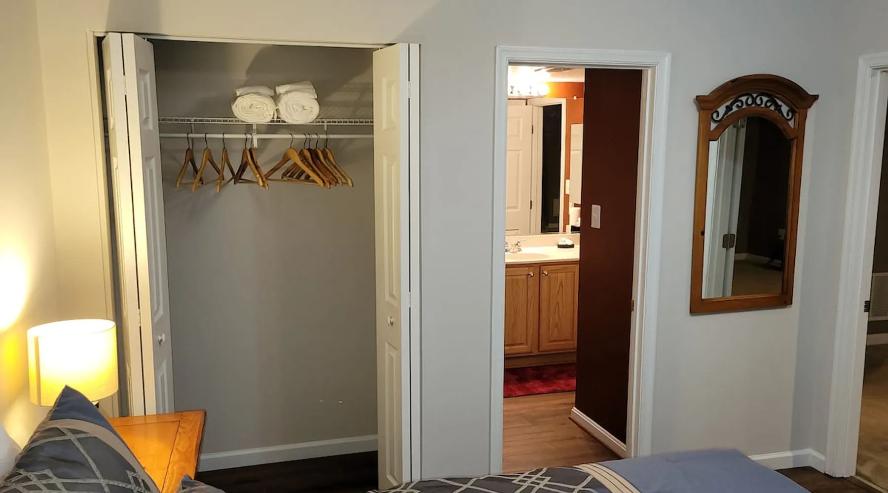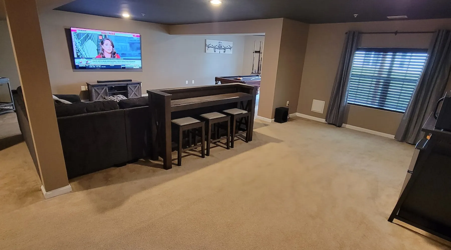 A clean 1 bedroom Clarksburg, MD basement apartment is close by Germantown, Boyds, Damascus and Gaithersburg, MD. 1 queen size bed in the room, and 1 rollaway bed if needed. Perfect for quick personal and business trips or an extended stay. Just 31 miles outside of Washington, DC. Completely private space; there is NO shared space with the rest of house. Separate entrance. My wife and I occupy the upper two levels as our residence. We are quiet and will do our best not disrupt your peace. The space The entertainment room area includes a spacious and very comfortable large sectional couch, 85-inch flat panel smart tv, pool table, coffee maker, small refrigerator and dedicated work desk area. Guest access Guests should enter the walkway on the left side of the house and follow the brick paver walkway to the back. Motion lights will brighten the path at night. A few short steps leads to a shorter walkway that leads to the private entry. A keyless touch pad lock will be programmed to each guest's unique 4-digit code. During your stay I am a text message or phone call away. Other things to note The basement apartment also includes a first-aid kit, fire extinguisher, and smoke and carbon monoxide alarms. A rollaway bed is available as a second bed option.