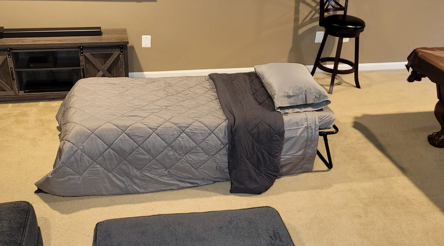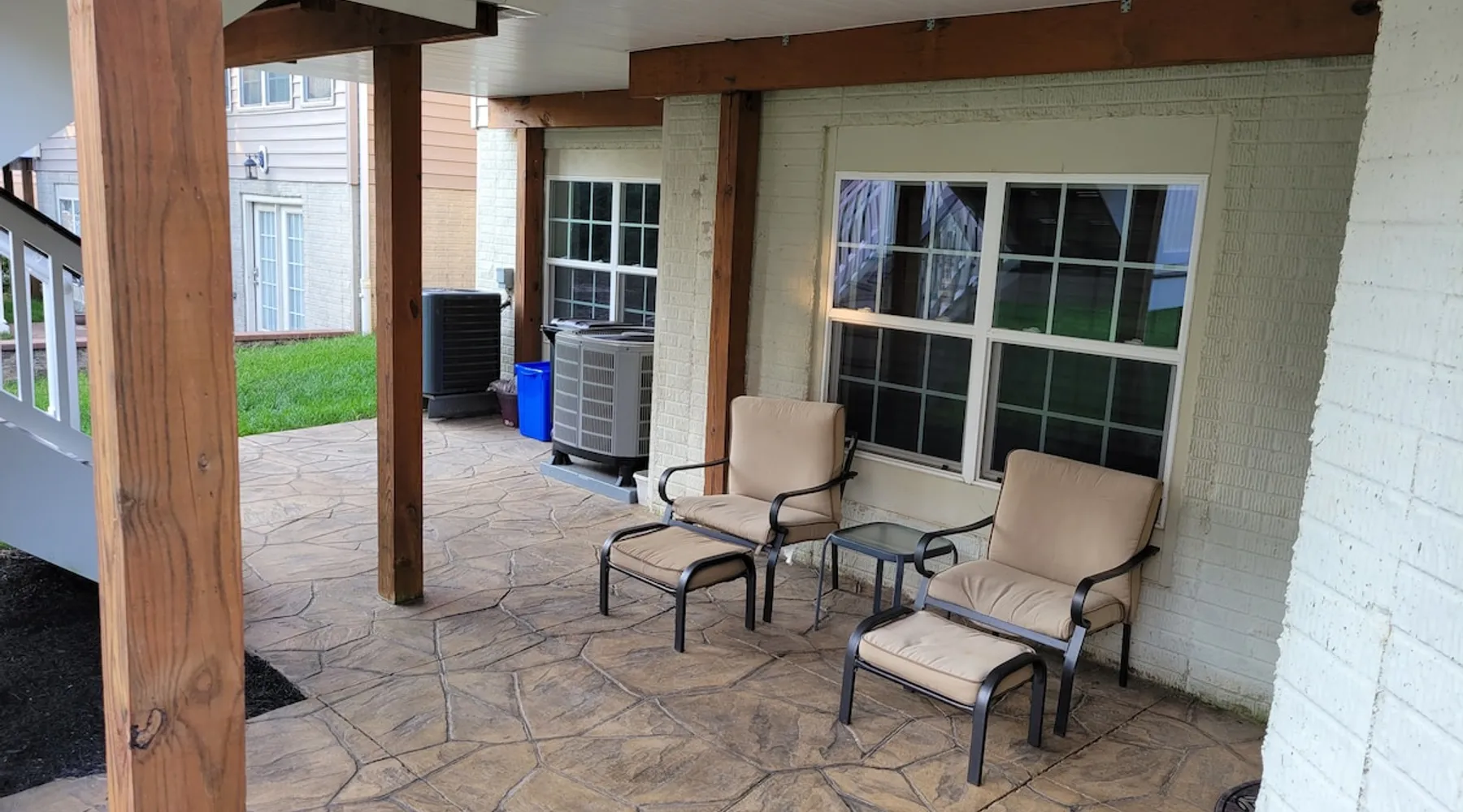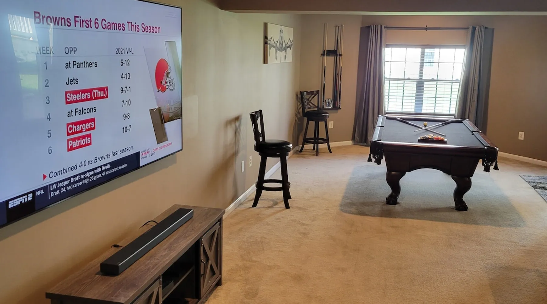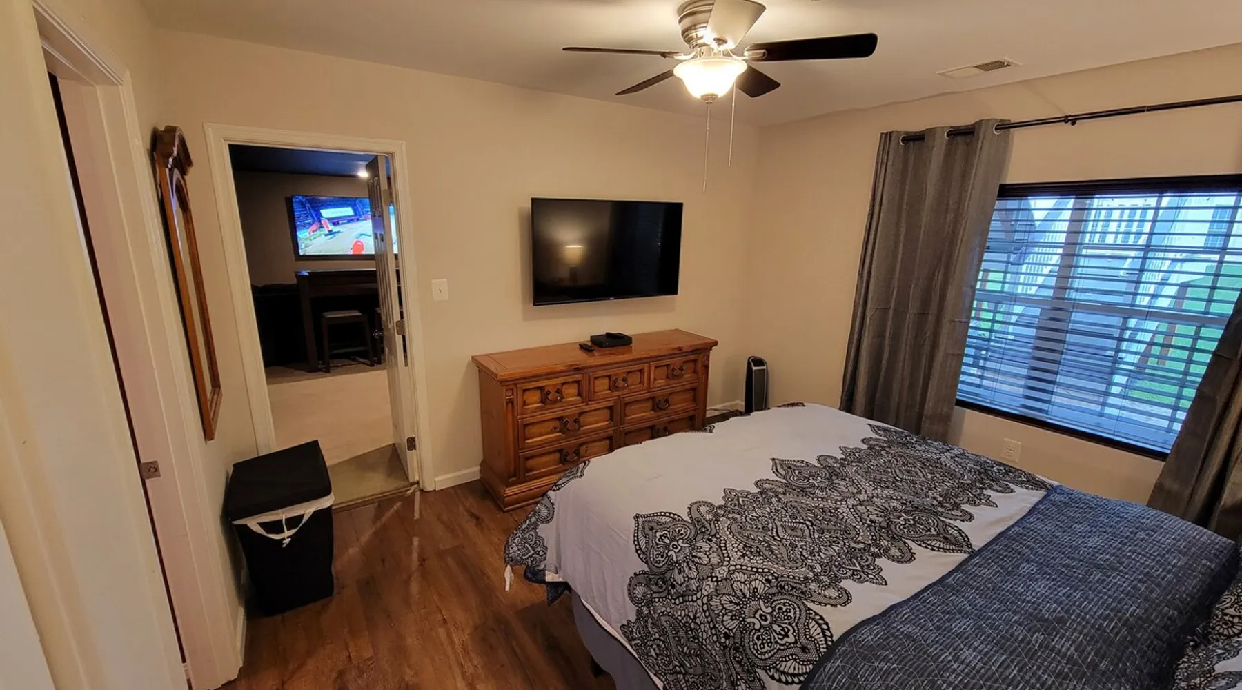 A clean 1 bedroom Clarksburg, MD basement apartment is close by Germantown, Boyds, Damascus and Gaithersburg, MD. 1 queen size bed in the room, and 1 rollaway bed if needed. Perfect for quick personal and business trips or an extended stay. Just 31 miles outside of Washington, DC. Completely private space; there is NO shared space with the rest of house. Separate entrance. My wife and I occupy the upper two levels as our residence. We are quiet and will do our best not disrupt your peace. The space The entertainment room area includes a spacious and very comfortable large sectional couch, 85-inch flat panel smart tv, pool table, coffee maker, small refrigerator and dedicated work desk area. Guest access Guests should enter the walkway on the left side of the house and follow the brick paver walkway to the back. Motion lights will brighten the path at night. A few short steps leads to a shorter walkway that leads to the private entry. A keyless touch pad lock will be programmed to each guest's unique 4-digit code. During your stay I am a text message or phone call away. Other things to note The basement apartment also includes a first-aid kit, fire extinguisher, and smoke and carbon monoxide alarms. A rollaway bed is available as a second bed option.