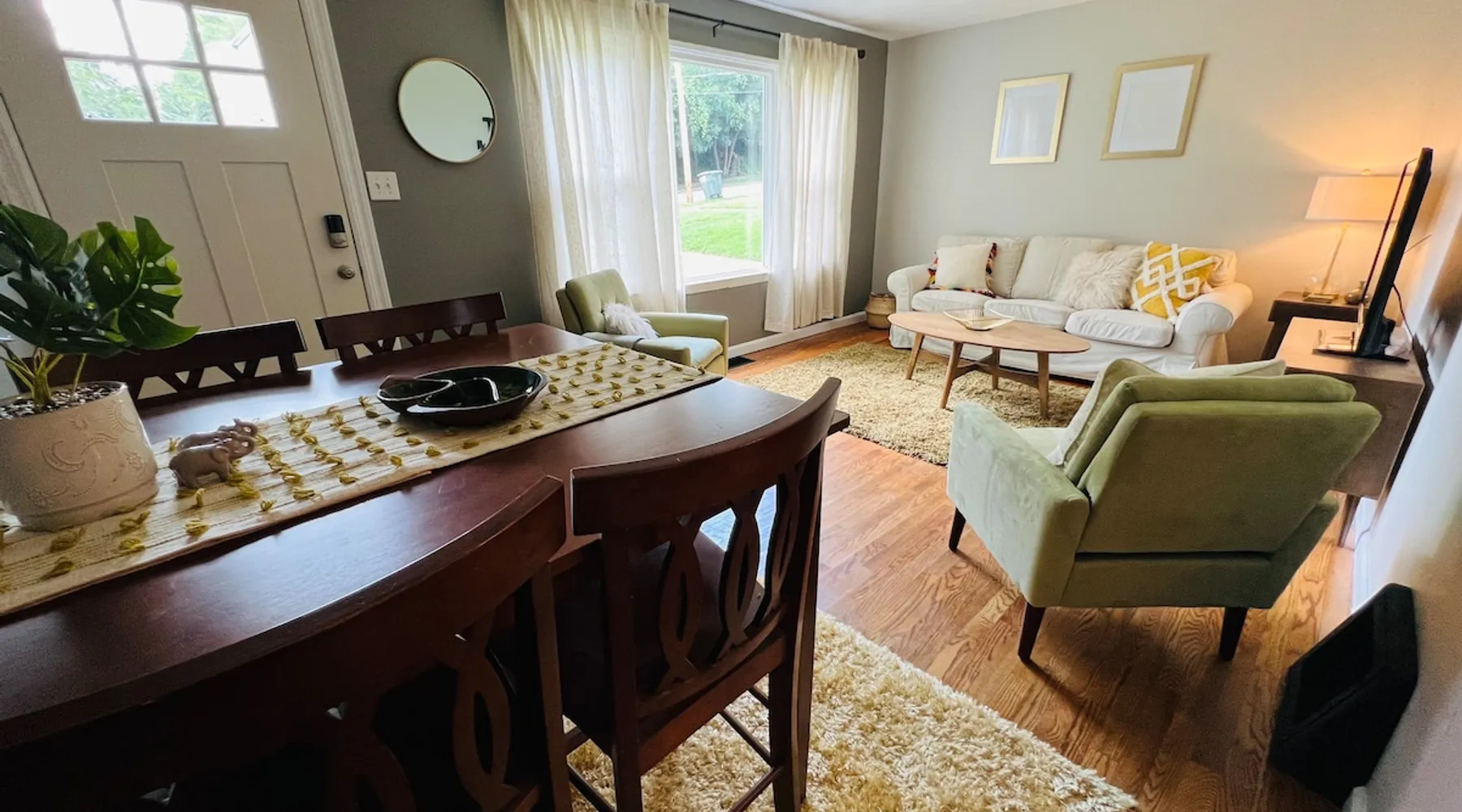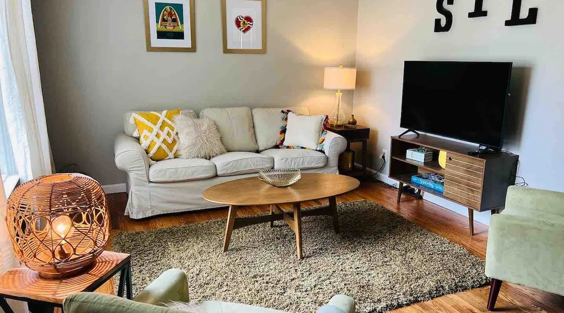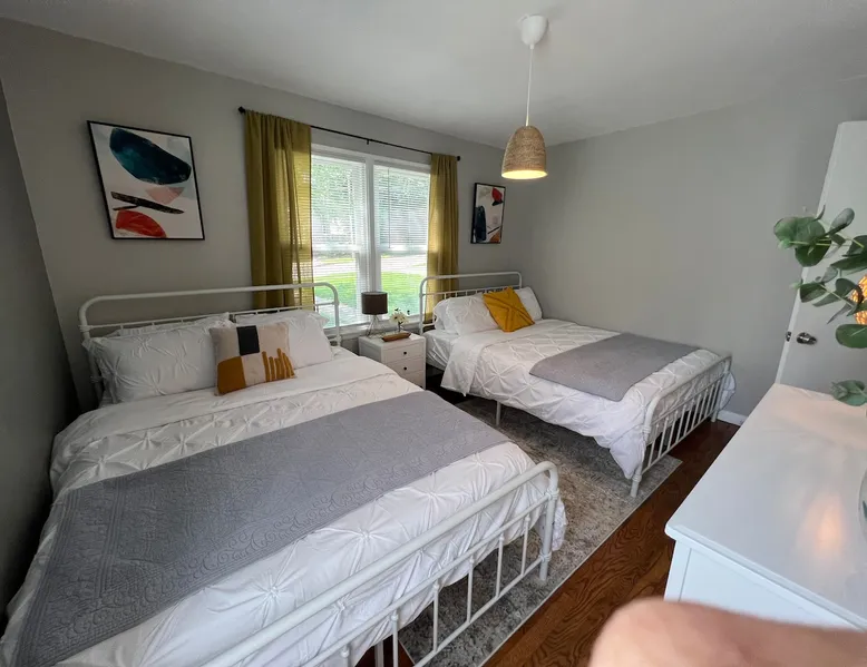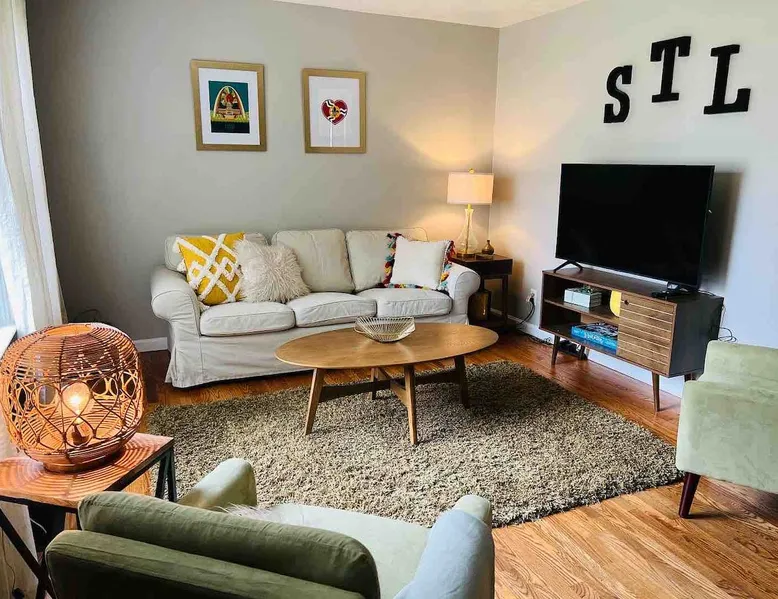 Welcome to our cozy Mid-Century Modern Airbnb! This adorable home is located in the historic Dogtown neighborhood of STL. We provide all the essentials needed to make you feel at home during your stay! The kitchen is fully stocked & ready for use! The large back yard is fenced with a patio set & umbrella. Perfect for back yard games, children & pets! We’re located just 10 min from downtown, Wash U, SLU, the Fabulous Fox and just 5 min from Forest Park, the Zoo & Science Center! The space Whether it's one person or up to six people, this cozy bungalow is perfect for a family, business trip or traveling with friends. There is plenty of comfortable space, a 50” smart tv & the back yard is fully fenced. We do allow pets with a one-time charge of $30 each. We ask guests to leave this on the counter upon checkout - this is NOT included in the Airbnb price. The Christmas tree will be up for your family to enjoy the holidays! The master bedroom has a TV and a single queen bed. The second bedroom has two queen beds. Lots of closet space, drawer space and a full basement. The full basement has a play area for kids with toys & books. The laundry area is in the basement and has a washer & dryer for guest use. We supply detergent and fabric softener for your convenience. The neighborhood is perfect for walking your pet and there is a huge park and playground just one block over. We also have other properties within 10 minutes of this one if you need additional space! All of our homes have been beautifully renovated with stylish decor. They are as follows: 1) English Tudor on Pernod (1st floor) - A 3 bedroom that sleeps up to 8 people Airbnb/h/englishtudor 2) Cozy bungalow in Dogtown: airbnb.com/h/cozystlbungalow The cottage and the 1st floor of the Duplex are located next to each other and share a driveway. They sit directly across from Tower Grove Park, which is a beautiful park that has a really cool Farmer's market every Saturday (not in the winter) and free yoga in the park. There are water fountains for the kids to play in along with a large playground, beautiful walking/running trails and covered areas to have picnics in! 3) Magnolia Cottage - Sleeps up to 8 people Airbnb/h/cottage-at-tower-grove The 1st floor home is in a Duplex, which is two homes under one roof. They are completely separate and do not share entrances. The second floor is rented to long-term tenants. 4) Kingshighway 1st floor - Sleeps up to 10 people Airbnb/h/1st-floor-historic-duplex-tower-grove Guest access There is a smart key entry for easy access. You will receive a code the morning of your arrival. You will also have full access to the home and back yard for your use. Other things to note - $30 pet fee / pet - leave on counter upon checkout (this fee is NOT included in the price of the Airbnb) - full access to the home - off street parking - parking pad is in rear of home and has space for two vehicles. There is also plenty of free parking on the street. -easy access to major highways & lots of fun places to visit