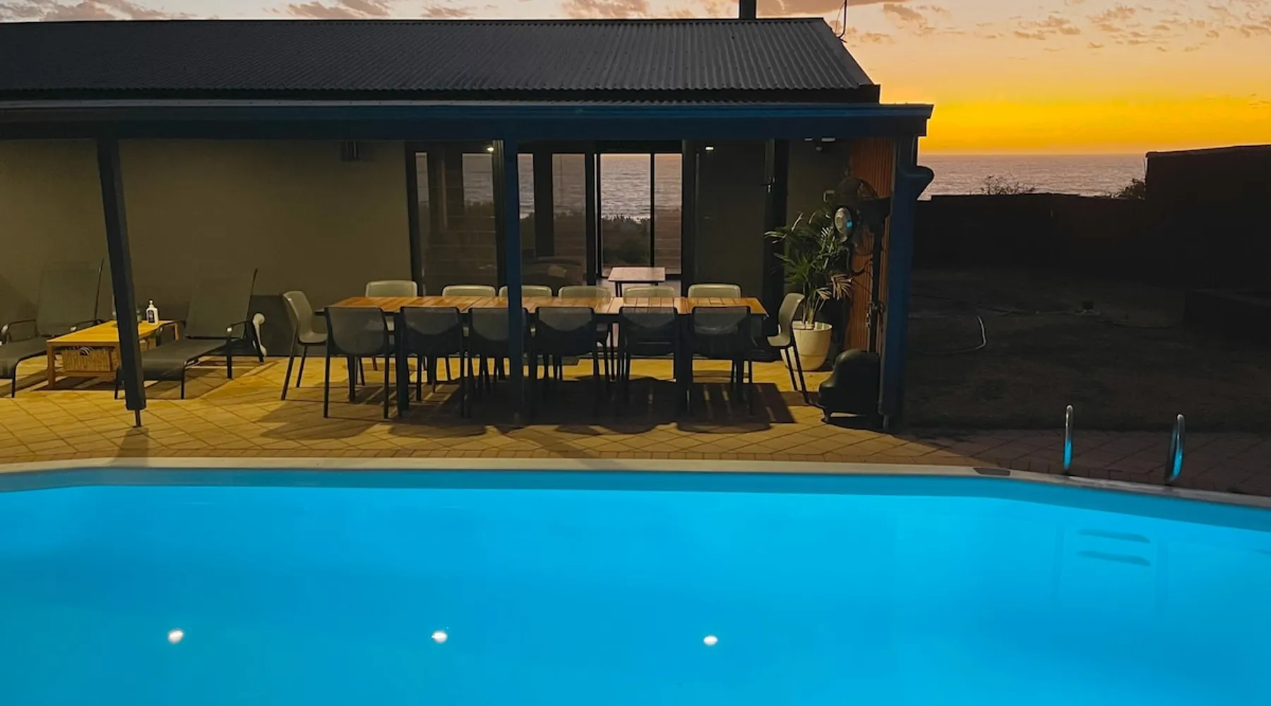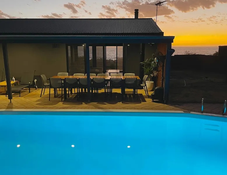 Experience rare direct beach frontage with sweeping, uninterrupted views over the Indian Ocean, Geraldton Lighthouse, and the Geraldton Port. This spacious 3-bedroom, 2 bathroom home offers a relaxed coastal lifestyle with an ever-changing ocean outlook. Enjoy the sun and surf just steps from your door, unwind in the private pool while soaking in the peaceful rear views. Its lifestyle in a permanent holiday. Important Information: • The pool is unfenced • Both bathrooms shower -over-bath The space Uninterrupted views you’ll feel like your the only house in the beach. Spacious Open plan kitchen, two lounge-rooms both overlooking the pool and ocean. 2 bedrooms share an ensuite with queen beds. Main bedroom comfy king bed, enjoy a bubble bath whilst enjoying ocean views, all bedrooms include their very own smart tv. Other things to note NO pool fence doors are adult height. No fence between the house and the beach (natural coast). shower over bath Registration Details STRA6530TGMGKWR8