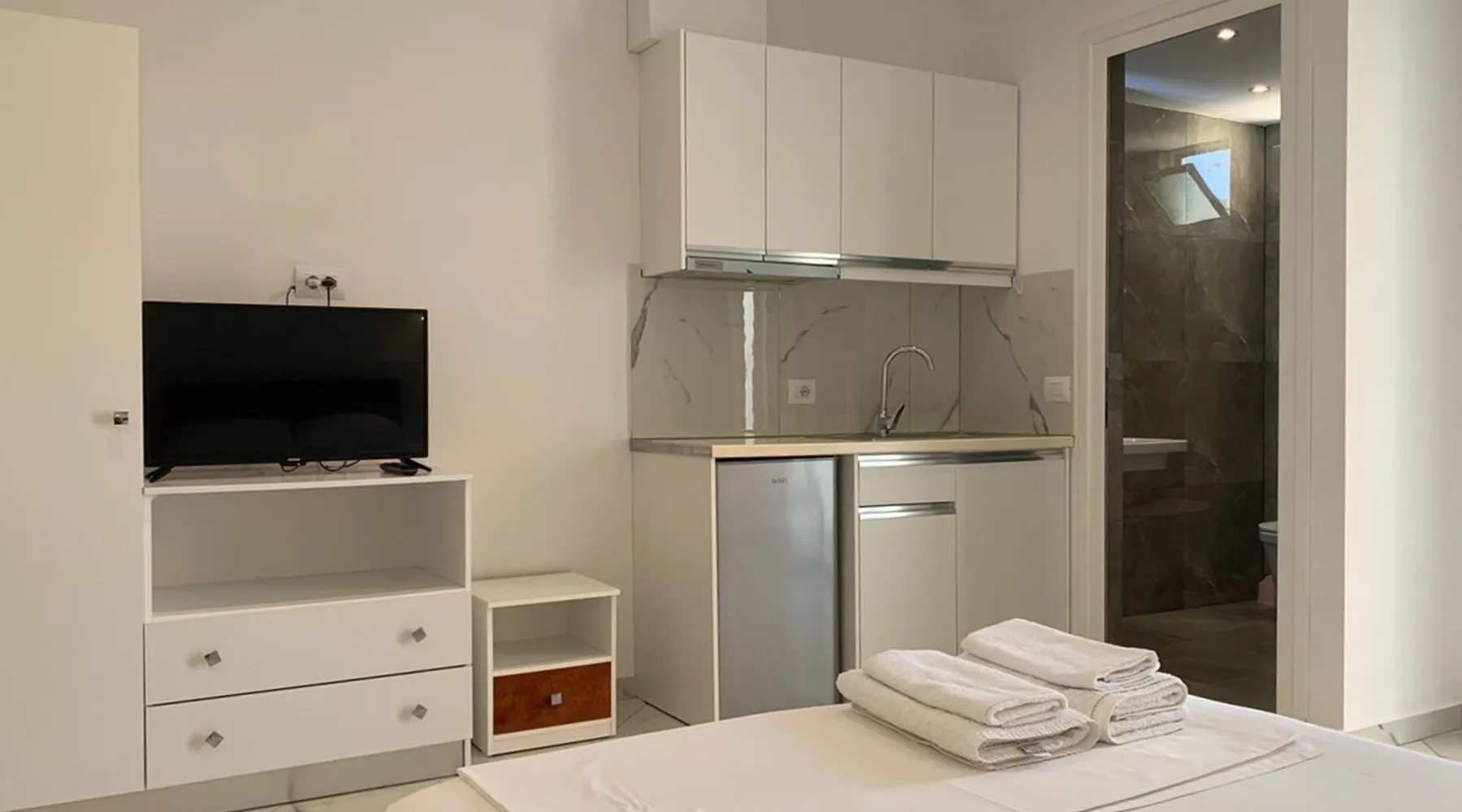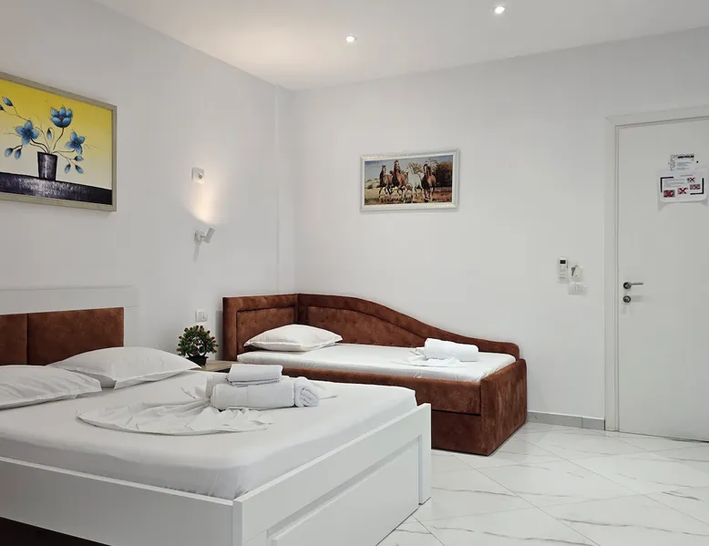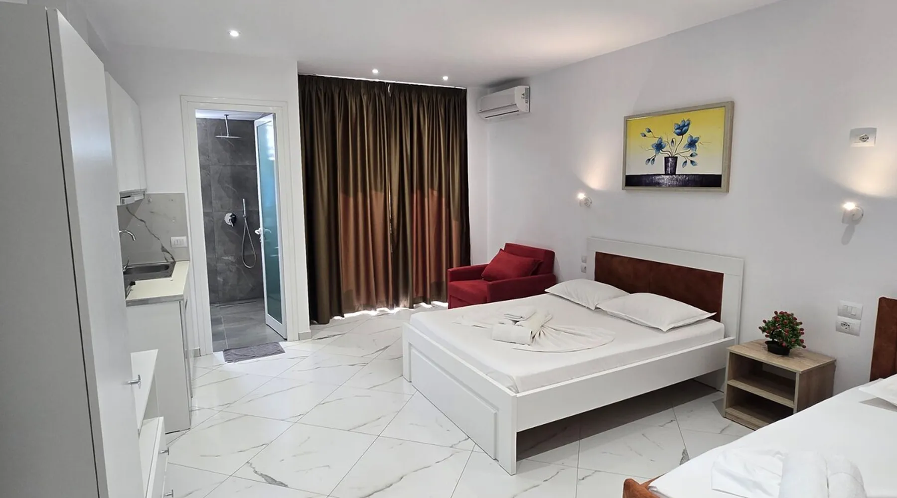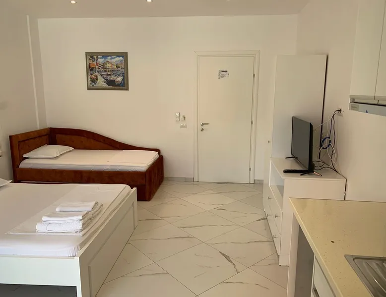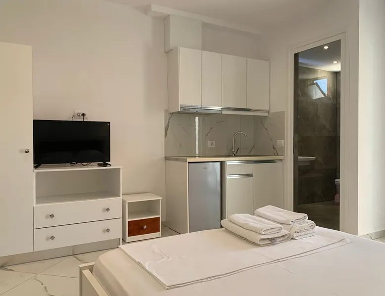 Our brand new suite, very close to the beach.Suitable for 4 people. Equipped with a kitchen, 1 double bed, one single bed and a retractable single bed. Inside you can find a well equipped kitchen, a smart TV, free WiFi, air-conditioner, hair dryer. There is a barbecue outside and a laundry room.