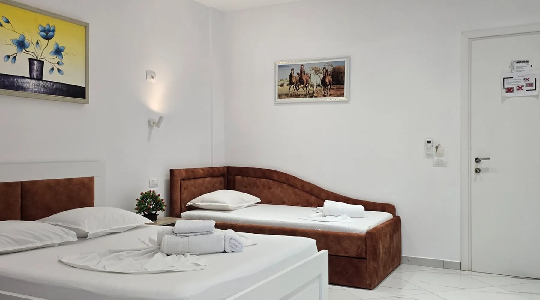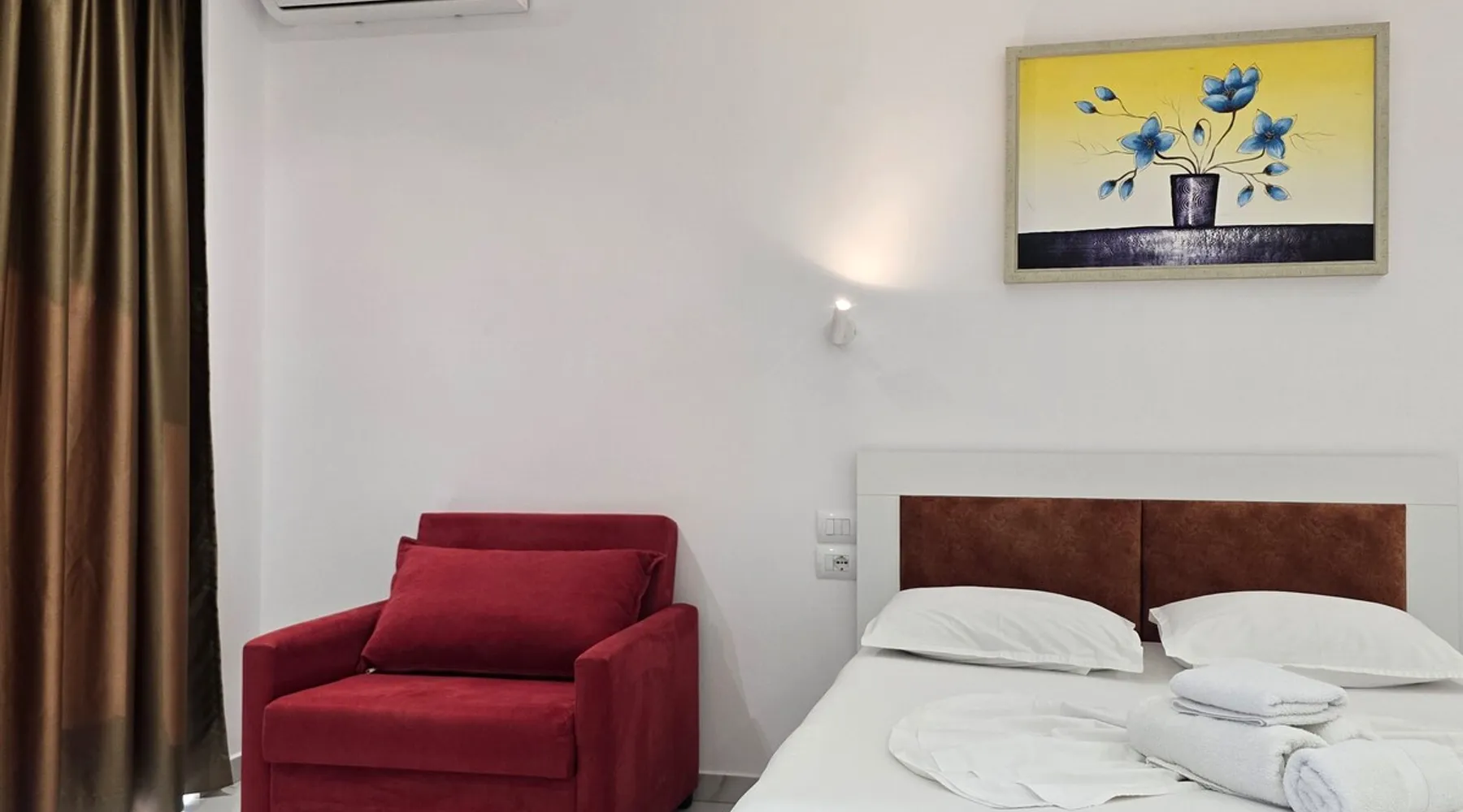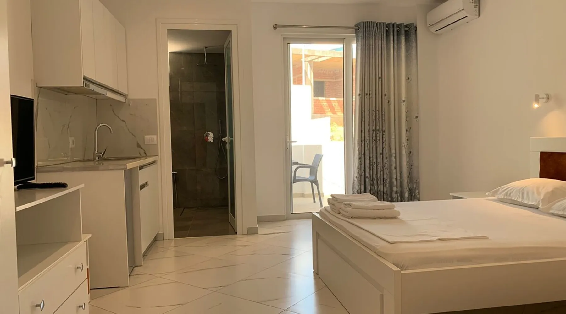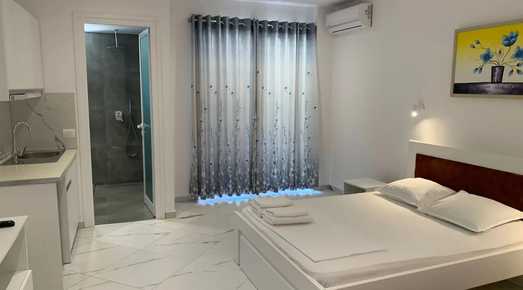 Our brand new suite, very close to the beach.Suitable for 4 people. Equipped with a kitchen, 1 double bed, one single bed and a retractable single bed. Inside you can find a well equipped kitchen, a smart TV, free WiFi, air-conditioner, hair dryer. There is a barbecue outside and a laundry room.