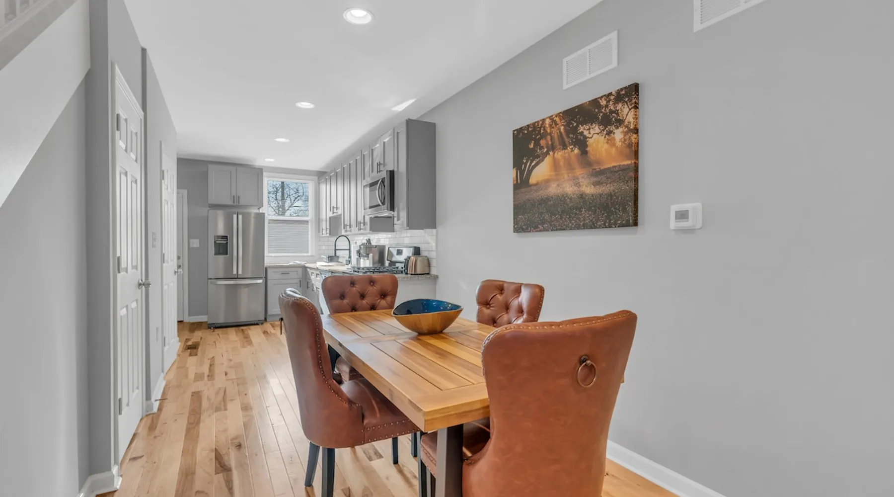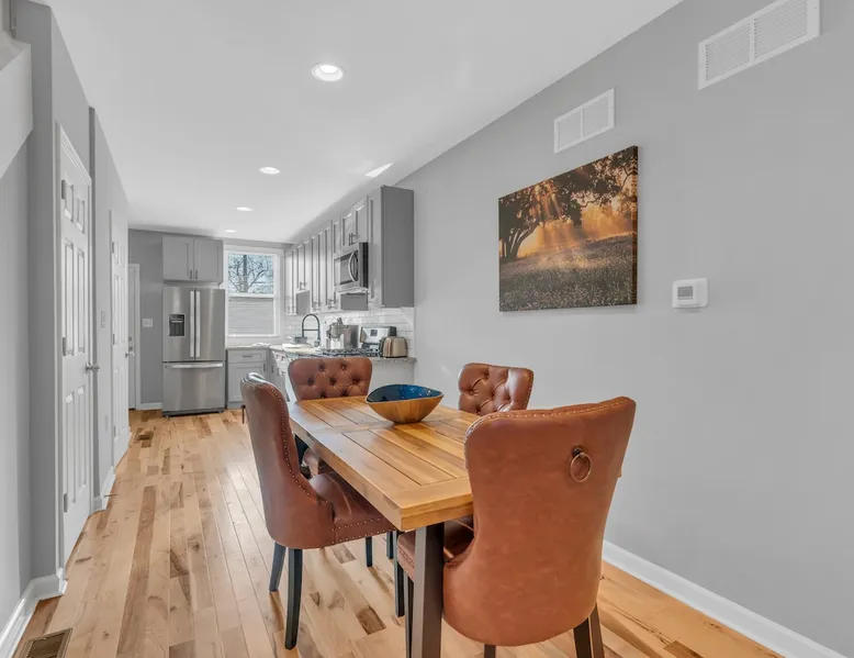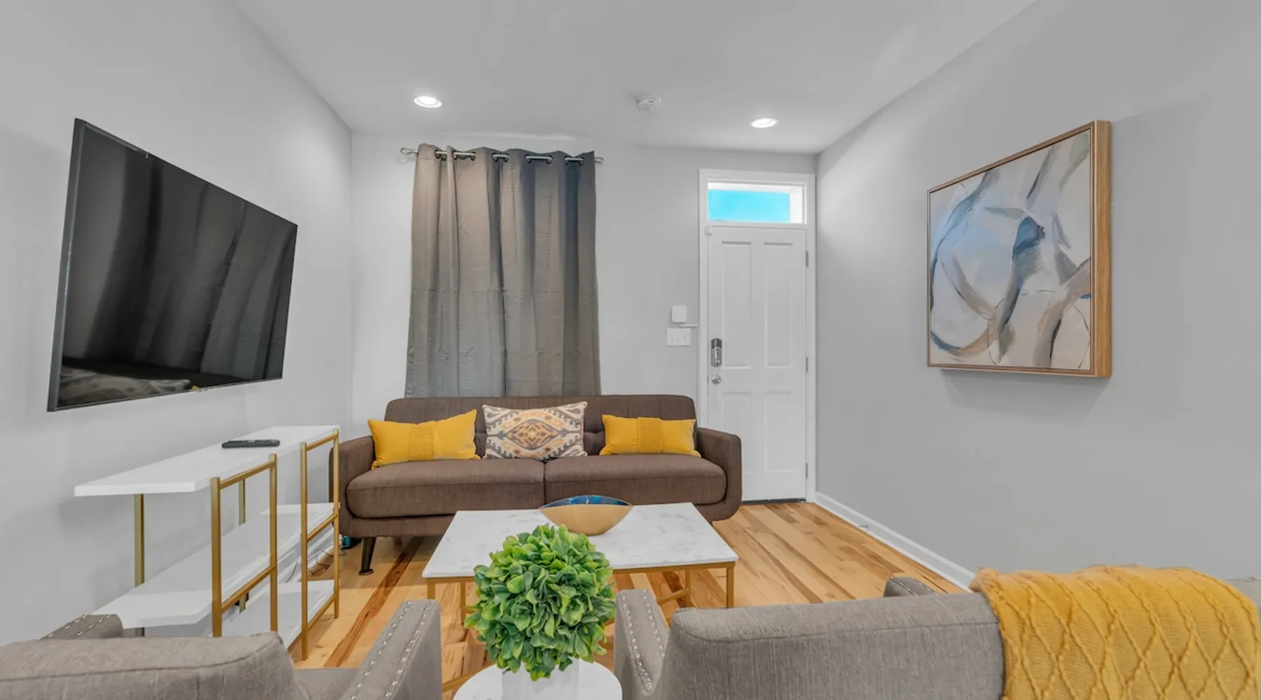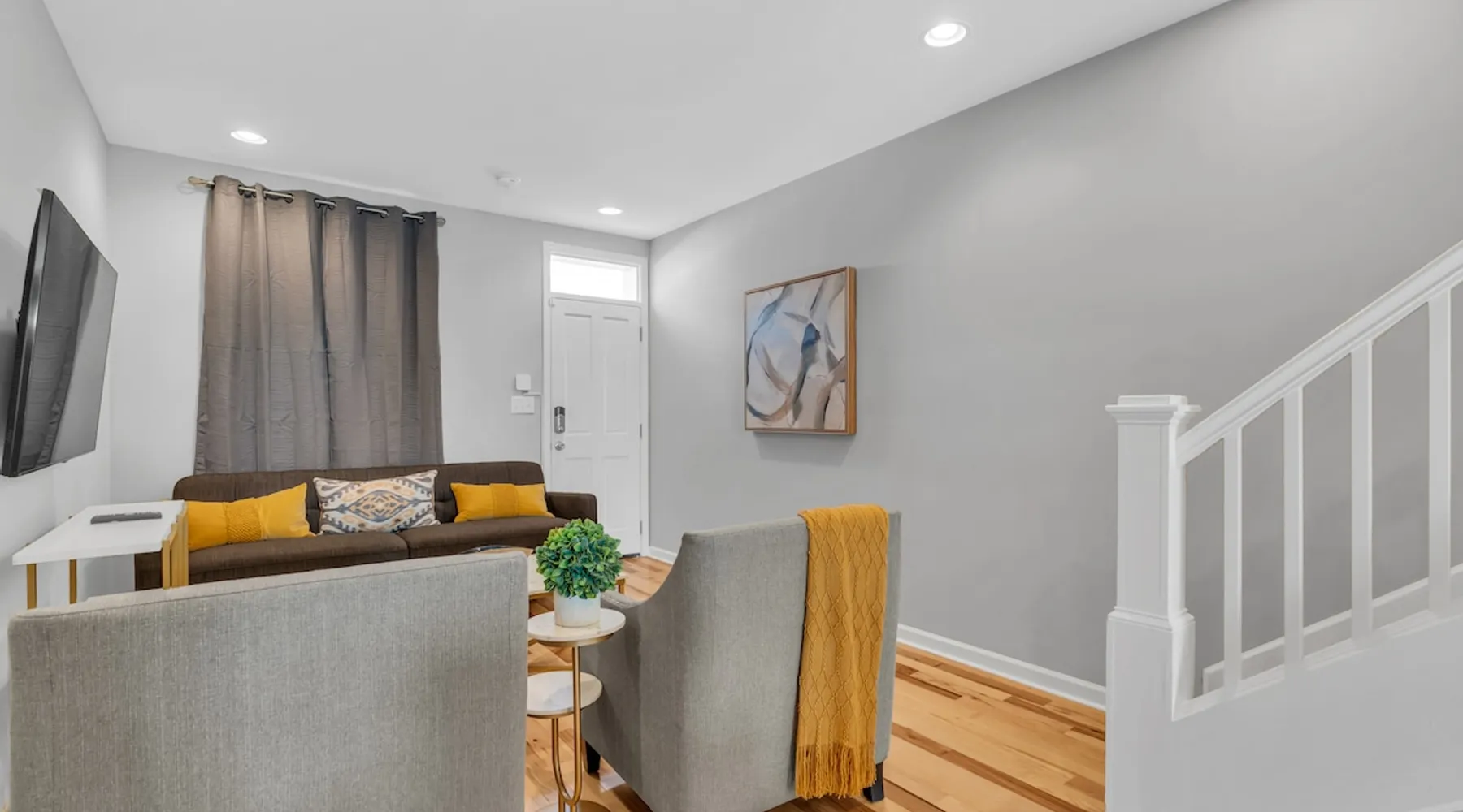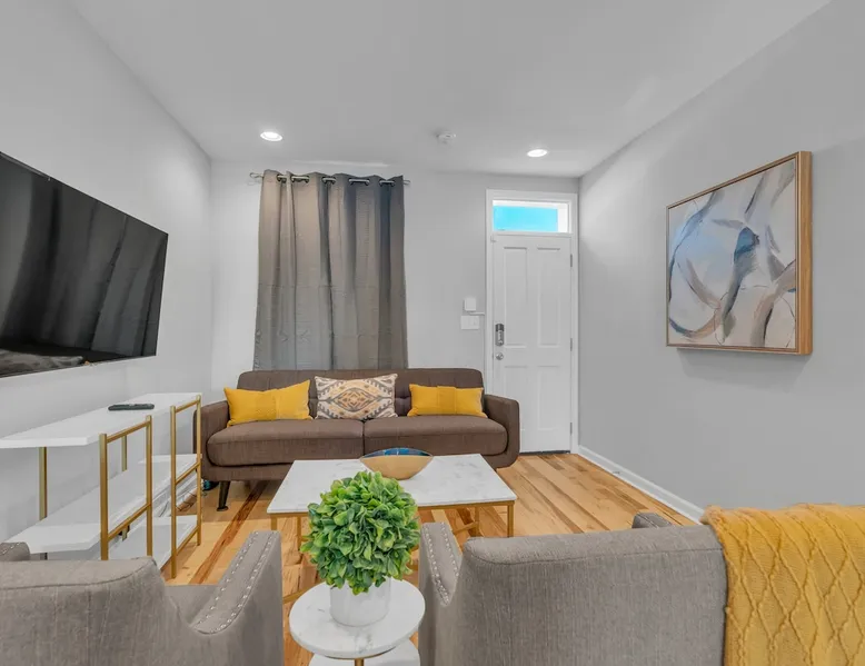 Our fully furnished housing includes all the amenities you need to feel at home! Just a five minute walk to Johns Hopkins Hospital. Enjoy modern amenities in a convenient location and parking. The space Welcome to your new home in the heart of the revitalized Johns Hopkins and Eager Park community. This beautifully renovated and fully furnished two bedroom, two and a half bath townhouse sits on a completely renewed block filled with character, charm, and a sense of community. Inside, you’ll find a bright and welcoming space designed for both comfort and style. The main level has an open layout that connects the living room, dining area, and kitchen, making it easy to relax, work, or entertain. A convenient half bath and access to a spacious patio add to the home’s thoughtful design, offering the perfect spot to enjoy a morning coffee or unwind in the evening. The kitchen features sleek countertops, modern lighting, and quality appliances, along with everything you need to cook and dine comfortably. Every detail has been chosen to create a home that feels fresh, functional, and inviting. Upstairs, each bedroom includes its own private bathroom, giving everyone plenty of space and privacy. The laundry area is located on the same level for convenience, and the lower level provides additional storage for luggage or personal items. Safety and comfort are top priorities here. The home features secure front and rear entry doors, a Ring Alarm system, and a Ring doorbell for peace of mind. The block is beautifully lit with café lights, and both the front and back of the home have dusk-to-dawn lighting, creating a warm and welcoming atmosphere day and night. This home has everything you need to settle in with ease and enjoy a truly comfortable stay. Guest access The entire home is exclusively yours, without interruption for the duration of your stay, so relax, unwind, and make yourself at home! Other things to note Perfect for travel nurses, residents, or medical/nursing students! The monthly rate includes a generous $350 utility allowance, which covers gas/electric, water, and WiFi. In our experience, most guests stay well within this amount. If your usage exceeds the allowance, we’ll provide copies of the bills and submit a payment request through Airbnb for the difference. Guests with pets: there is an additional $150 pet cleaning fee. We’ll send the payment request link on the day of your check-in.