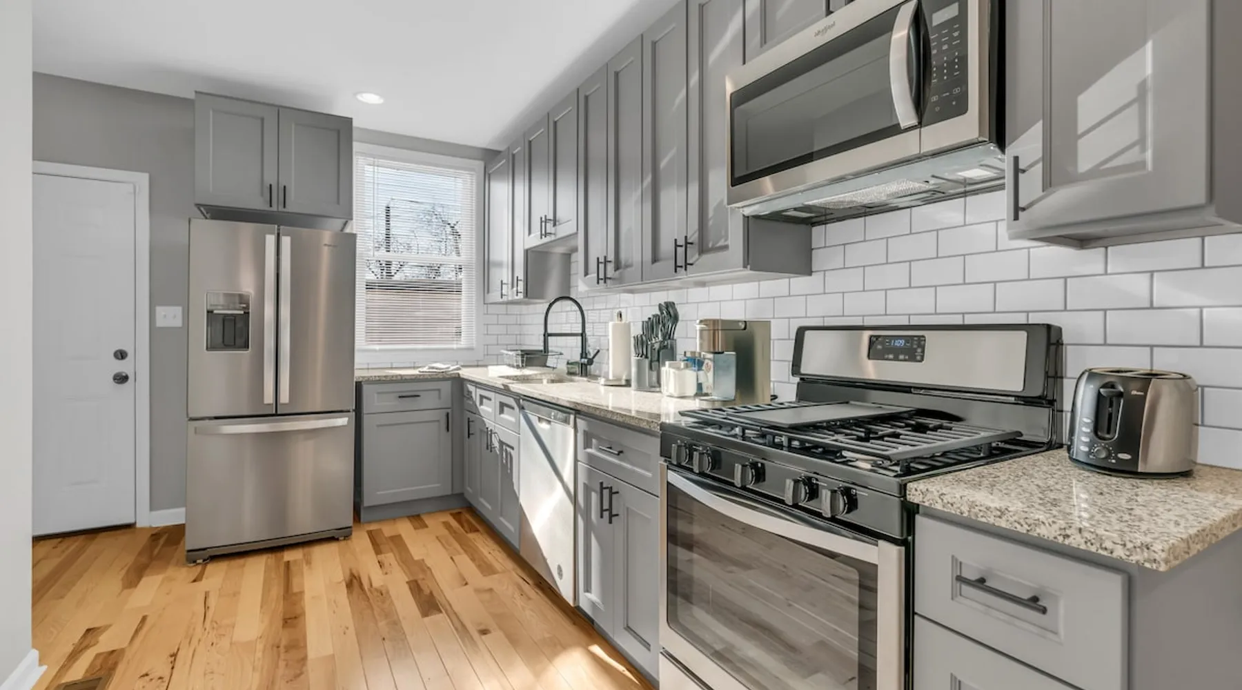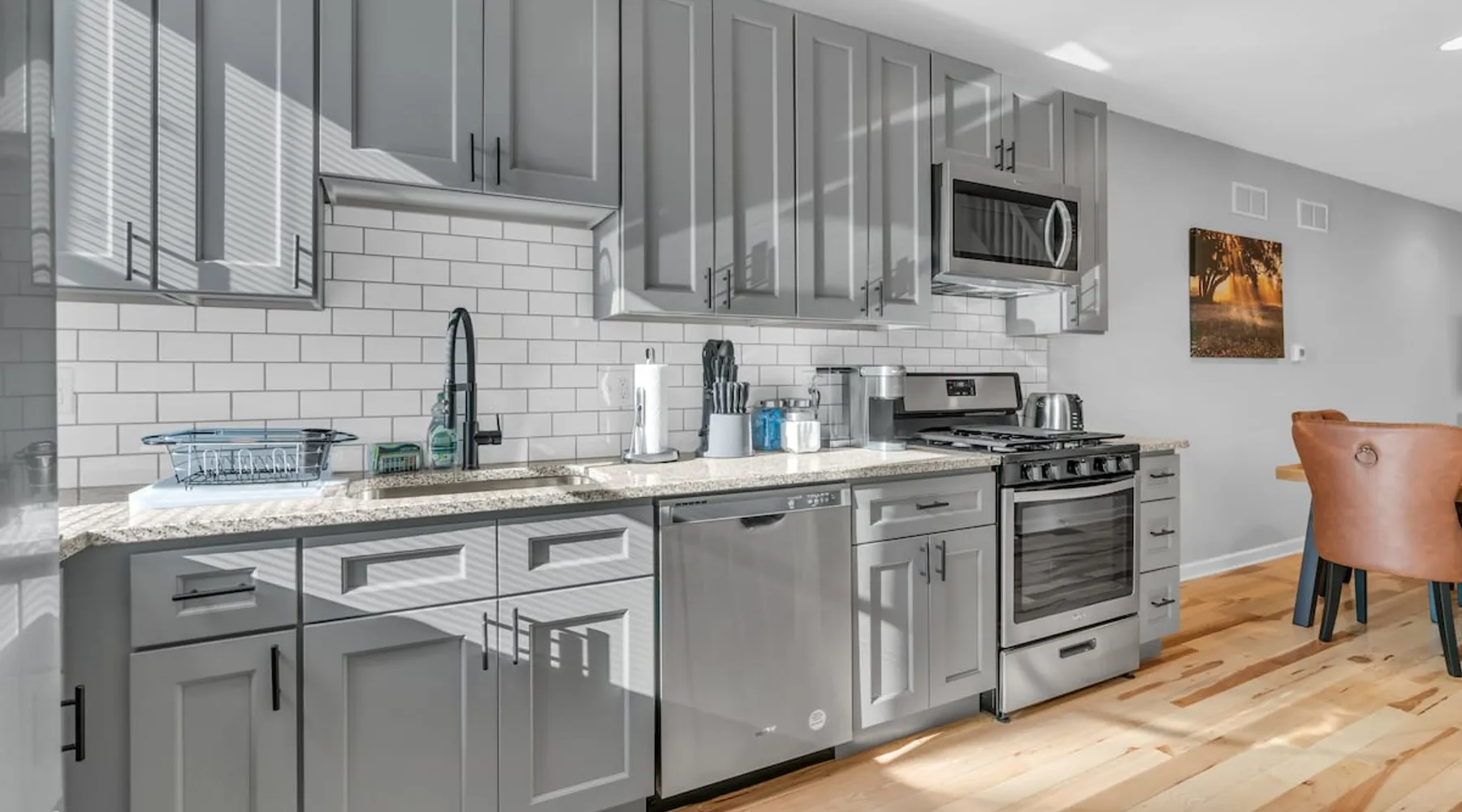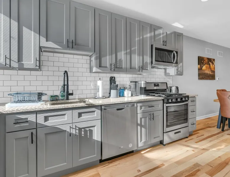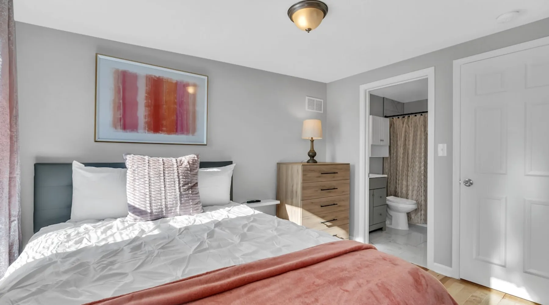 Our fully furnished housing includes all the amenities you need to feel at home! Just a five minute walk to Johns Hopkins Hospital. Enjoy modern amenities in a convenient location and parking. The space Welcome to your new home in the heart of the revitalized Johns Hopkins and Eager Park community. This beautifully renovated and fully furnished two bedroom, two and a half bath townhouse sits on a completely renewed block filled with character, charm, and a sense of community. Inside, you’ll find a bright and welcoming space designed for both comfort and style. The main level has an open layout that connects the living room, dining area, and kitchen, making it easy to relax, work, or entertain. A convenient half bath and access to a spacious patio add to the home’s thoughtful design, offering the perfect spot to enjoy a morning coffee or unwind in the evening. The kitchen features sleek countertops, modern lighting, and quality appliances, along with everything you need to cook and dine comfortably. Every detail has been chosen to create a home that feels fresh, functional, and inviting. Upstairs, each bedroom includes its own private bathroom, giving everyone plenty of space and privacy. The laundry area is located on the same level for convenience, and the lower level provides additional storage for luggage or personal items. Safety and comfort are top priorities here. The home features secure front and rear entry doors, a Ring Alarm system, and a Ring doorbell for peace of mind. The block is beautifully lit with café lights, and both the front and back of the home have dusk-to-dawn lighting, creating a warm and welcoming atmosphere day and night. This home has everything you need to settle in with ease and enjoy a truly comfortable stay. Guest access The entire home is exclusively yours, without interruption for the duration of your stay, so relax, unwind, and make yourself at home! Other things to note Perfect for travel nurses, residents, or medical/nursing students! The monthly rate includes a generous $350 utility allowance, which covers gas/electric, water, and WiFi. In our experience, most guests stay well within this amount. If your usage exceeds the allowance, we’ll provide copies of the bills and submit a payment request through Airbnb for the difference. Guests with pets: there is an additional $150 pet cleaning fee. We’ll send the payment request link on the day of your check-in.