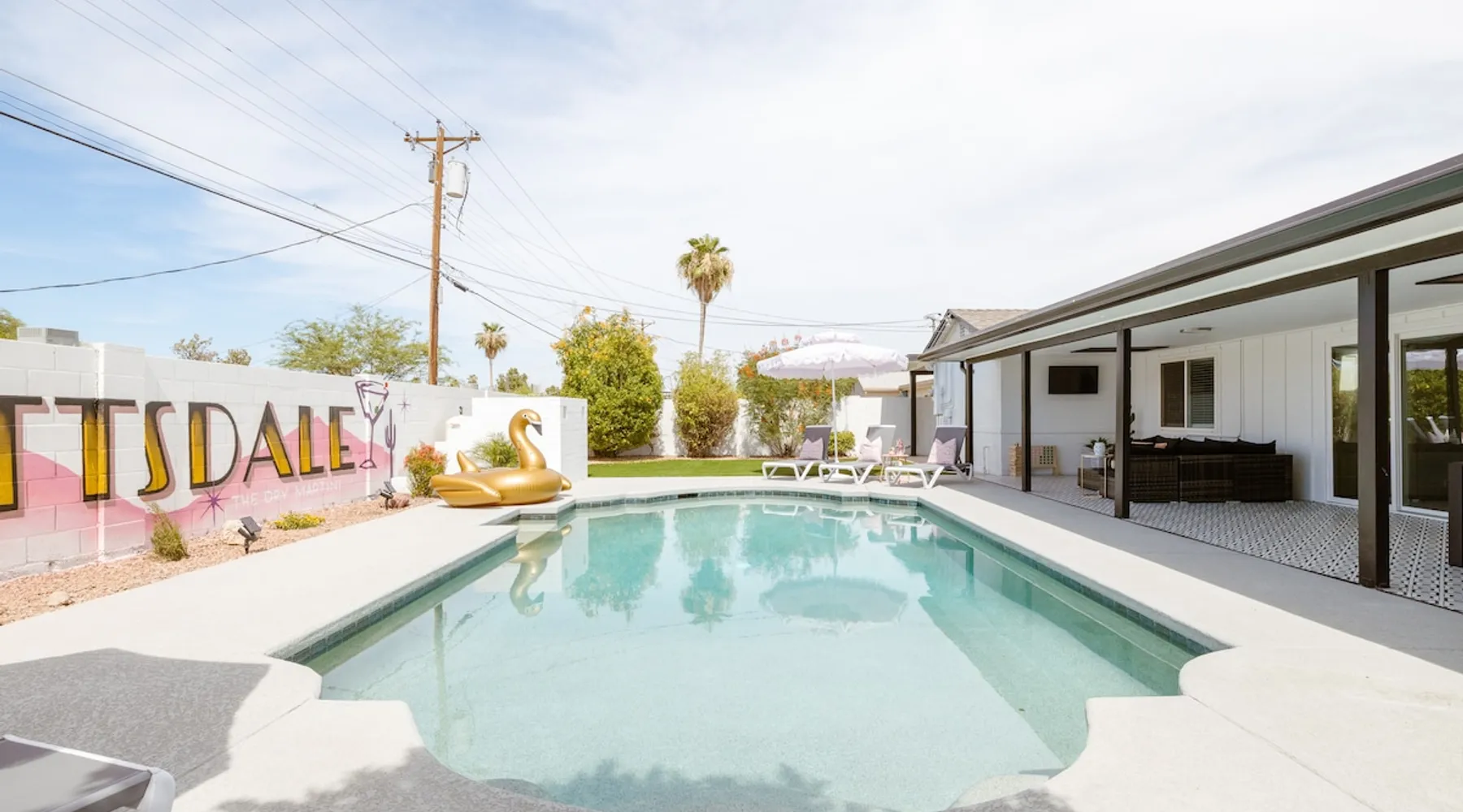 Welcome to your relaxing Scottsdale retreat - a calm, family-ready space near local highlights and desert quiet. - Sleeps 9 | 4 bedrooms | 6 beds | 2 baths - Private outdoor pool - heated & available all year - Fully fenced backyard w/ patio, BBQ & outdoor seating - Kitchen, dining table & dedicated workspace - Wifi, TV w/ YouTube TV & board games - Pet-friendly The space Soft desert light moves gently through the windows as each winter morning begins, giving you a quiet place to settle in before stepping out into the cool, still air of Scottsdale. Evenings feel calm and unhurried, with the fenced backyard offering a peaceful spot to unwind beside the private outdoor pool that remains available all year. Whether you're relaxing inside or taking in the quiet rhythm of the neighborhood, the home provides an easy, welcoming setting for a seasonal retreat. Sleeping arrangements Up to 9 guests can rest comfortably across four bedrooms, each created with ease and relaxation in mind. The primary suite offers a king bed, an en-suite bathroom with a walk-in shower and freestanding tub, and direct access to the backyard. A second bedroom also features a king bed, while the remaining two bedrooms each include a full bed paired with a twin bed, giving families and groups flexible options. Two full bathrooms support your stay with convenience and privacy. Outdoor living The fully fenced backyard invites you to enjoy winter moments outside, whether you're taking a refreshing swim in the private outdoor pool or settling into the outdoor furniture with the cool seasonal air around you. The BBQ grill adds a simple way to prepare meals outdoors, and the private patio offers an open, relaxed space to spend time together. Kitchen & dining A spacious kitchen equipped with stainless steel appliances and two large islands creates a practical setting for cooking and gathering. The indoor dining table provides a comfortable place to share meals, while the outdoor seating area gives you a quiet view of the backyard. With everything you need for everyday cooking, meal preparation feels natural and unhurried. Entertainment & work You can stay connected with Wifi, an Ethernet connection, and a TV with YouTube TV for streaming. A dedicated workspace located in a room with a door allows you to focus as needed, and board games offer a simple way to enjoy time together. Family-friendly amenities Families will find thoughtful touches throughout the home, including a crib, Pack ’n Play, folding or convertible high chair, children’s dinnerware, and room-darkening shades. Extra linens and essentials help support longer stays with ease. Comfort & convenience Central air conditioning, central heating, ceiling fans, and portable fans help maintain a comfortable environment throughout the home. An in-unit washer and dryer, along with an iron and drying rack, make day-to-day routines simple. The home is equipped with smoke and carbon monoxide alarms, a fire extinguisher, and a first aid kit, and an exterior security camera by the front entrance along with indoor and outdoor noise sensors help support safety while respecting privacy. Neighborhood Located in a quiet Scottsdale neighborhood, the home places you within easy reach of Old Town Scottsdale, the Desert Botanical Garden, restaurants, golf courses, and other local attractions. It serves as a calm base to explore the area before returning to a peaceful space at the end of the day. Perfect for Families, groups, and travelers seeking a pet-friendly stay with a private outdoor pool and a quiet desert setting will find this home well suited for rest, connection, and comfort during the winter season. 🛎️ We are happy to offer a few optional upgrades to make your stay even more enjoyable! • Pool Heating: Available from October 15th to May 15th for an additional $75 per day. Please let us know at least 48 hours before check-in if you’d like the pool heated and ready for your arrival. • Early Check-In: Want to start your vacation early? We offer early check-in for a flat fee of $145, based on availability. Please reach out if you’re interested and we’ll confirm if early access is possible for your stay. If you choose to add one of these options, we’ll send a secure payment request through Airbnb. You’ll receive an email directly from Airbnb with a link to complete the payment safely and easily. If you experience any issues with the Airbnb payment system, please let us know right away — we’re happy to help! SISTER PROPERTIES: Please check out our other 30+sister properties if you are looking for something different. We will gladly accommodate you and your group. Other things to note: Toaster, Dishwasher, Dishwasher detergent, Coffee Maker, Microwave, Blender, cooking essentials, Silverware, Plates, Bowls, Glassware - Outdoor dinnerware - Condiments, Coffee, Tea, Oils, Spices, Filtered Water - Washer, Dryer, Clothing Detergent, Iron, Ironing Board - Soap, Shampoo, Conditioner, Body Wash, Hair Dryer in each Bathroom - Extra Bed Linens, Pillows, Blankets, Bath & Pool Towels - Outside BBQ Grill - Private Pool with floaters- Pack N Play- Games. Literally everything you'd expect to have at home! **Additional Services that we offer when staying at this property: Ask us about the link to be able to view and book our Concierge Services to include the following: -Fridge Stocking: Don’t waste your precious vacation time at the grocery store! Walk into your home with a fridge/pantry stocked with all your favorite drinks and food. Inquire for more details. -Decoration Packages: we offer a decoration package for bachelorette and birthday celebrations! To make sure to WOW the bride, we guarantee that the set up will be completed before check-in time. Looking for something even more extravagant? We've partnered with a local decoration company to make your dreams come true. Let us help you create a magical experience! - Private Yoga: We have a partnership with an amazing 