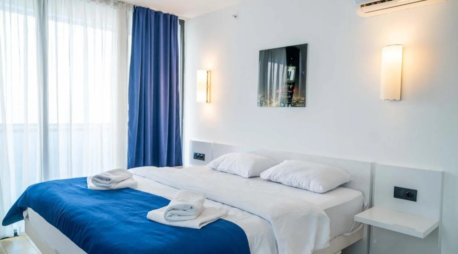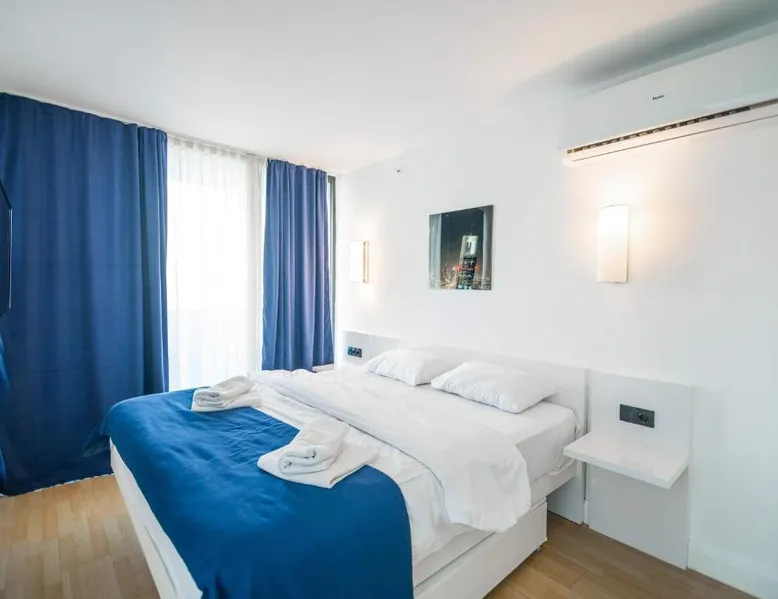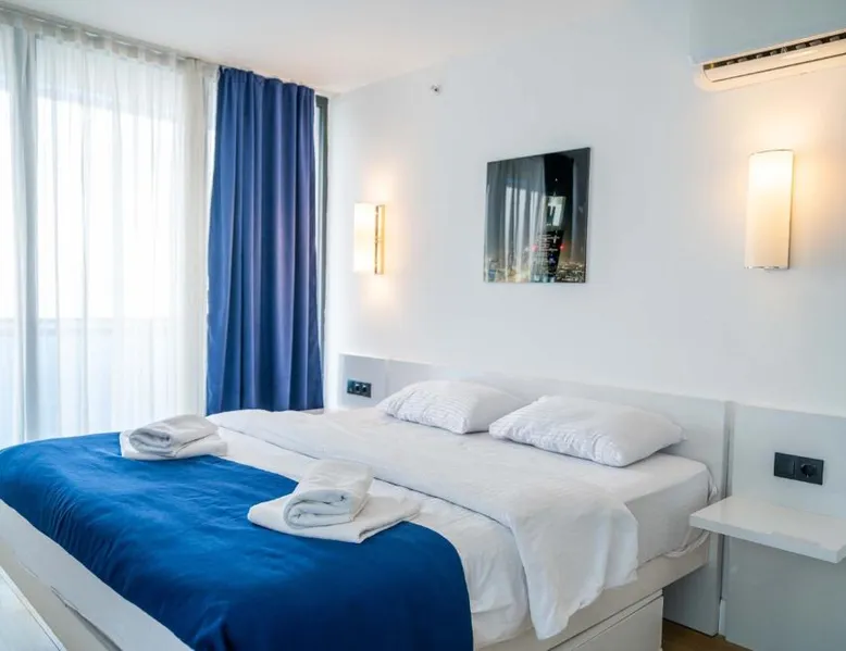 Comfortable Living: Lovely 2BR Apartment near by Sea in Batumi offers a two-bedroom, one-bathroom layout with a spacious living room. Guests enjoy sea and mountain views, air-conditioning, and a fully equipped kitchen. Modern Amenities: The apartment provides free WiFi, a washing machine, and a elevator. Additional amenities include a hairdryer, electric kettle, and TV, ensuring a comfortable and convenient stay. Prime Location: Located 3.1 mi from Batumi International Airport, the property is a short walk from Batumi Beach and 2625 feet from Aquapark Batumi. Nearby attractions include the Batumi Archaeological Museum and Europe Square. Guest Satisfaction: Highly rated by guests, the apartment is praised for its excellent facilities and excellent service. Featuring a private entrance, this air-conditioned apartment is consisted of of 1 living room, 2 separate bedrooms and 1 bathroom with a hairdryer. The apartment's kitchen is available for cooking and storing food. This apartment features a washing machine, an electric kettle, a TV and sea views. The unit offers 4 beds.