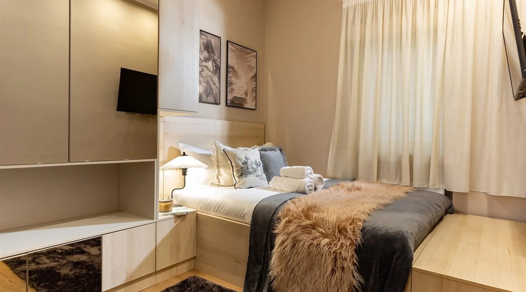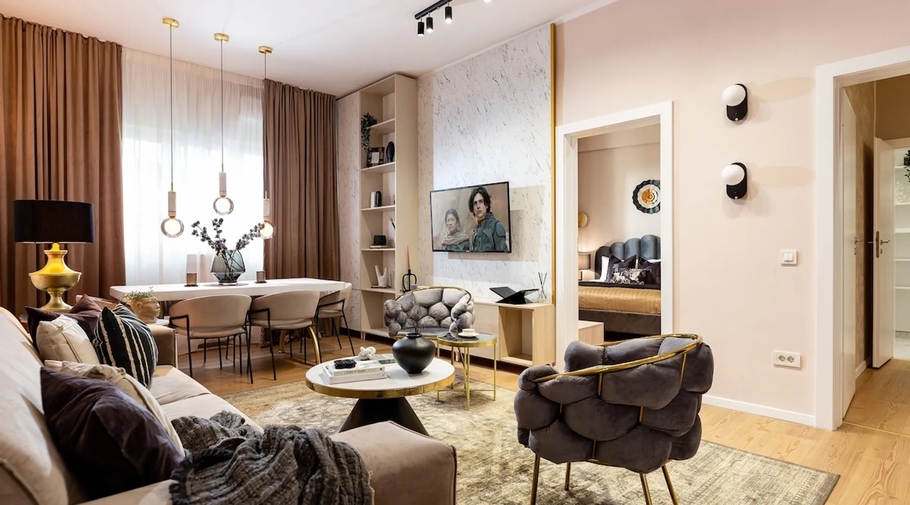 Experience Bucharest right from the heart of it! Located at km 0, our home is just a couple of minutes walking distance to the Old Town and across the street from all the main restaurants and attractions that Bucharest has to offer. The space IMPORTANT: Please note that our home is in fact compiled out of 2 apartments, located in the same building, one above the other. Going between apt. requires accessing the shared building staircase. Each apartment is equipped precisely the same and includes: • Living room featuring a large dining area and a 50 inch TV • 2 Bedrooms with a comfortable Queen Size bed + Double bed and TVs • Fully equipped kitchen • Fully equipped bathroom • Balcony overlooking the city center Guest access Guests have full access of the space during their stay. Depending on the circumstances (e.g. emergencies, parties or complaints from neighbours), there may be times where our team requires entry into the homes, especially in cases where the guest is unreachable. Our team will do our best to communicate any such events in advance. Other things to note • Please note that for safety & security reasons, our home features both a video doorbell outside of the apartment as well as a noise monitoring system inside helping us prevent any potential disturbances to our neighbours. • We require that each reservation contains the correct number of guests, either staying for the entire length of the stay or part of it. Penalties may apply otherwise. • We reserve the right to carry out unannounced inspections of our home, if there is suspicion of inappropriate behaviour, illegal activities or possible damage to the space. • If you are booking for commercial purposes (e.g. photoshoots), kindly notify us in advance with the details of your use of the property, as terms and pricing may vary. • Guests are required to complete a Check In Form prior to their arrival which includes standard information (e.g. emergency contact number, etc.) as well as submitting a photo ID. Thank you!