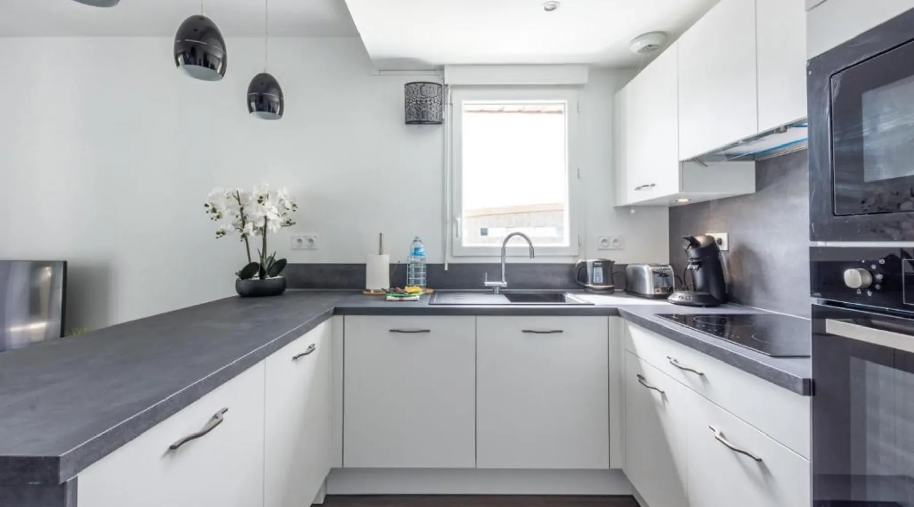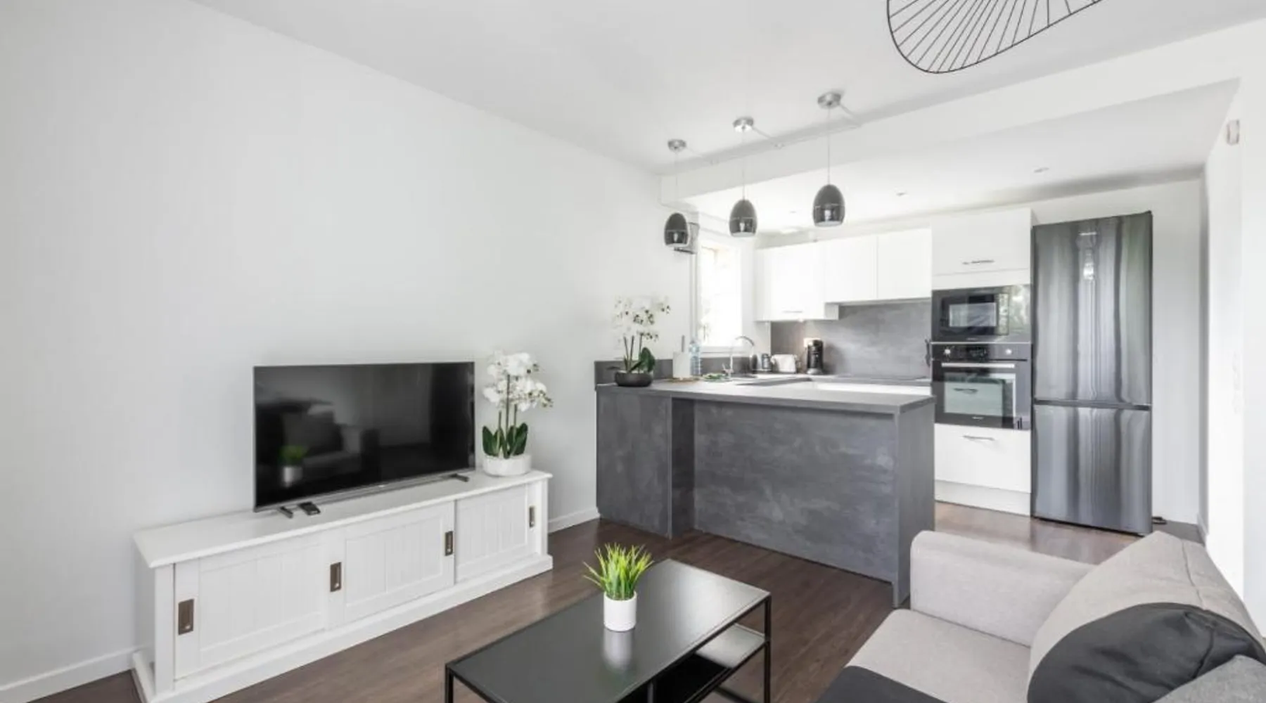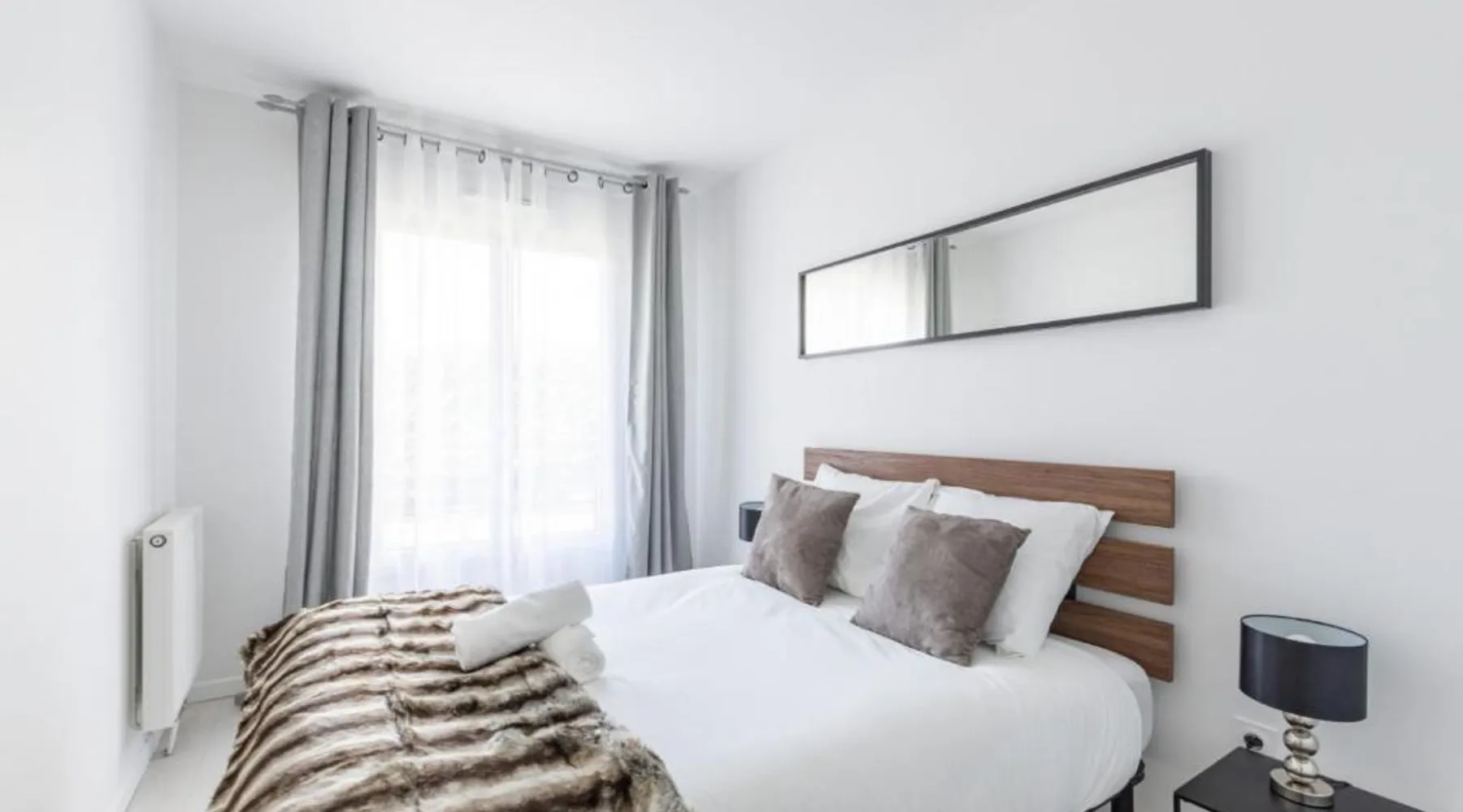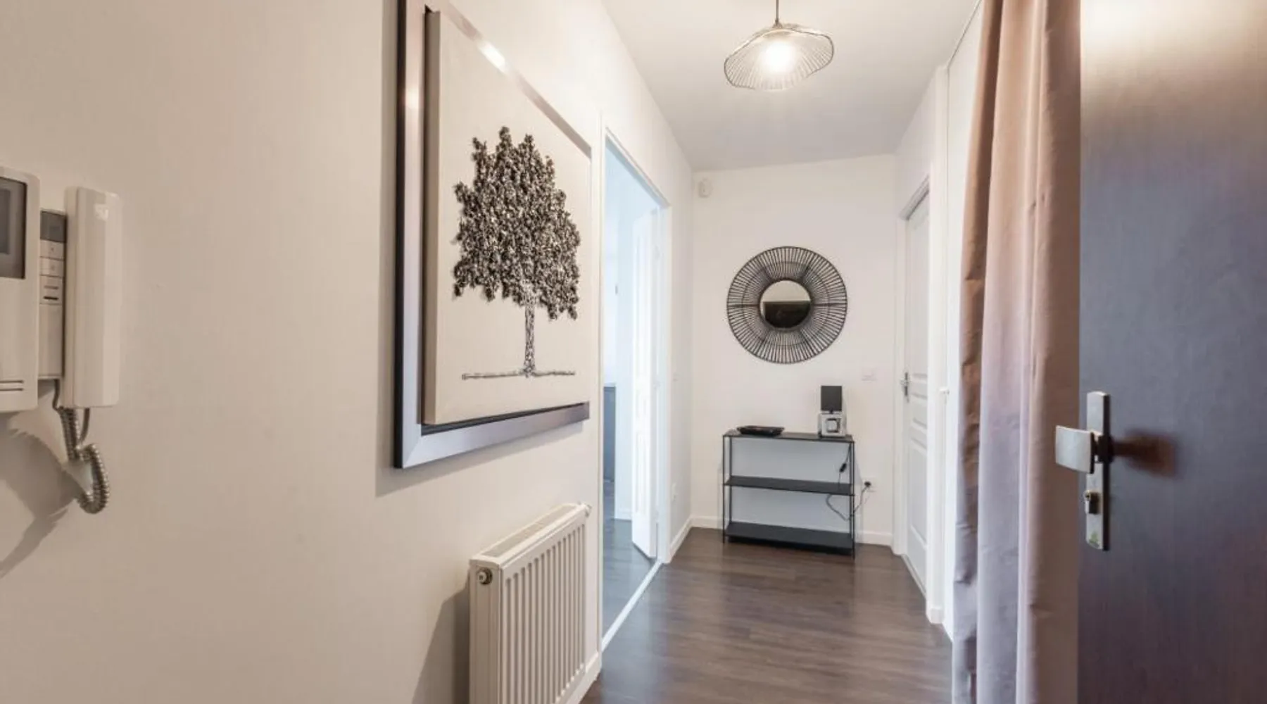 Spacious Accommodations: La Canopée By Plaza in Serris offers a spacious apartment with two bedrooms and a living room. The property features a terrace and free WiFi, ensuring a comfortable stay. Modern Amenities: The apartment includes a fully equipped kitchen with a refrigerator, microwave, dishwasher, and oven. Additional amenities include a washing machine, dining area, sofa bed, and parquet floors. Convenient Location: Located 21 mi from Paris Charles de Gaulle Airport, the apartment is 1.5 mi from Val d'Europe RER Station and 3 mi from Disneyland Paris. Nearby attractions include Noter Dame Cathedral and Pompidou Center. Boasting a private entrance, this spacious apartment also includes 1 living room, 2 separate bedrooms and 1 bathroom with a bath. In the kitchen, guests will find a refrigerator, a dishwasher, kitchenware and an oven. The apartment offers a washing machine, a tea and coffee maker, a seating area, a flat-screen TV with cable channels, as well as lake views. The unit has 3 beds.