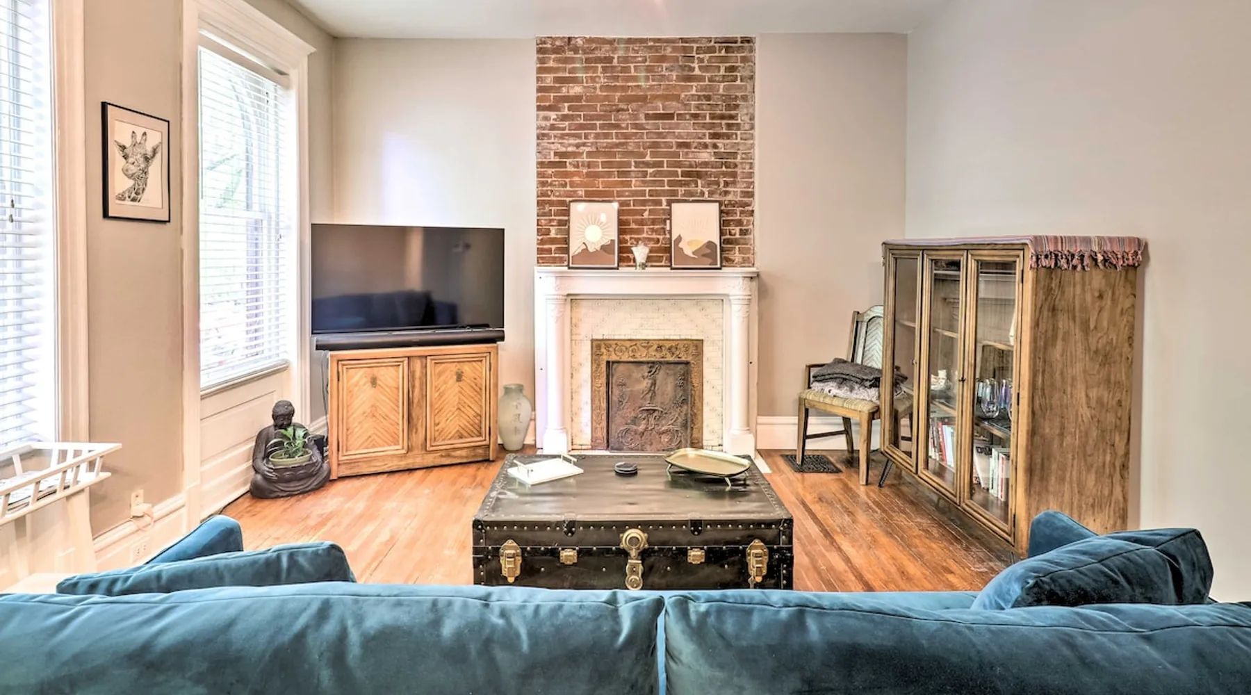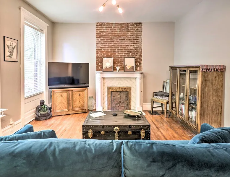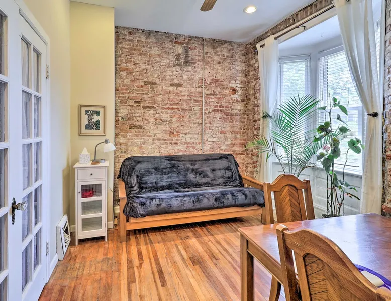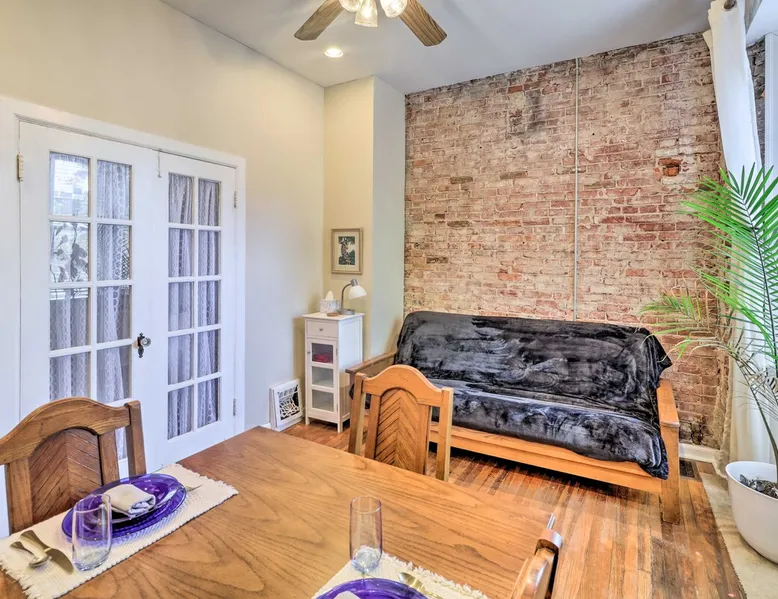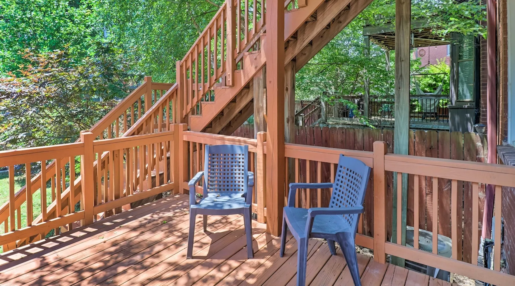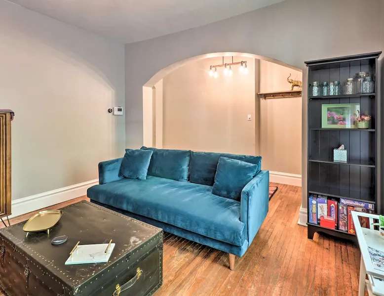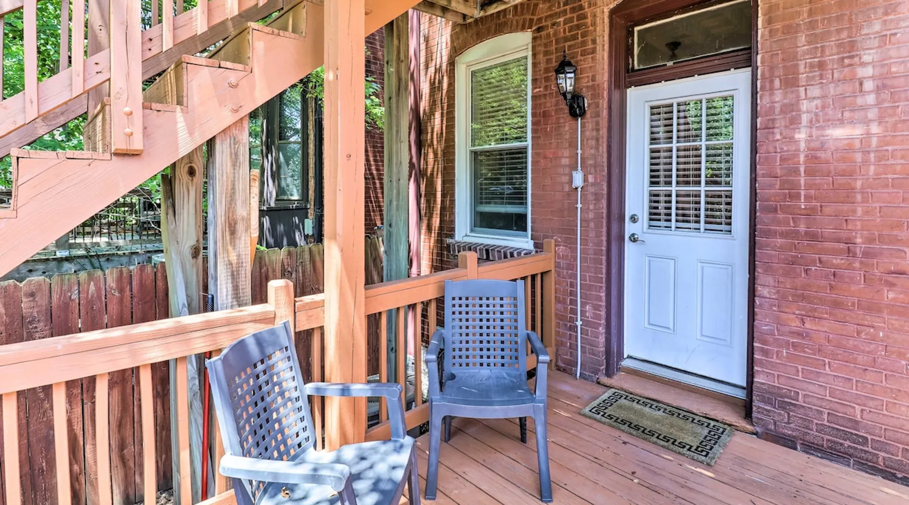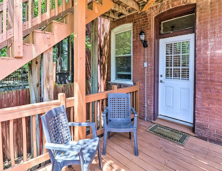 Experience all that St. Louis has to offer at this 1-bedroom, 1-bath vacation rental. With a prime location and all the comforts of home, this charming retreat is perfect for couples or small groups looking to be in the heart of it all. Spend your days exploring the Tower Grove Farmers’ Market, strolling through the Missouri Botanical Garden, or savoring up some brews at a nearby brewery. Afterward, prepare a home-cooked meal in the full kitchen and relax in the backyard with your crew. The space Free WiFi | Keyless Entry | Walk to Tower Grove Park Bedroom: Full Bed | Dining Room: Sleeper Sofa SHARED AMENITIES: Garage, patio MAIN FEATURES: Smart TV w/ Apple TV, Hulu & Netflix, fireplace (decorative only), private backyard, outdoor dining area, board games, books, ceiling fans KITCHEN: Cooking basics, refrigerator, microwave, stove/oven, dishwasher, dishware & flatware, coffee maker, blender, Crockpot, ice maker, toaster, toaster oven, spices, water filter GENERAL: Central A/C & heating, towels/linens, in-unit washer/dryer, iron/board, hair dryers, hangers, trash bags/paper towels FAQ: 8 stairs required to enter, single-story unit PARKING: Garage (1 vehicle), free street parking (first-come, first-serve) Guest access Guests will have access to the entire property via keyless entry Other things to note - No smoking or vaping of any kind - No pets allowed - No events, parties, or large gatherings - Additional fees and taxes may apply - Photo ID may be required upon check-in - NOTE: While the unit is located on the 1st floor, it requires 8 stairs to enter - NOTE: The homeowner has a long-term tenant that lives in the upper unit on-site and may be present during your stay