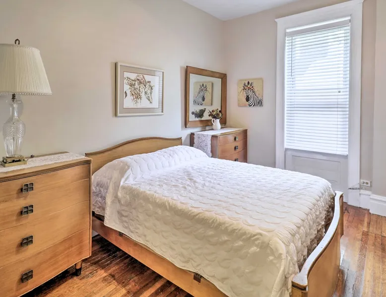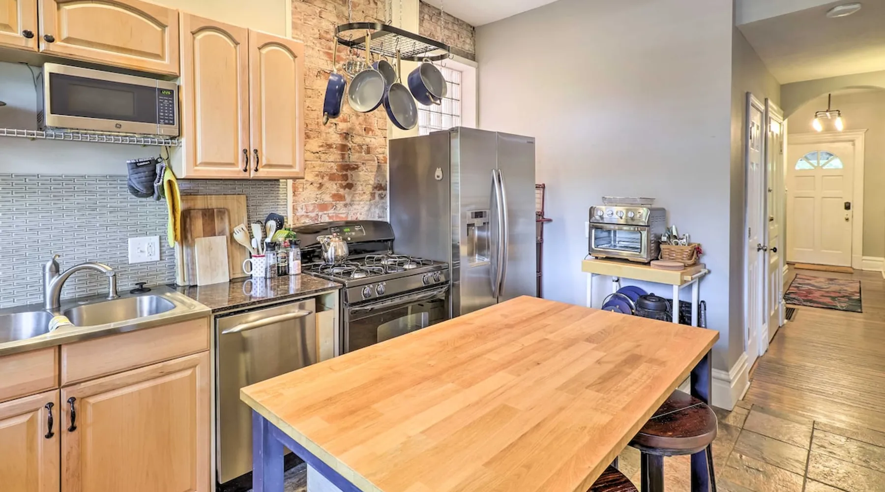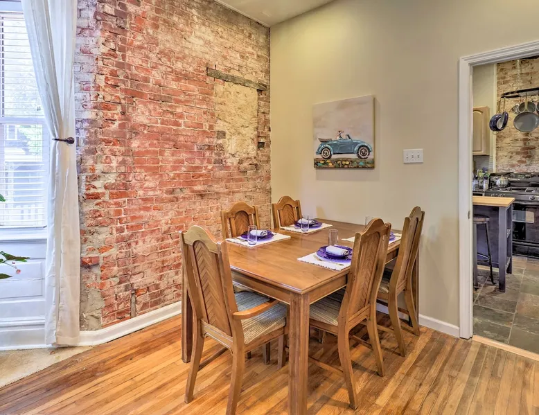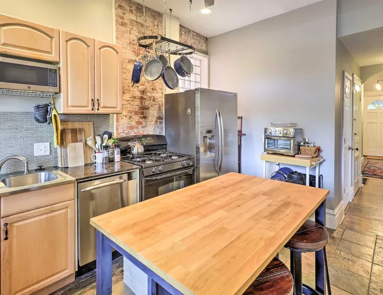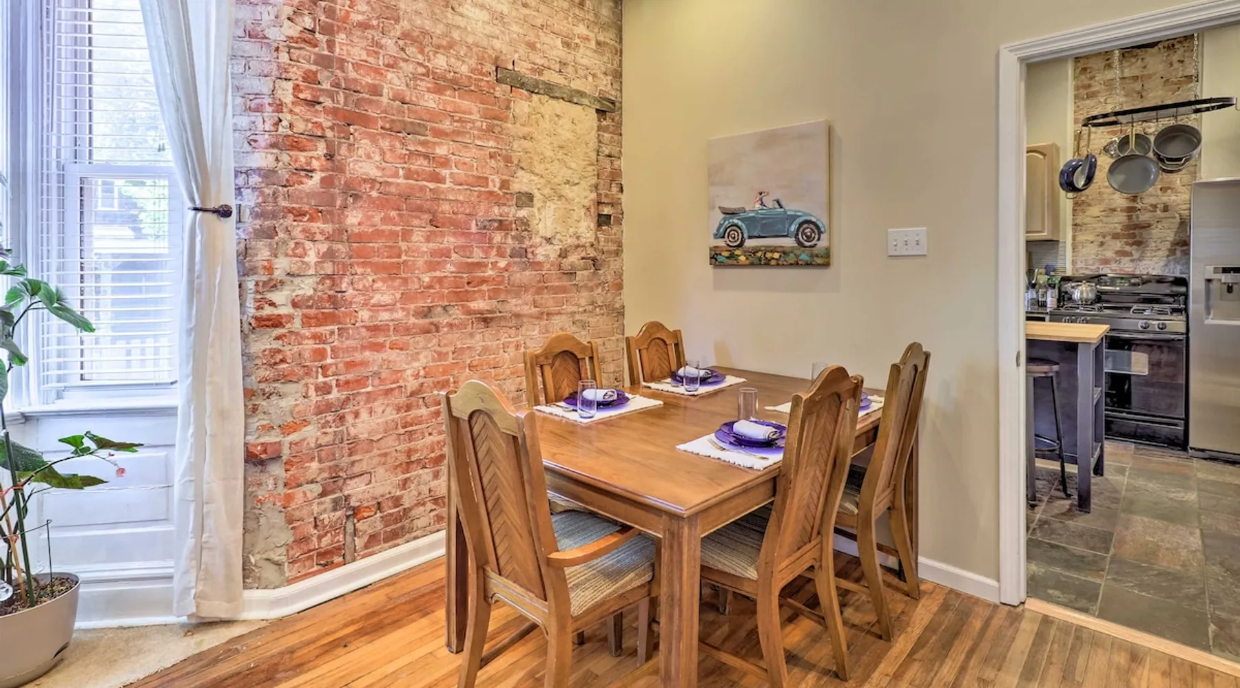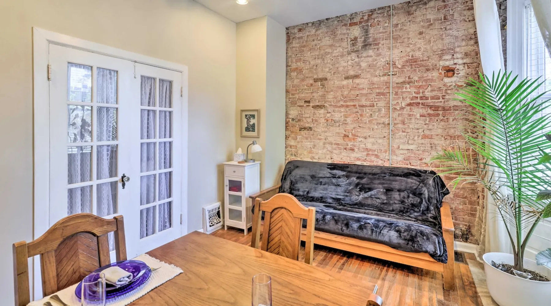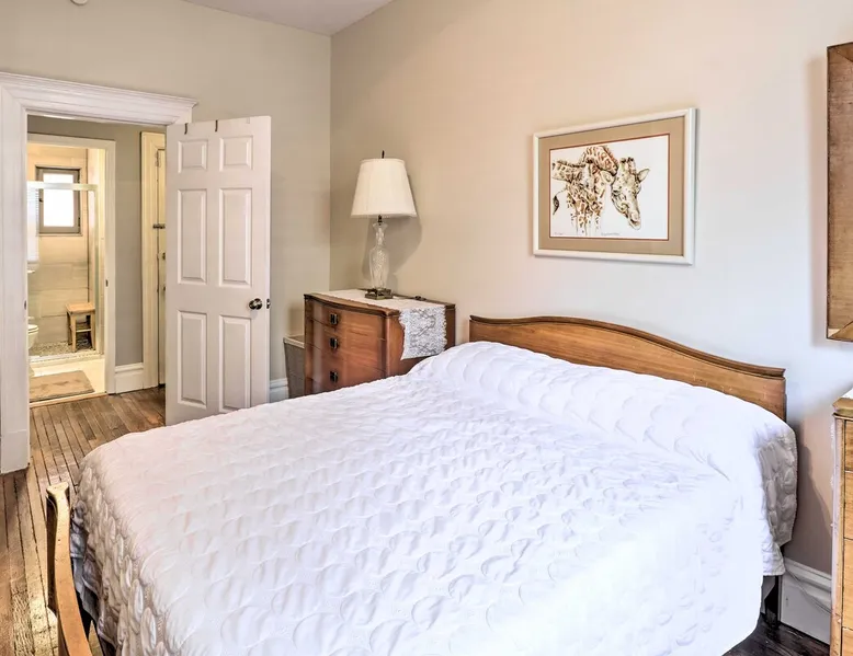 Experience all that St. Louis has to offer at this 1-bedroom, 1-bath vacation rental. With a prime location and all the comforts of home, this charming retreat is perfect for couples or small groups looking to be in the heart of it all. Spend your days exploring the Tower Grove Farmers’ Market, strolling through the Missouri Botanical Garden, or savoring up some brews at a nearby brewery. Afterward, prepare a home-cooked meal in the full kitchen and relax in the backyard with your crew. The space Free WiFi | Keyless Entry | Walk to Tower Grove Park Bedroom: Full Bed | Dining Room: Sleeper Sofa SHARED AMENITIES: Garage, patio MAIN FEATURES: Smart TV w/ Apple TV, Hulu & Netflix, fireplace (decorative only), private backyard, outdoor dining area, board games, books, ceiling fans KITCHEN: Cooking basics, refrigerator, microwave, stove/oven, dishwasher, dishware & flatware, coffee maker, blender, Crockpot, ice maker, toaster, toaster oven, spices, water filter GENERAL: Central A/C & heating, towels/linens, in-unit washer/dryer, iron/board, hair dryers, hangers, trash bags/paper towels FAQ: 8 stairs required to enter, single-story unit PARKING: Garage (1 vehicle), free street parking (first-come, first-serve) Guest access Guests will have access to the entire property via keyless entry Other things to note - No smoking or vaping of any kind - No pets allowed - No events, parties, or large gatherings - Additional fees and taxes may apply - Photo ID may be required upon check-in - NOTE: While the unit is located on the 1st floor, it requires 8 stairs to enter - NOTE: The homeowner has a long-term tenant that lives in the upper unit on-site and may be present during your stay